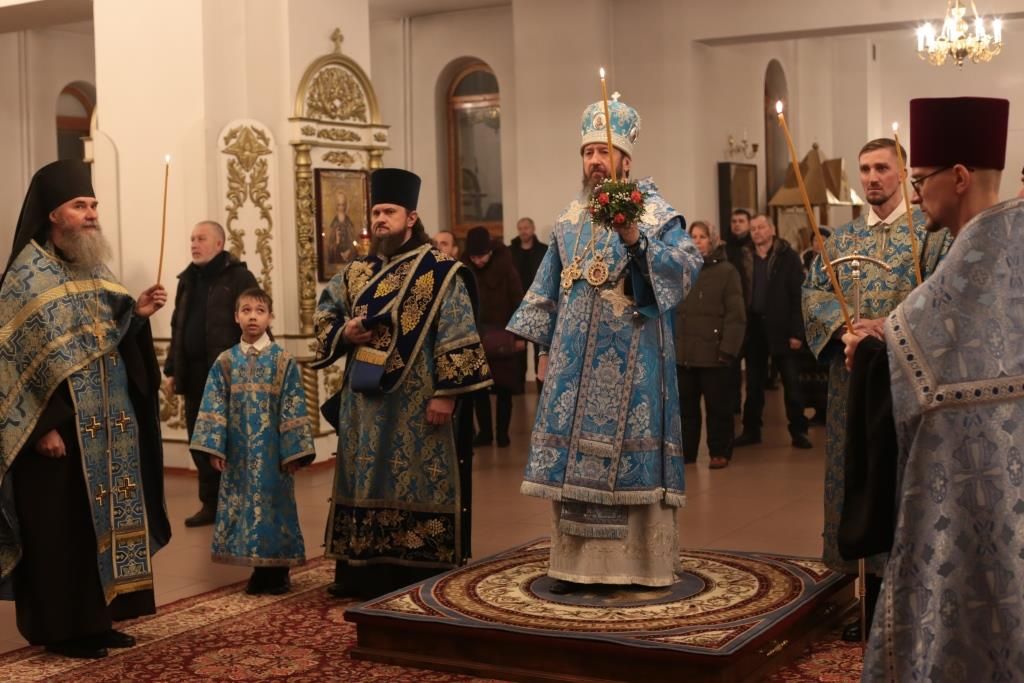Субботним вечером, накануне двунадесятого праздника Введения во храм Пресвятой Богородицы, Высокопреосвященнейший архиепископ Усть-Каменогорский и Семипалатинский Амфилохий возглавил служение всенощного бдения в кафедральном соборе во имя святого апостола Андрея Первозванного города Усть-Каменогорска. Владыке архиепископу сослужили: ключарь кафедрального собора иеромонах Никодим (Авдеев), клирики собора иерей Алексий Клепиков, иерей Роман Подрезов, иерей Константин Дьяков, иеромонах Мефодий (Шевчук), секретарь епархии диакон Илия Кван, протодиакон Андрей Дудник.