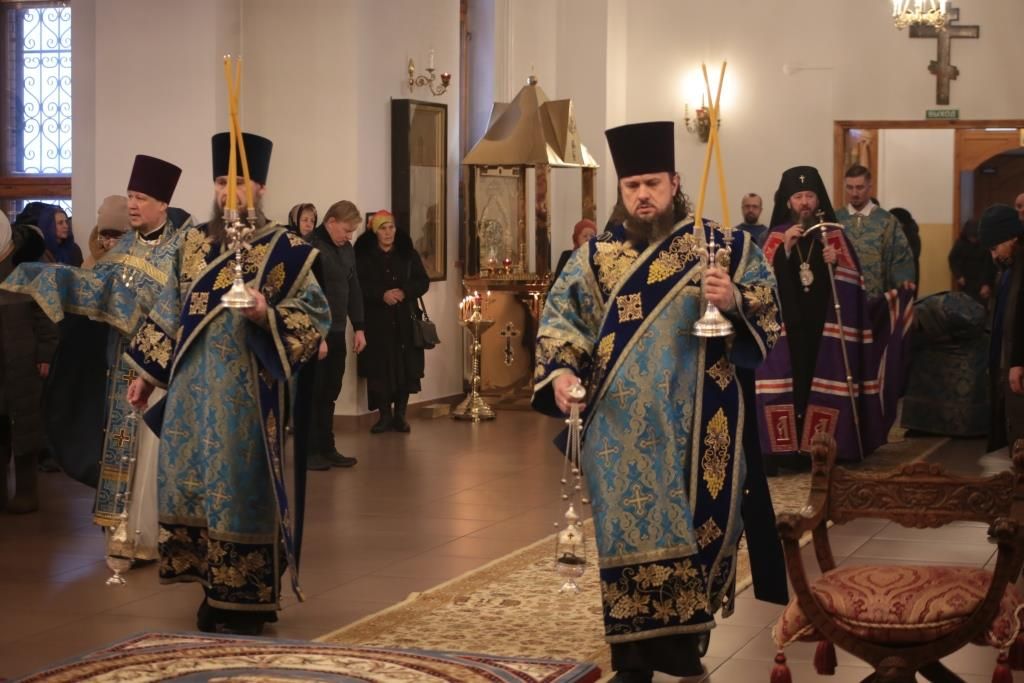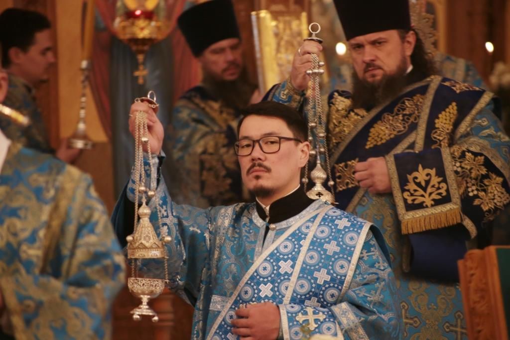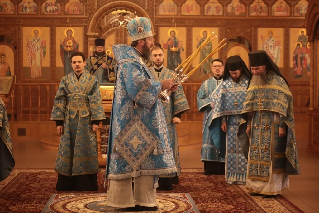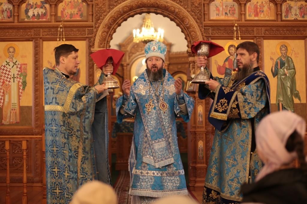 В праздничное воскресное утро архиепископ Усть-Каменогорский и Семипалатинский Амфилохий возглавил служение Божественной Литургии святителя Иоанна Златоуста в Андреевском кафедральном соборе столицы Рудного Алтая. Высокопреосвященнейшему Архипастырю сослужили: ключарь кафедрального собора иеромонах Никодим (Авдеев), клирики собора иерей Роман Подрезов и иеромонах Мефодий (Шевчук), секретарь епархии диакон Илия Кван, протодиаконы Георгий Засыпкин и Андрей Дудник.