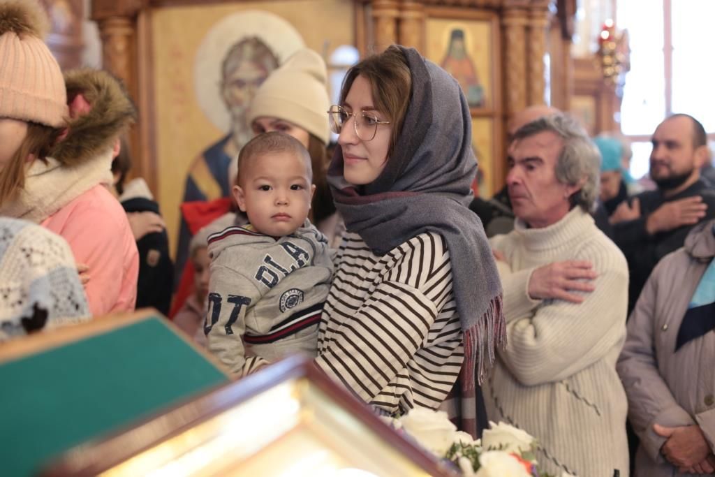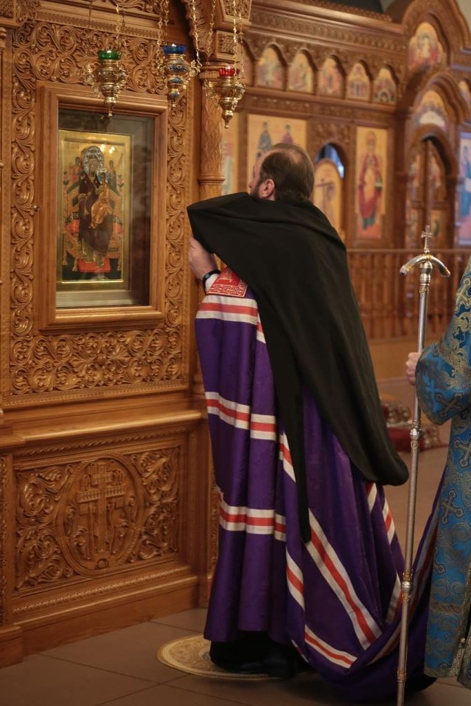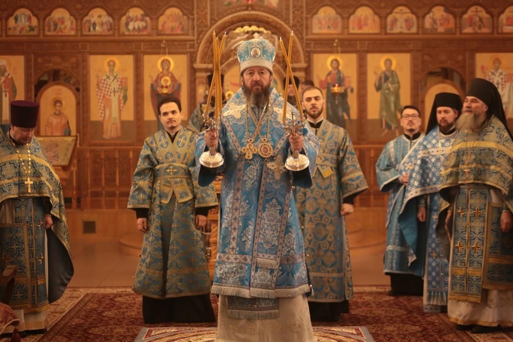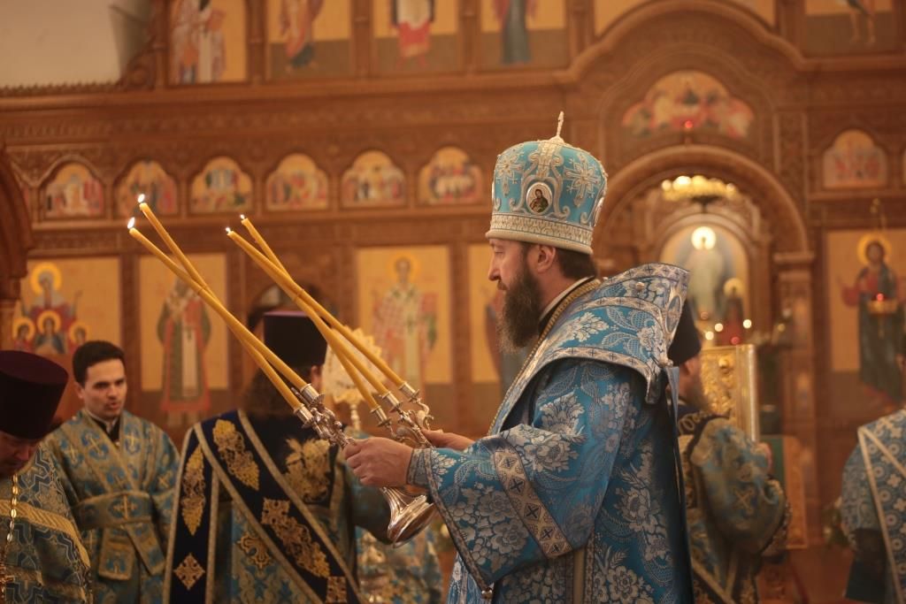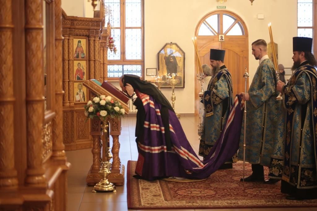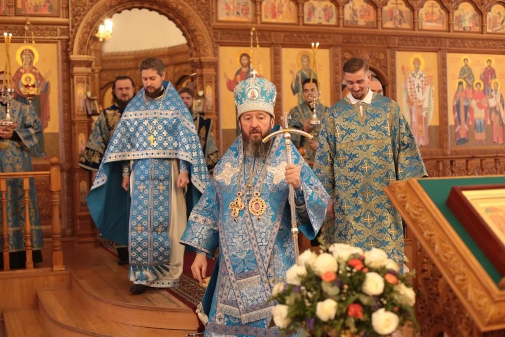 Перед причастием мирян проповедовал иерей Роман Подрезов. После заамвонной молитвы Архипастырь с клириками и молящимися совершил славление Пресвятой Богородице перед праздничной иконой. В завершение воскресного богослужения архиепископ Амфилохий поздравил всех богомольцев с великим праздником и обратился к народу Божию со словами святительского наставления.