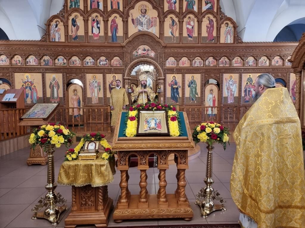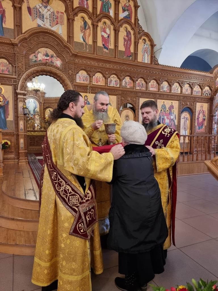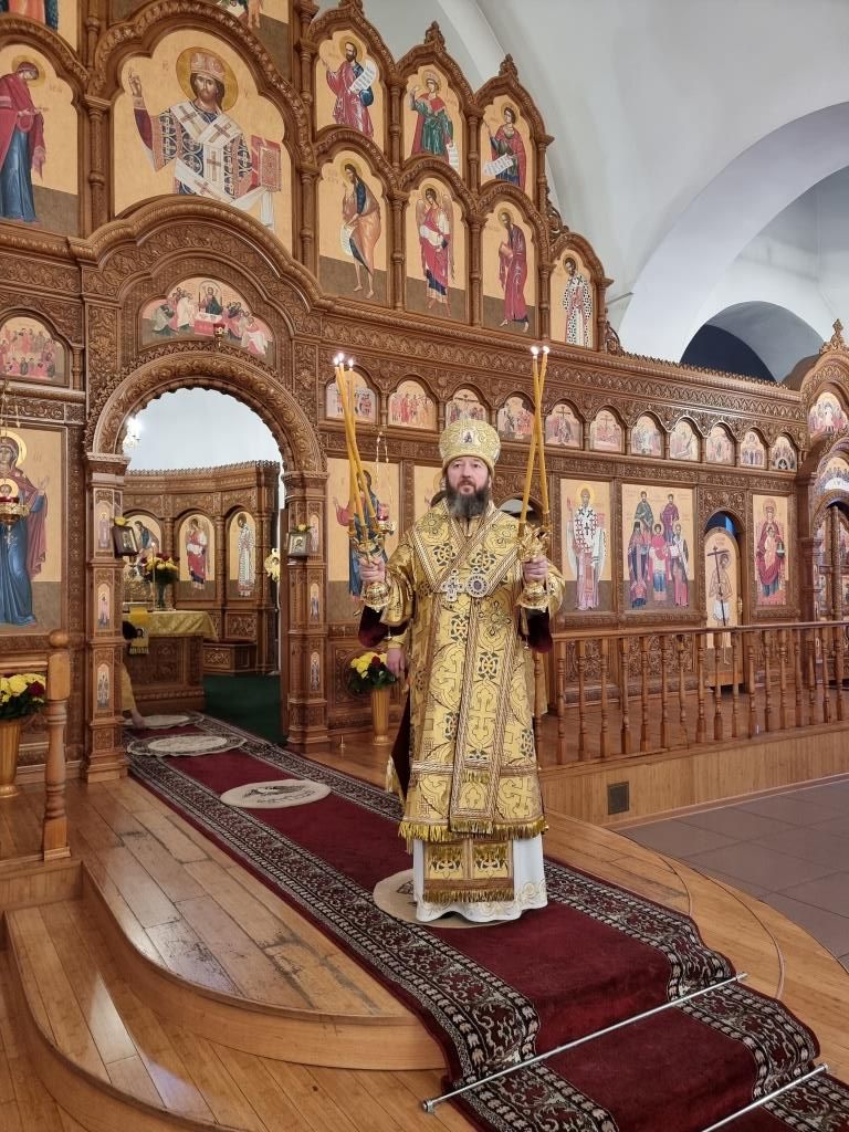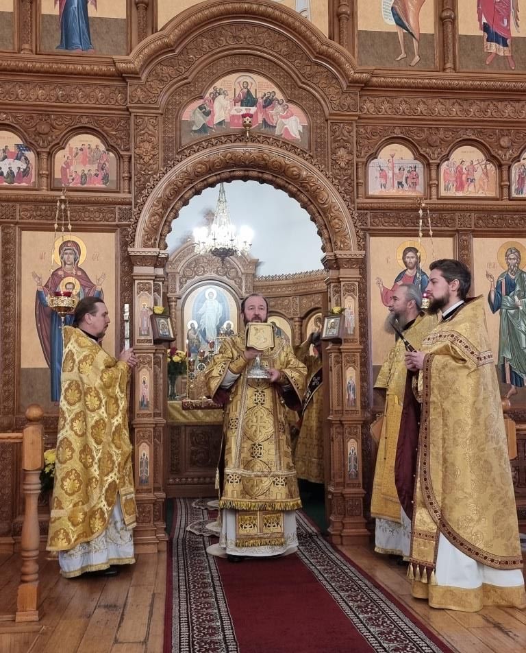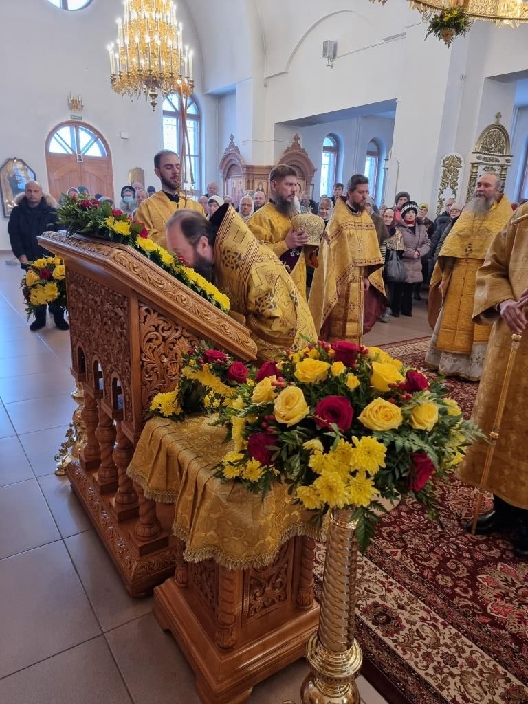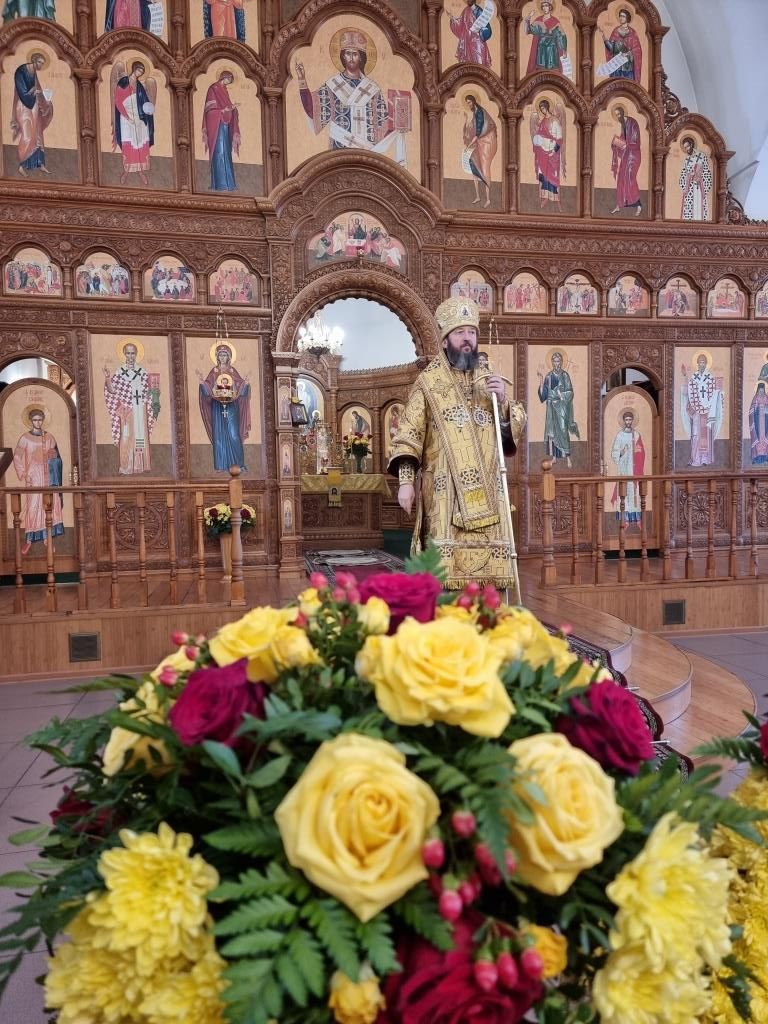 После окончания Божественной Литургии было совершено славление блаженной Матроне Московской, после чего Высокопреосвященнейший Владыка поздравил клир и молящихся с праздником воскресного дня и произнёс проповедь.