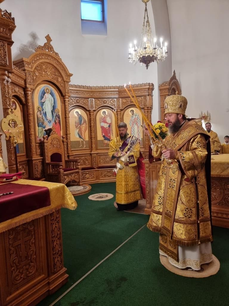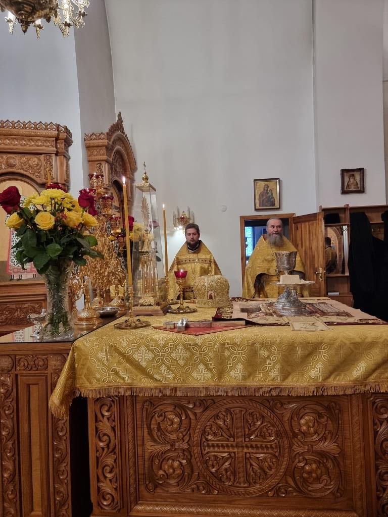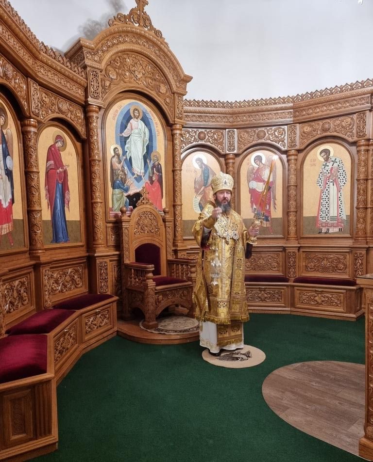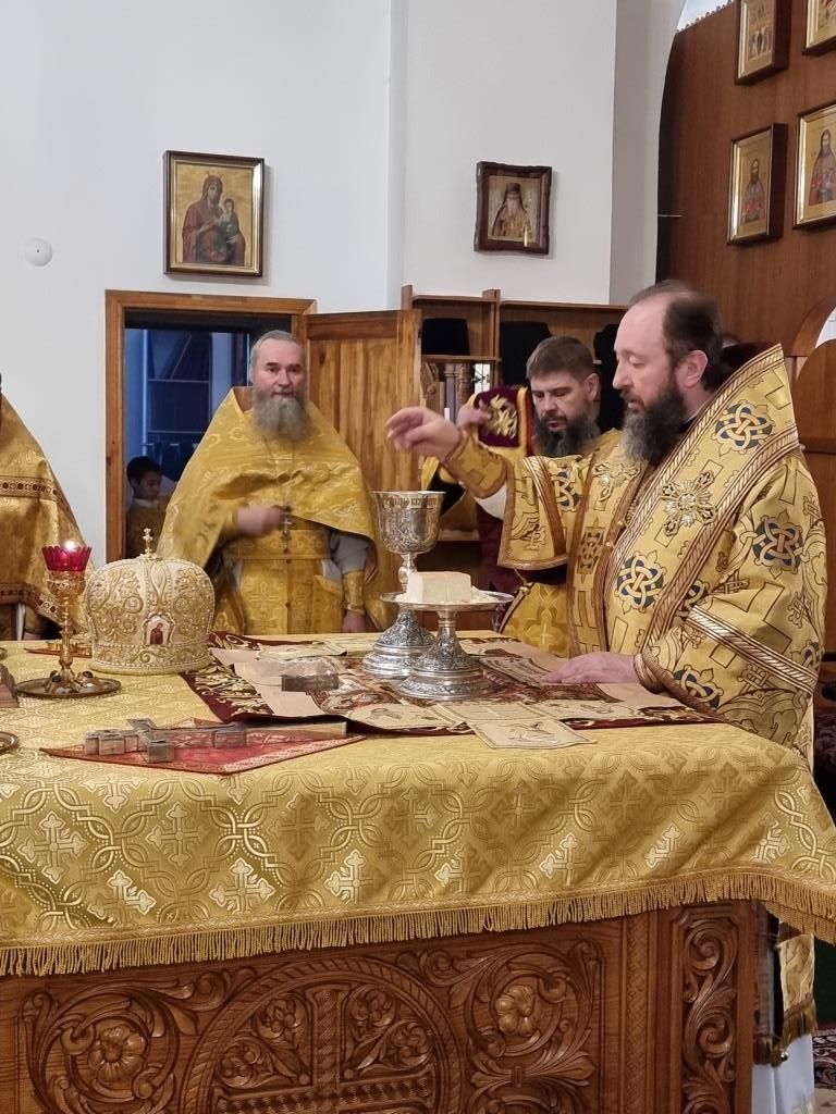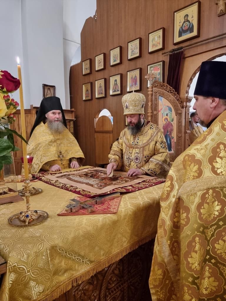 После окончания Божественной Литургии было совершено славление блаженной Матроне Московской, после чего Высокопреосвященнейший Владыка поздравил клир и молящихся с праздником воскресного дня и произнёс проповедь.