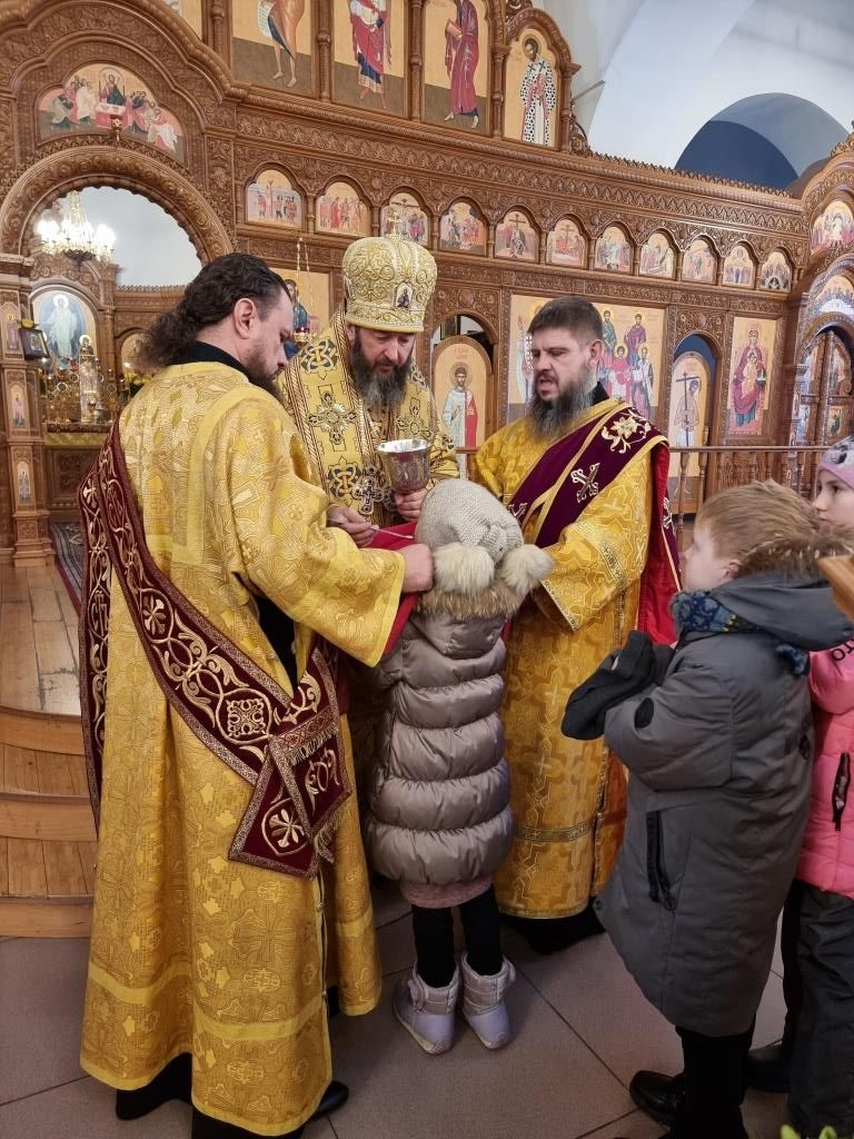 За воскресным архипастырским богослужением молились сотрудники епархиального управления, преподаватели и воспитанники Центральной воскресной школы, прихожане кафедрального собора и насельники Свято-Троицкого мужского монастыря города Усть-Каменогорска. Богомольцы имели возможность приложиться к святым мощам блаженной старицы Матроны Московской, которые будут находиться под сводами Андреевского собора до 19 декабря.