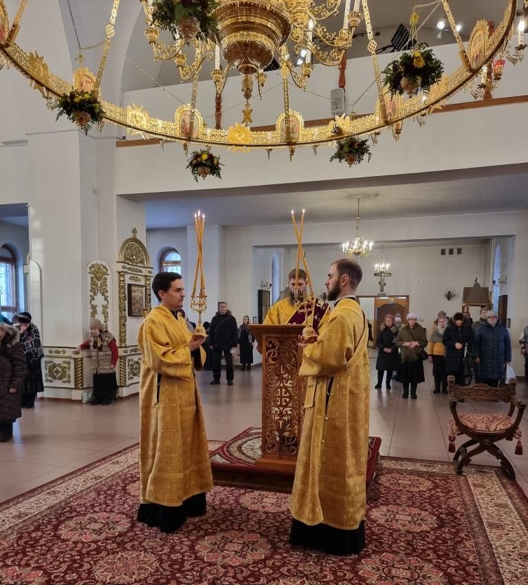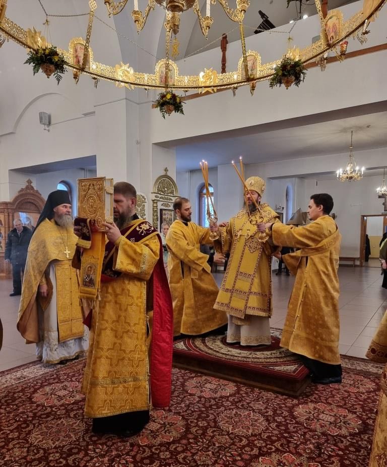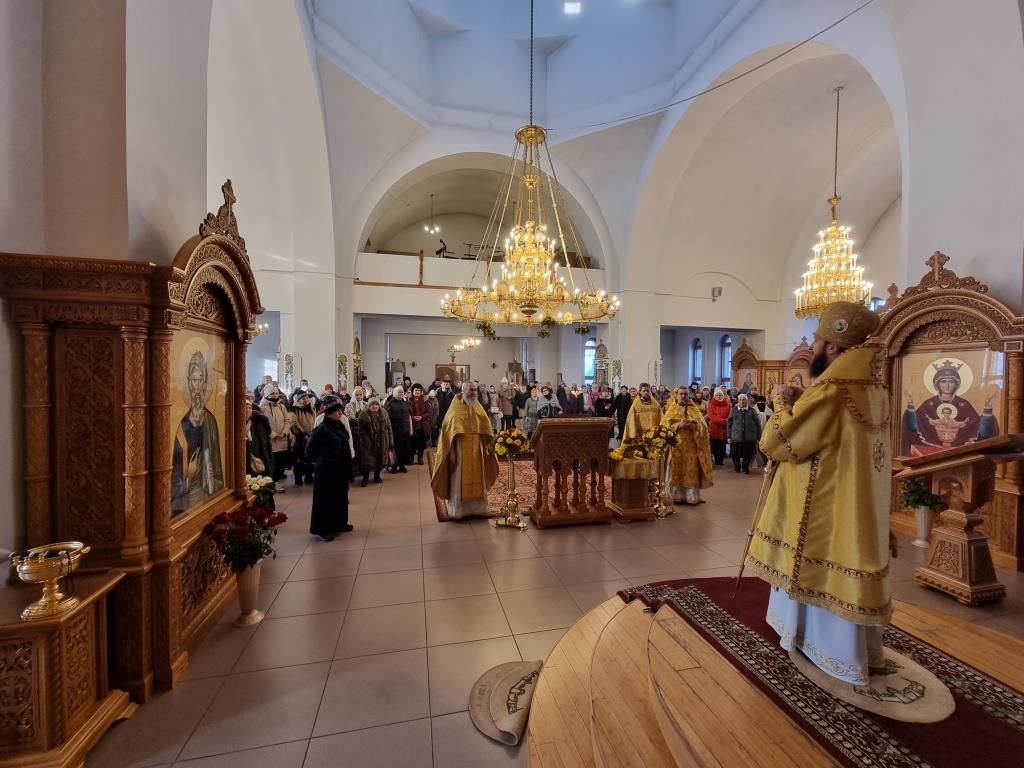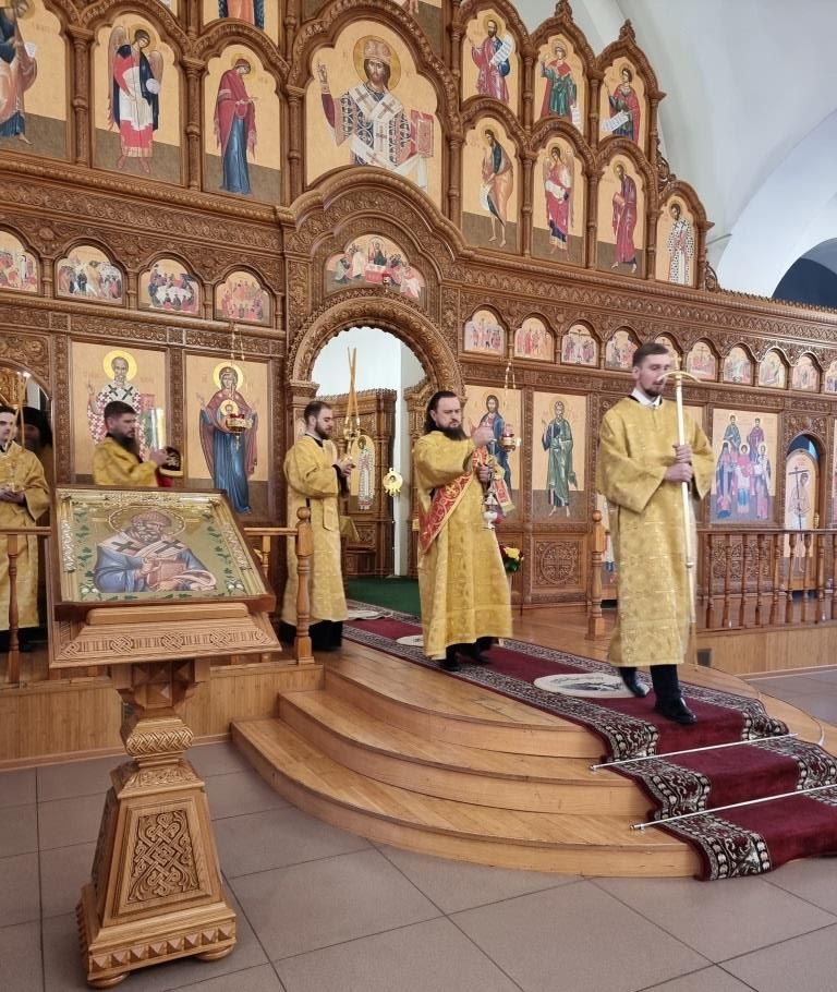 Песнопения праздника и Божественной Литургии исполнял хор под управлением регента Н. Романцовой. За богослужением молились прихожане и паломники кафедрального собора, сотрудники епархиального управления и насельники Свято-Троицкого мужского монастыря города Усть-Каменогорска. После заамвонной молитвы было совершено славление святителю Николаю, после чего Владыка архиепископ поздравил всех с праздником и обратился к собравшимся со словом поучения.