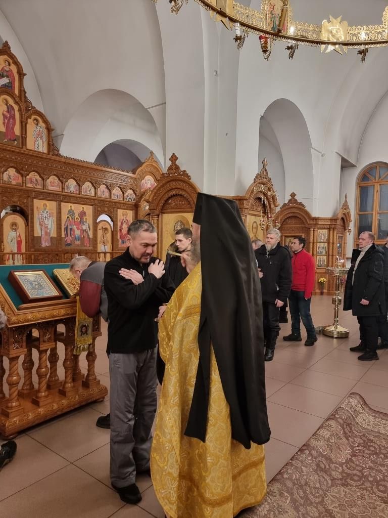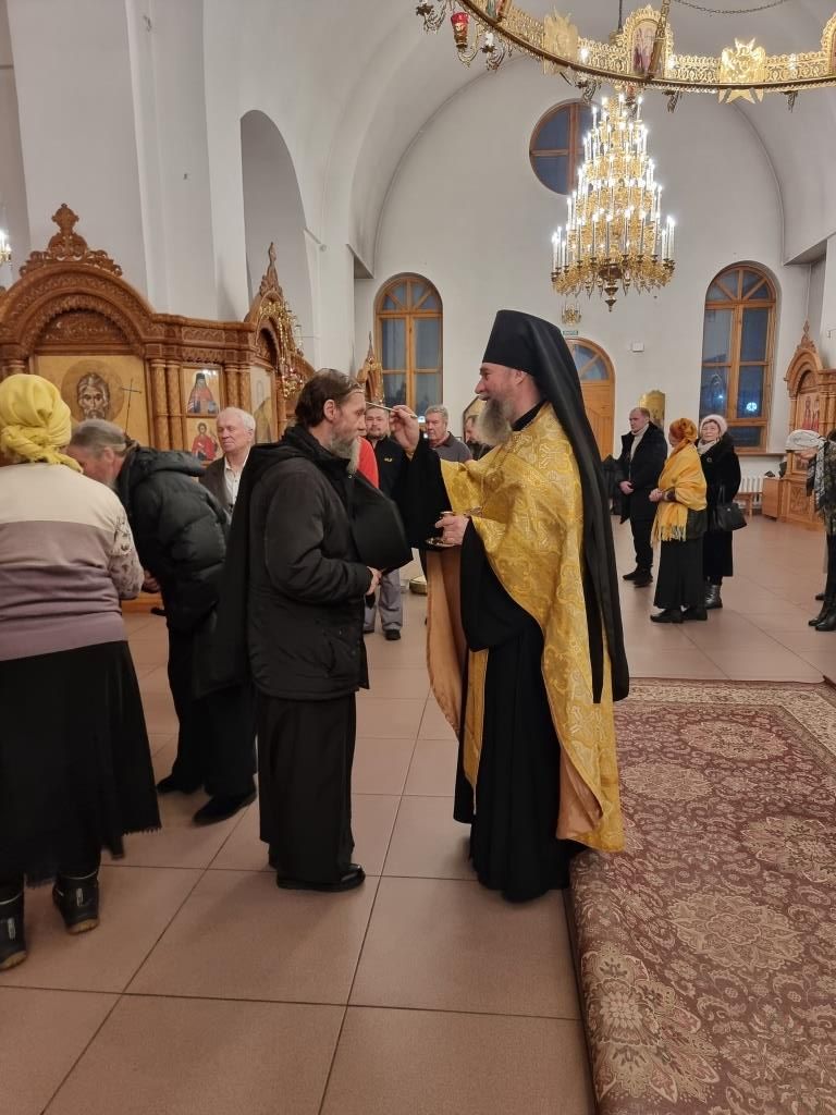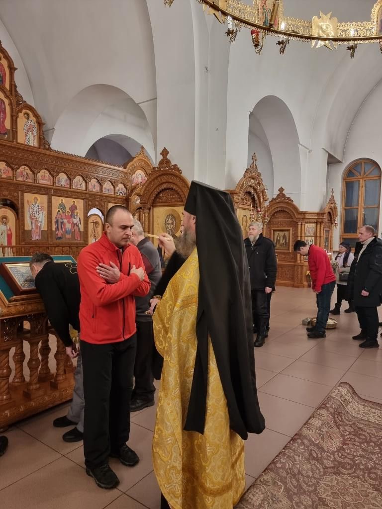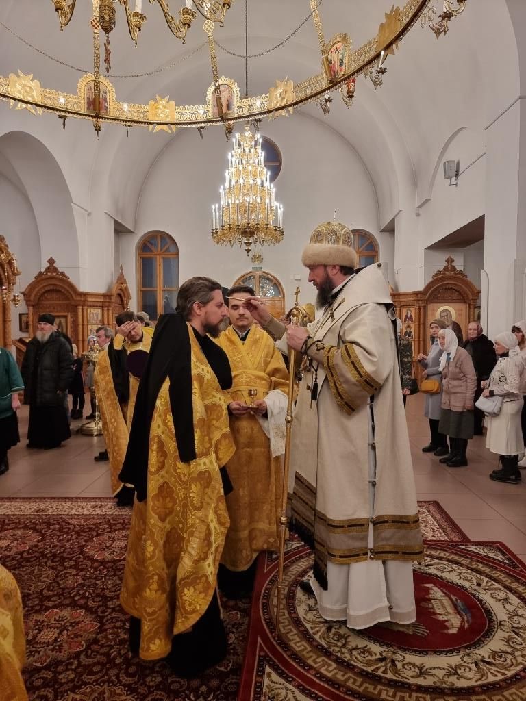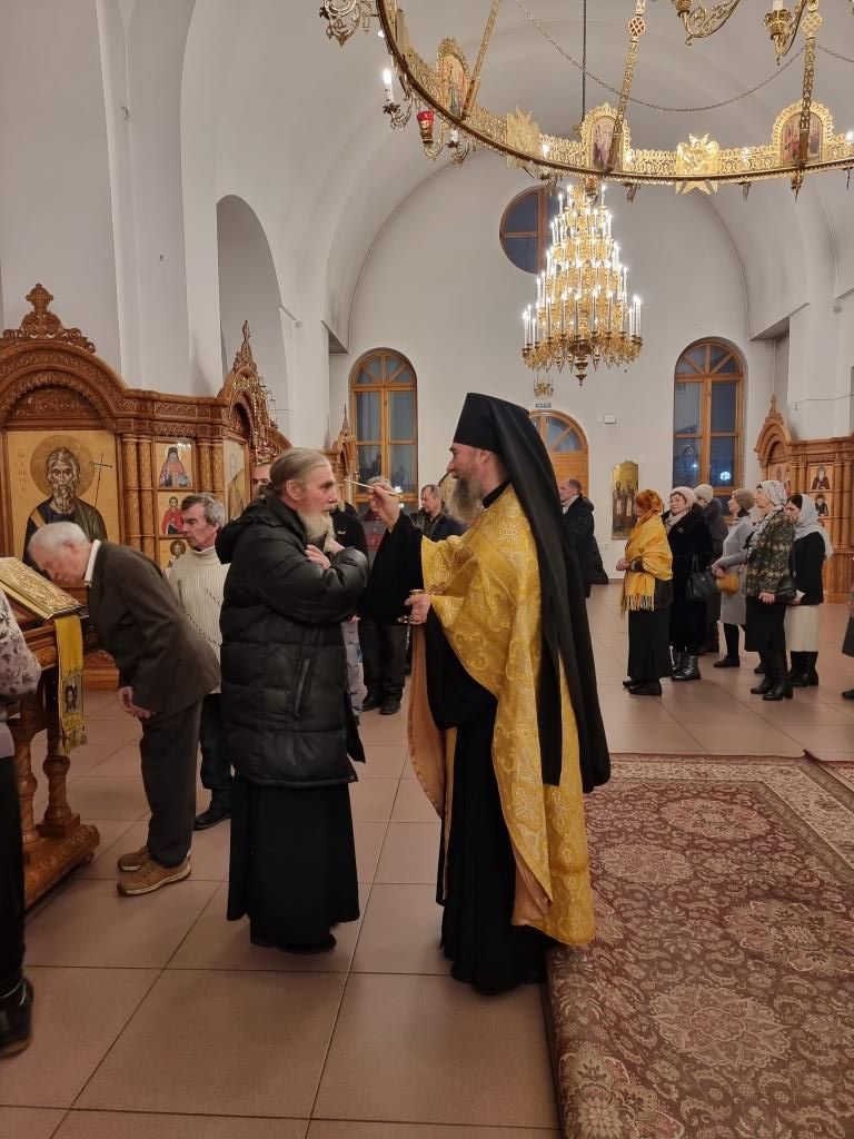 Уставные песнопения исполнял хор кафедрального собора, регент – Н. Романцова. За вечерним богослужением молились прихожане и паломники Андреевского собора, сотрудники епархиального управления и насельники Свято-Троицкого мужского монастыря города Усть-Каменогорска. После чтения Евангельского зачала Архипастырь помазал духовенство и народ Божий освященным елеем.