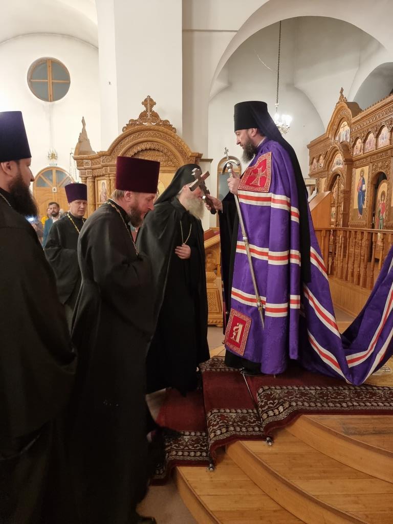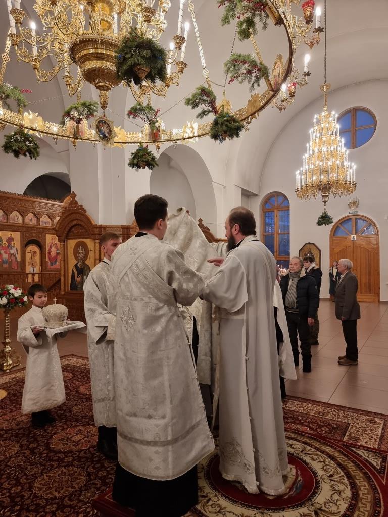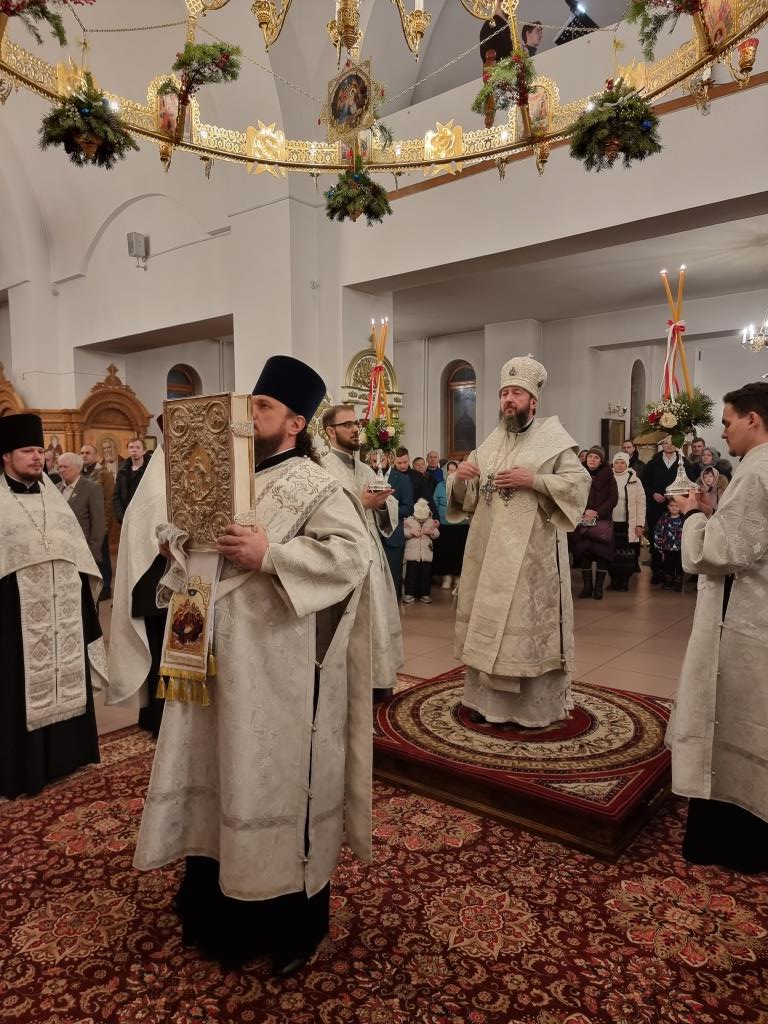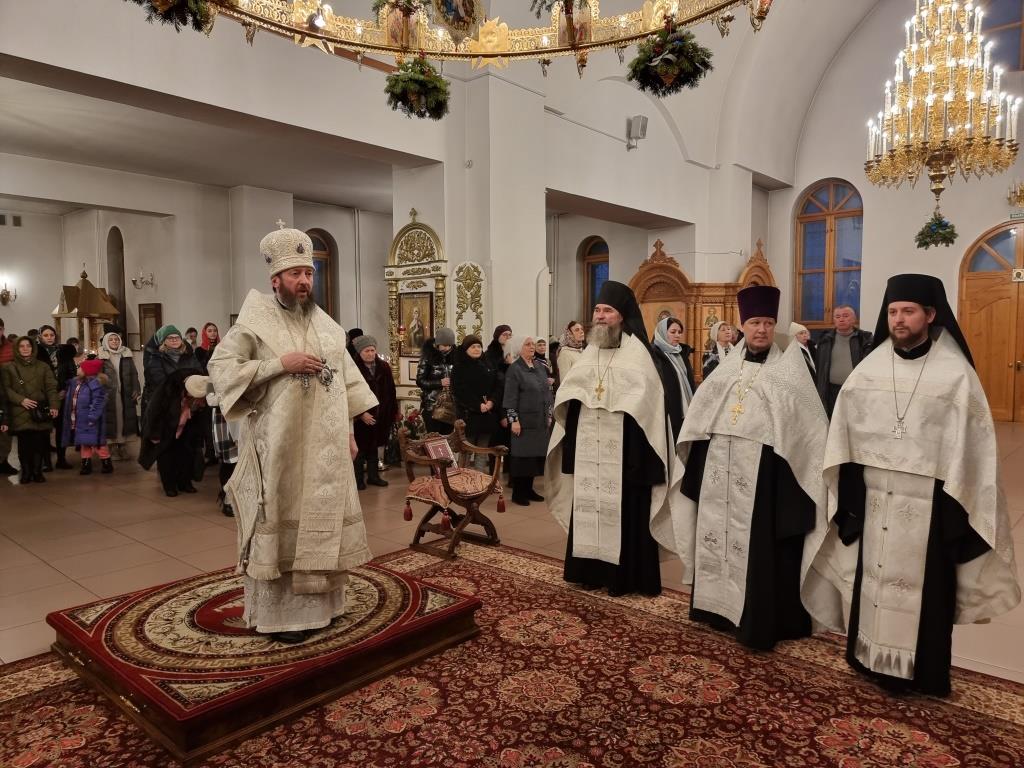 По окончании вечерни протоиерей Евгений Яганов огласил Рождественское послание архиепископа Амфилохия духовенству, монашествующим и боголюбивой пастве Усть-Каменогорской и Семипалатинской епархии.