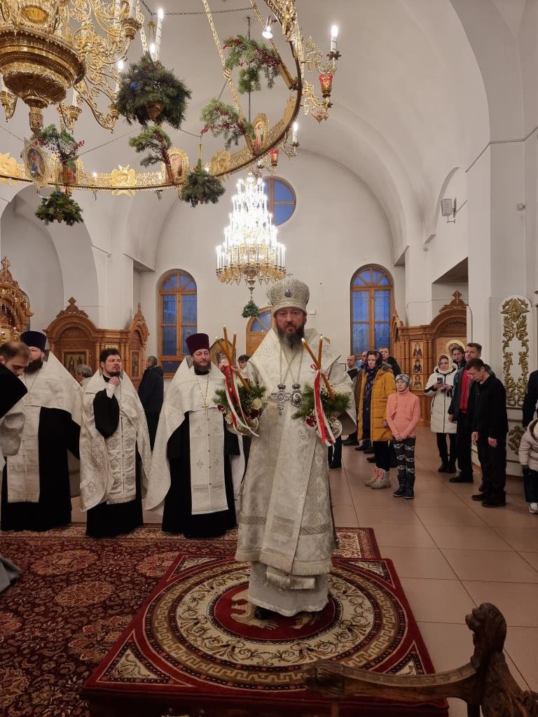 Вечером 7 января Управляющий Усть-Каменогорской и Семипалатинской епархией Высокопреосвященнейший архиепископ Амфилохий возглавил служение праздничной великой вечерни в Свято-Андреевском кафедральном соборе города Усть-Каменогорска. Его Высокопреосвященству сослужили: благочинный Усть-Каменогорского церковного округа протоиерей Евгений Яганов, настоятели и клирики городских храмов, руководители епархиальных отделов в священном сане.