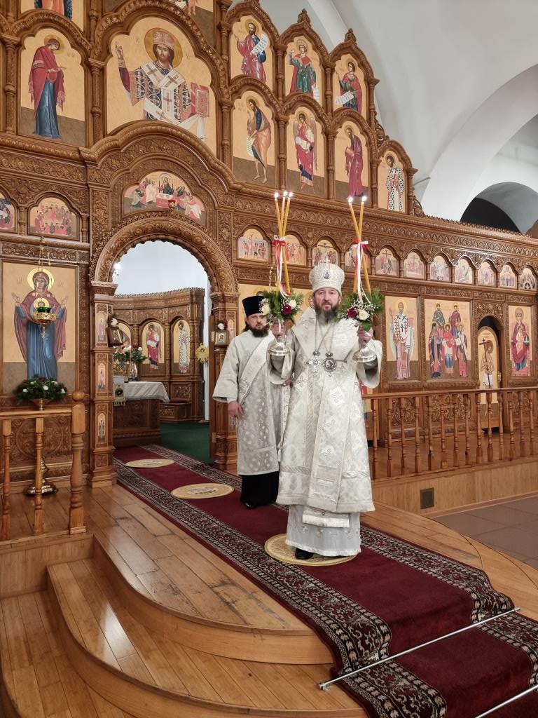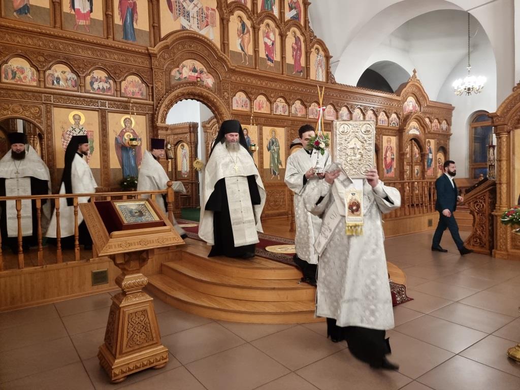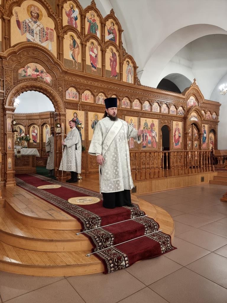 За вечерним богослужением молились насельники Свято-Троицкого мужского монастыря, прихожане кафедрального собора. Праздничные песнопения исполнял хор Андреевского собора под управлением Н. Романцовой.