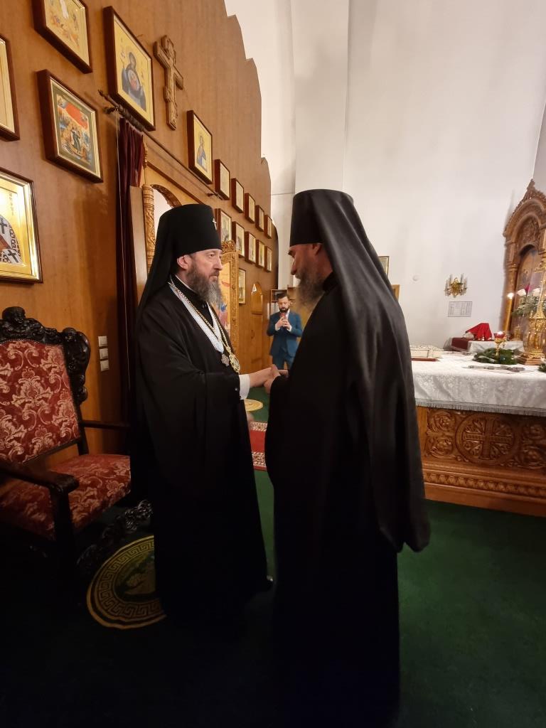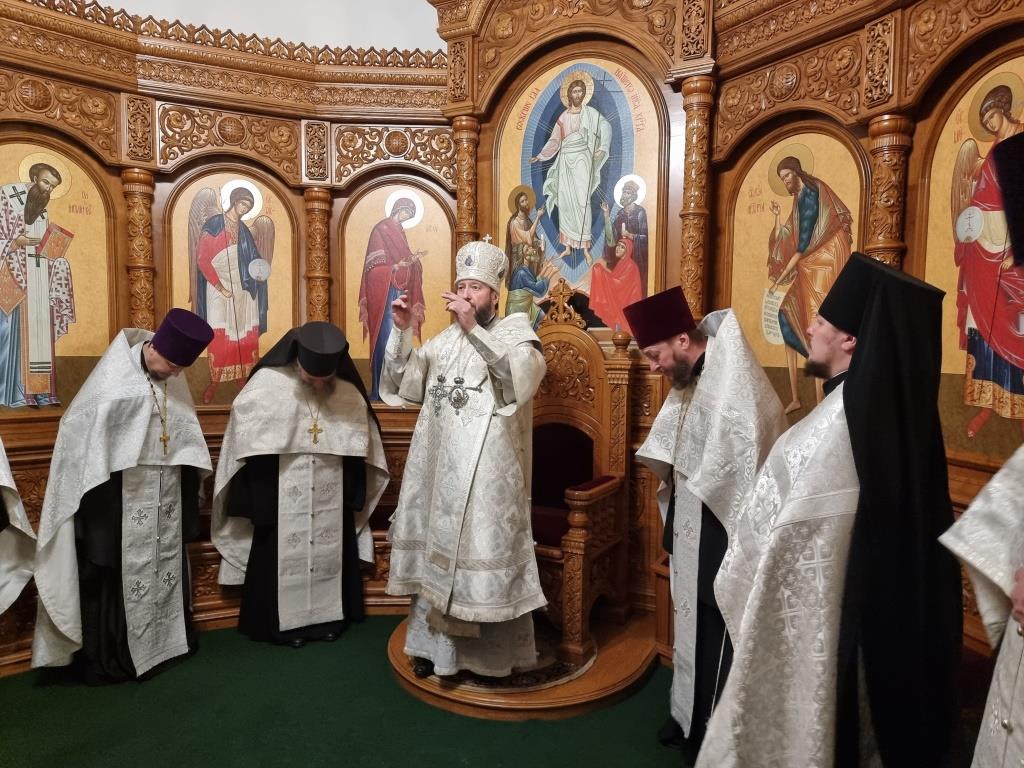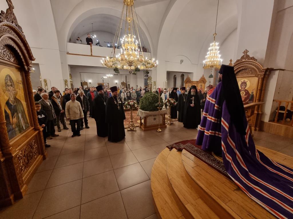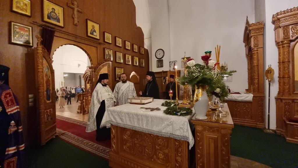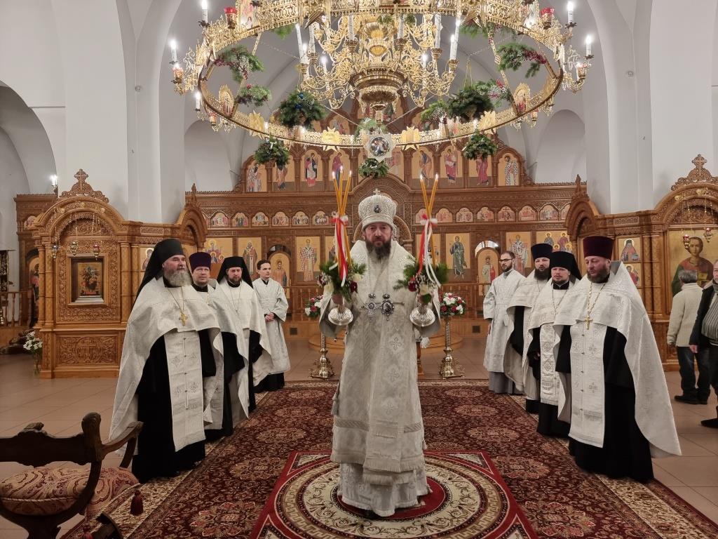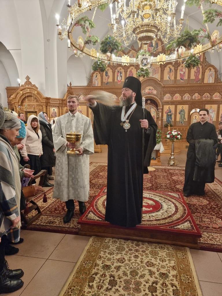 В завершение вечернего богослужения Владыка архиепископ по традиции принял поздравления с праздником Рождества Христова от духовенства и мирян.