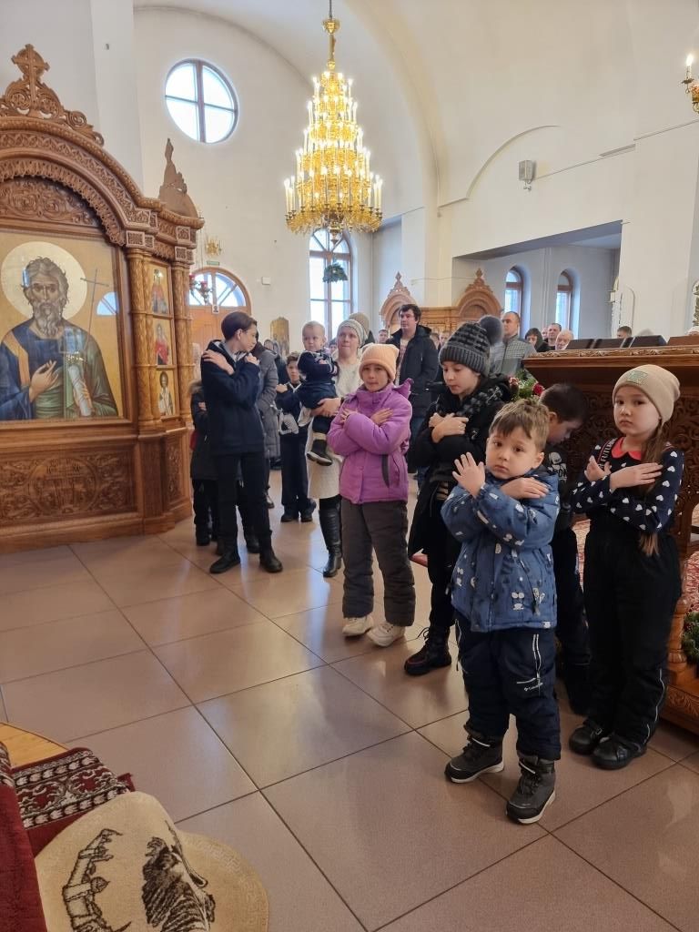 За воскресным богослужением молились сотрудники епархиального управления, преподаватели и воспитанники Центральной воскресной школы, прихожане кафедрального собора и насельники Свято-Троицкого мужского монастыря города Усть-Каменогорска. В завершение богослужения было совершено славление преподобному Серафиму Саровскому: духовенство и народ Божий воспели тропарь и кондак преподобному старцу, после чего Владыка архиепископ вознес молитву святому.