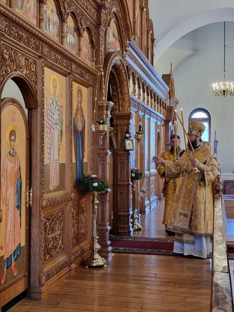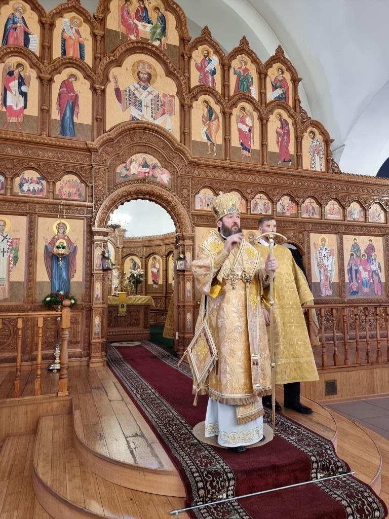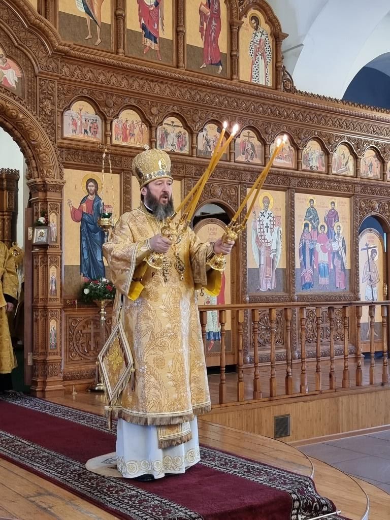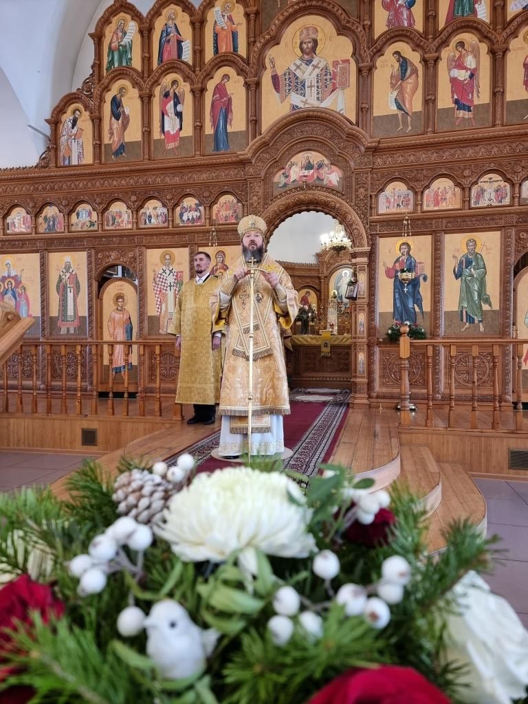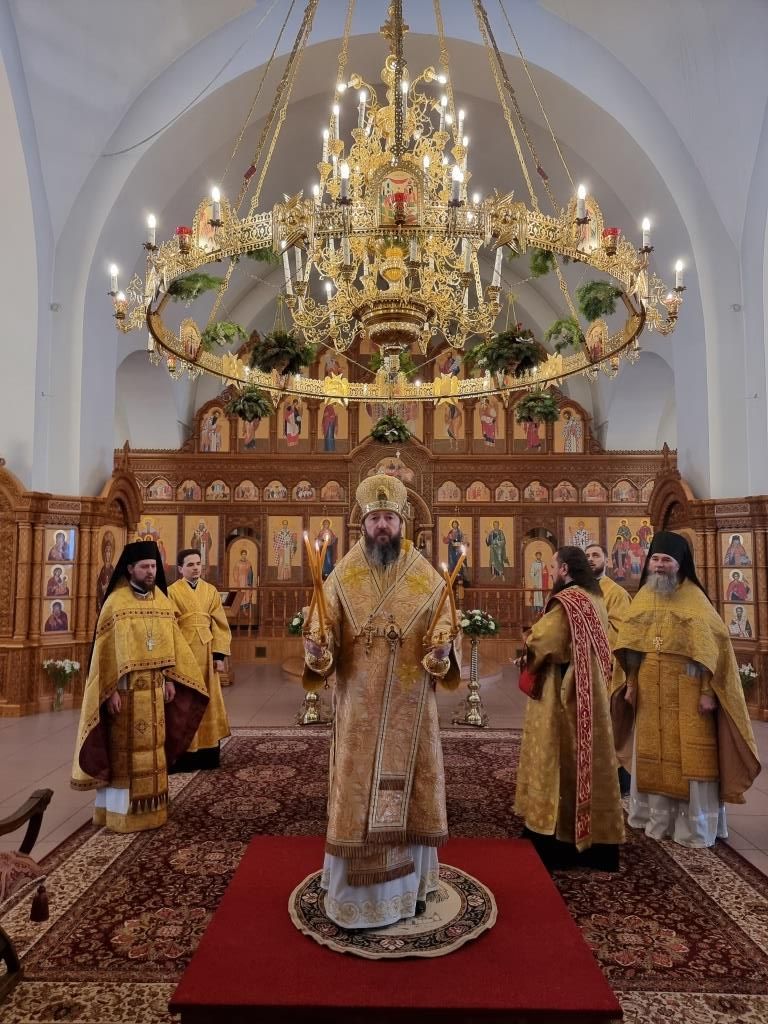 После окончания Божественной Литургии Высокопреосвященнейший Владыка поздравил духовенство и прихожан с праздником и обратился к народу Божию со словами святительского наставления.