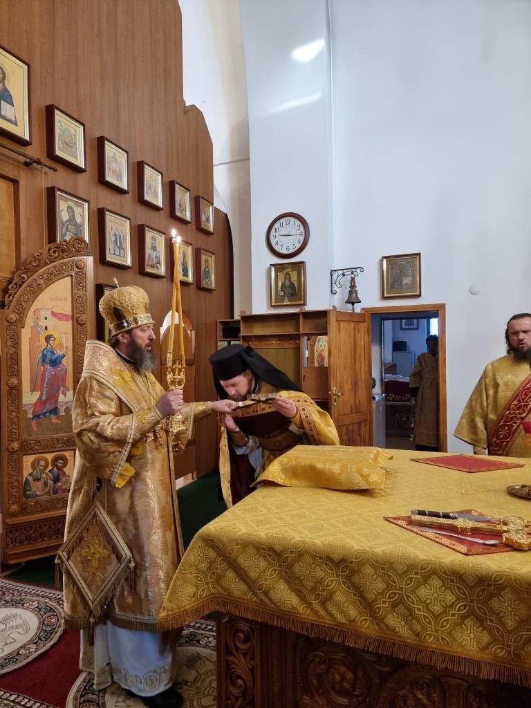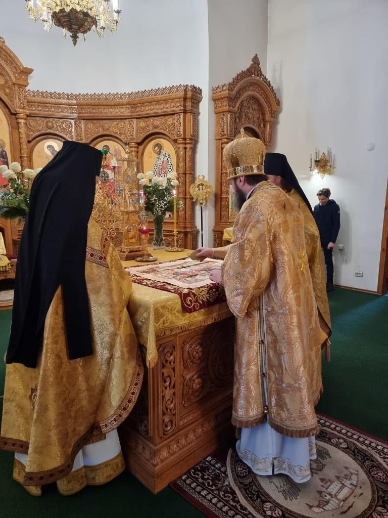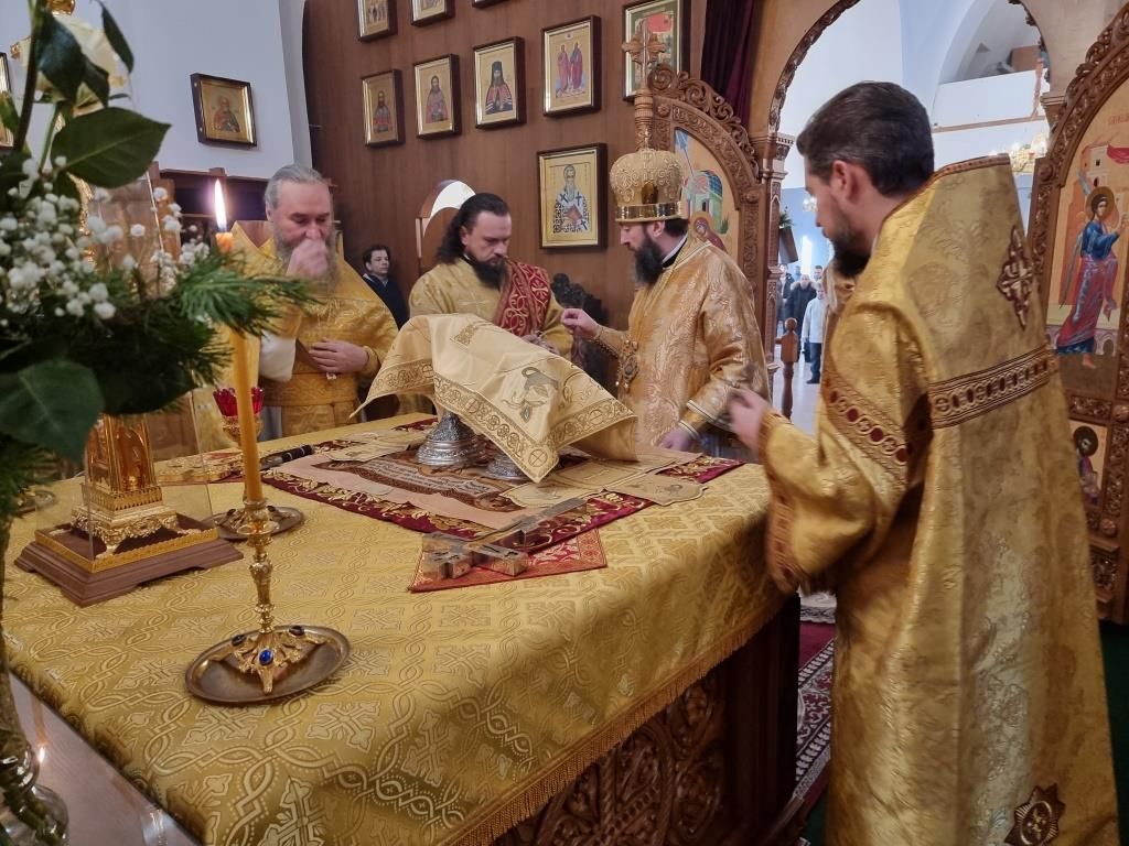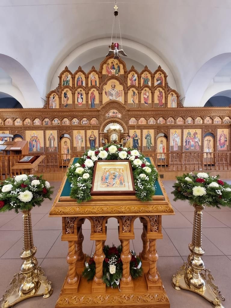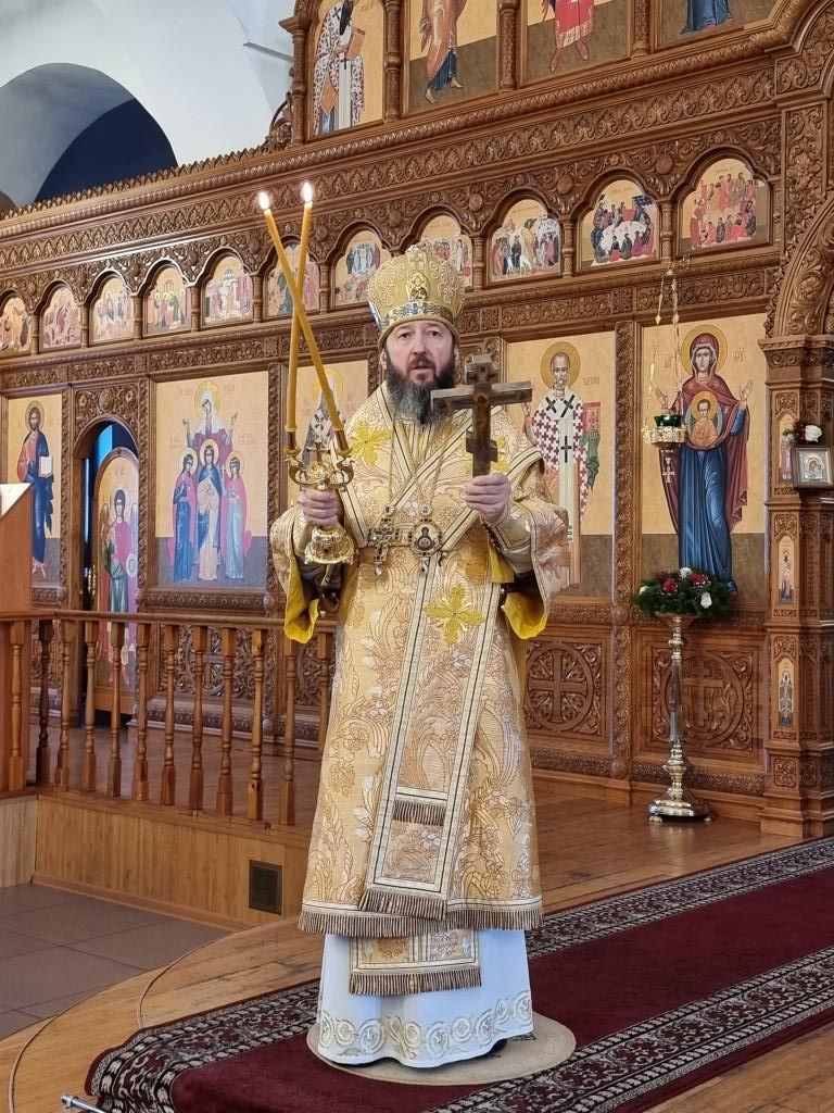 После окончания Божественной Литургии Высокопреосвященнейший Владыка поздравил духовенство и прихожан с праздником и обратился к народу Божию со словами святительского наставления.