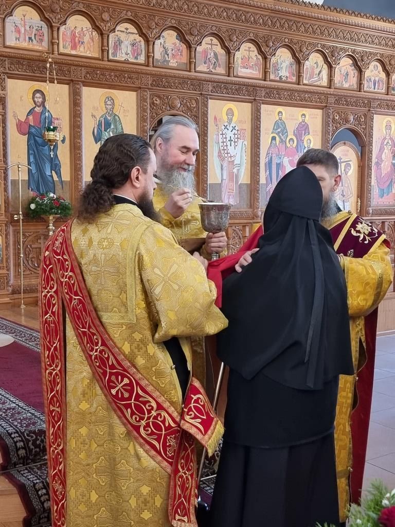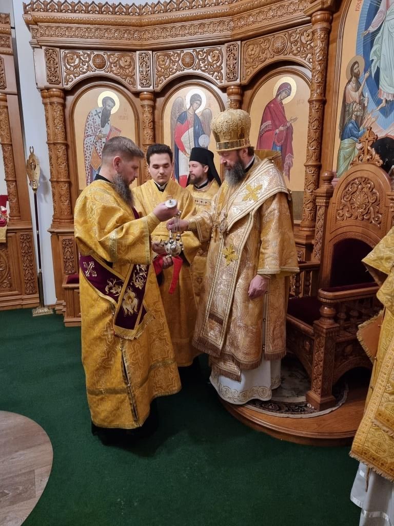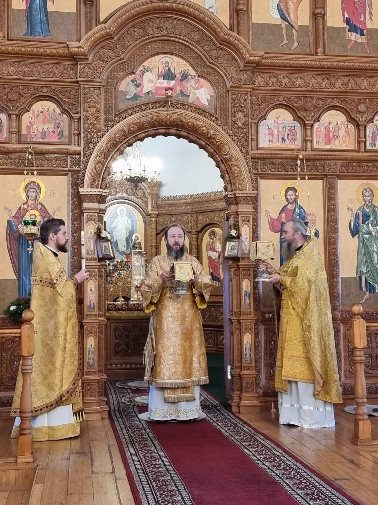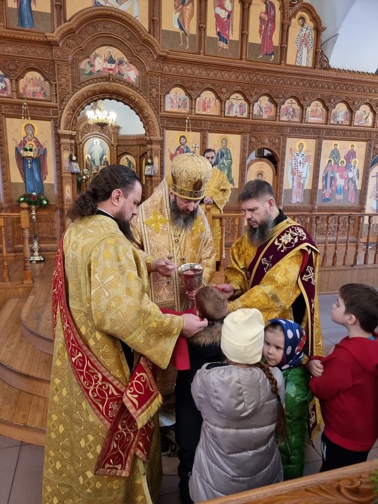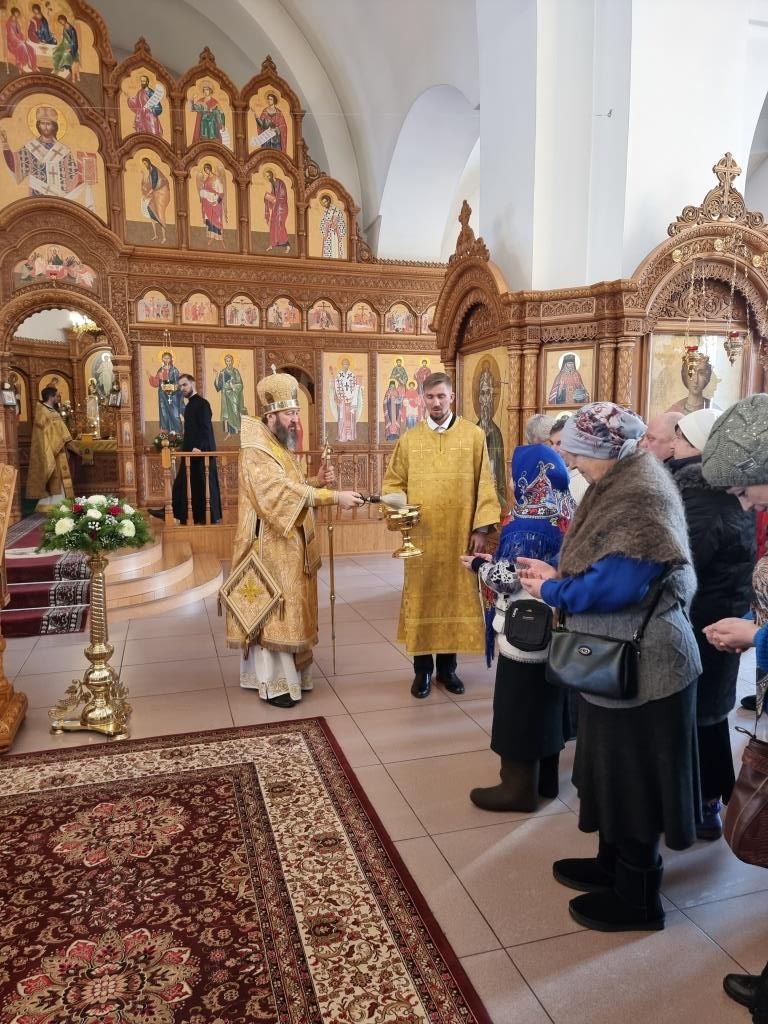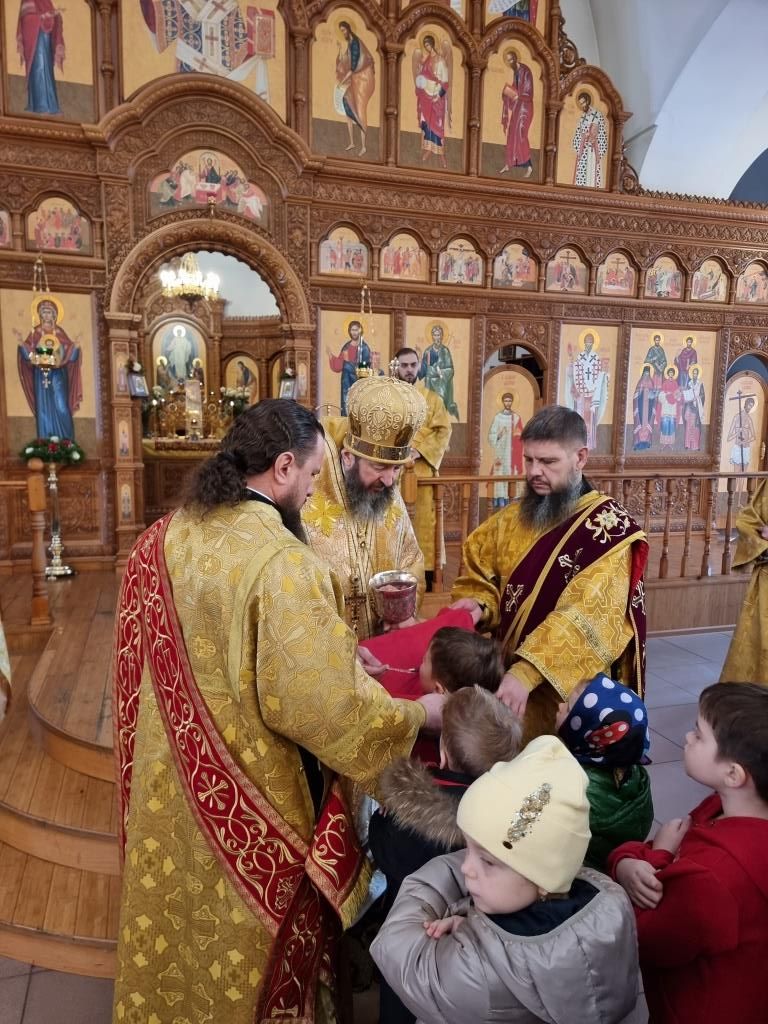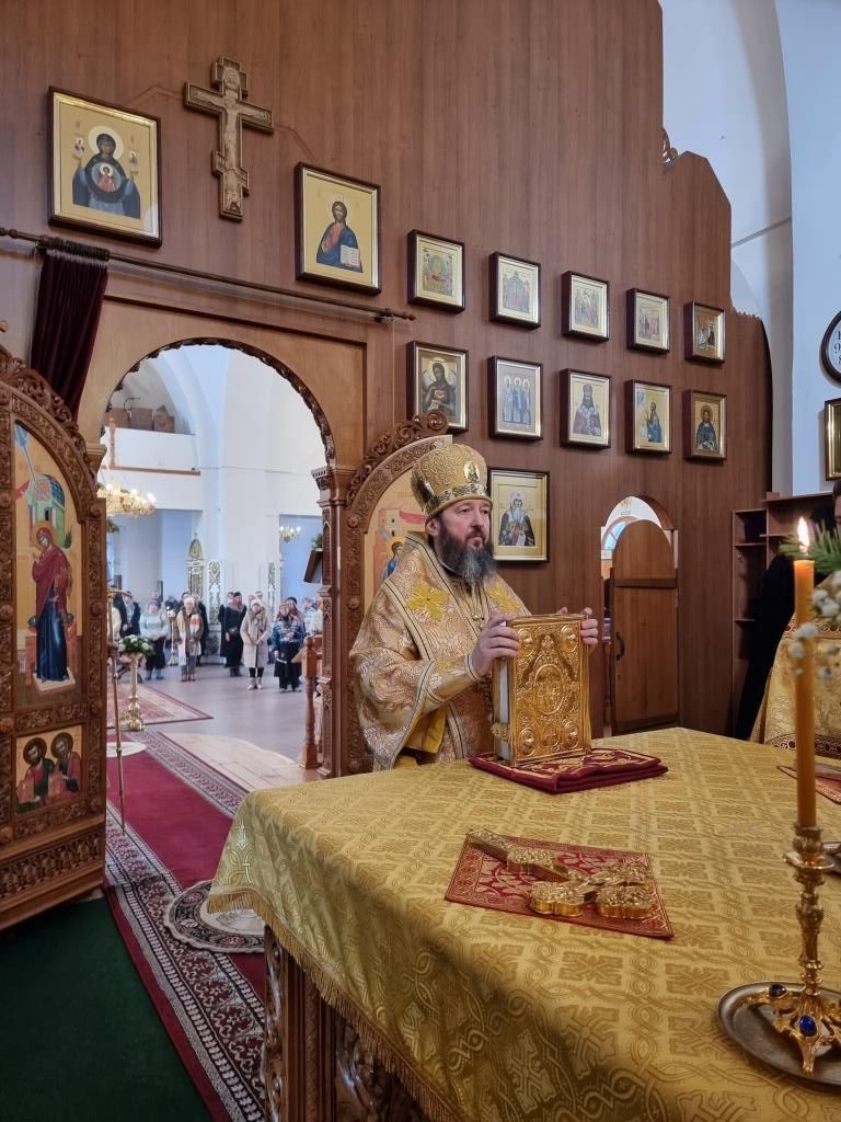 За архипастырским богослужением молились насельники Свято-Троицкого мужского монастыря города Усть-Каменогорска, преподаватели и воспитанники Центральной воскресной школы, прихожане кафедрального собора и сотрудники епархиального управления. Перед причастием мирян проповедь произнёс иеромонах Мефодий (Шевчук).
