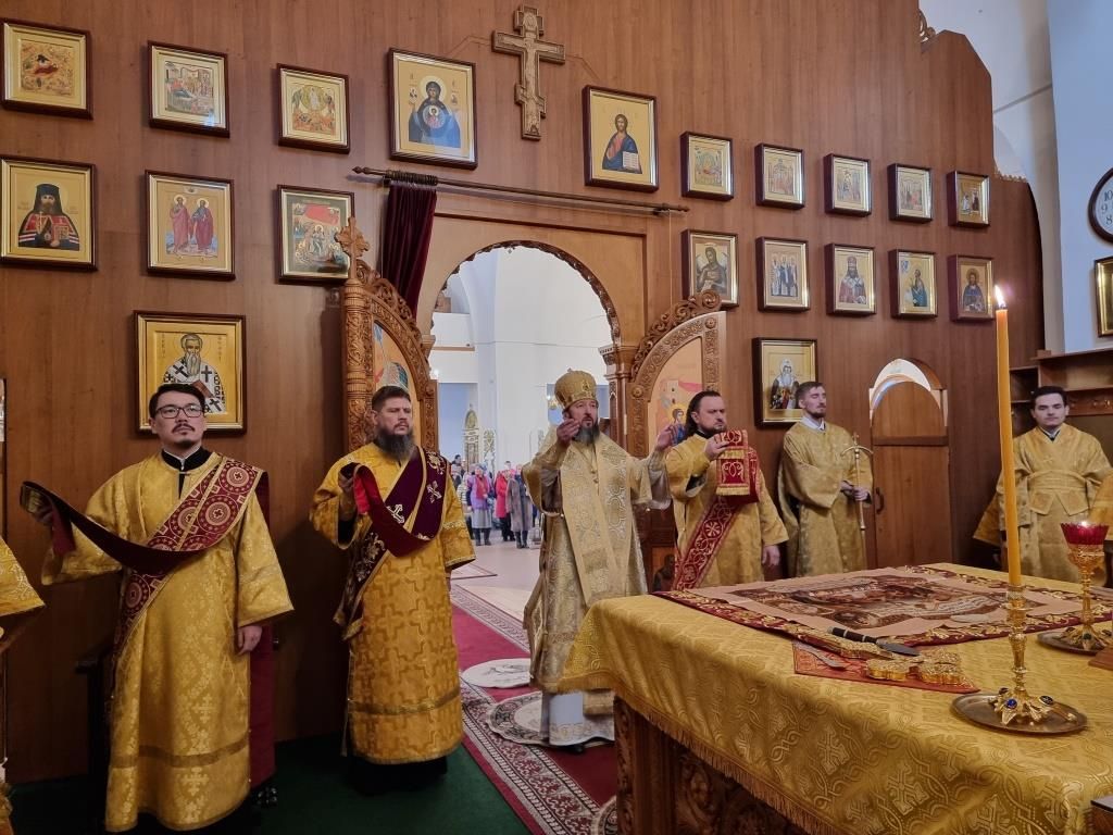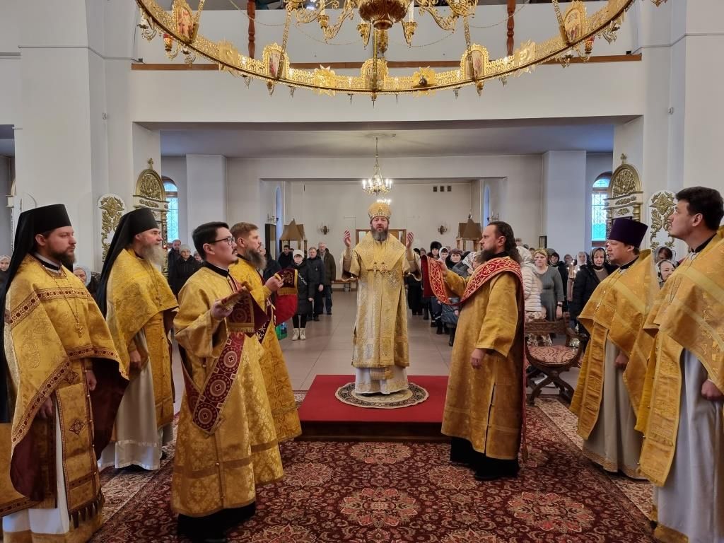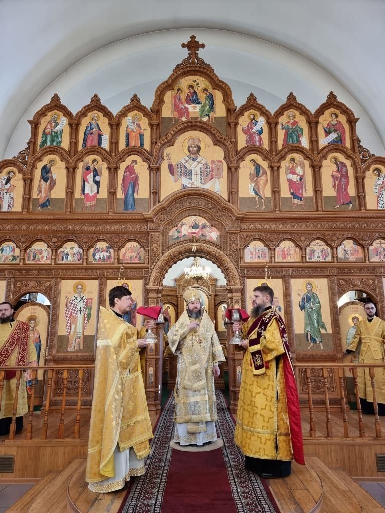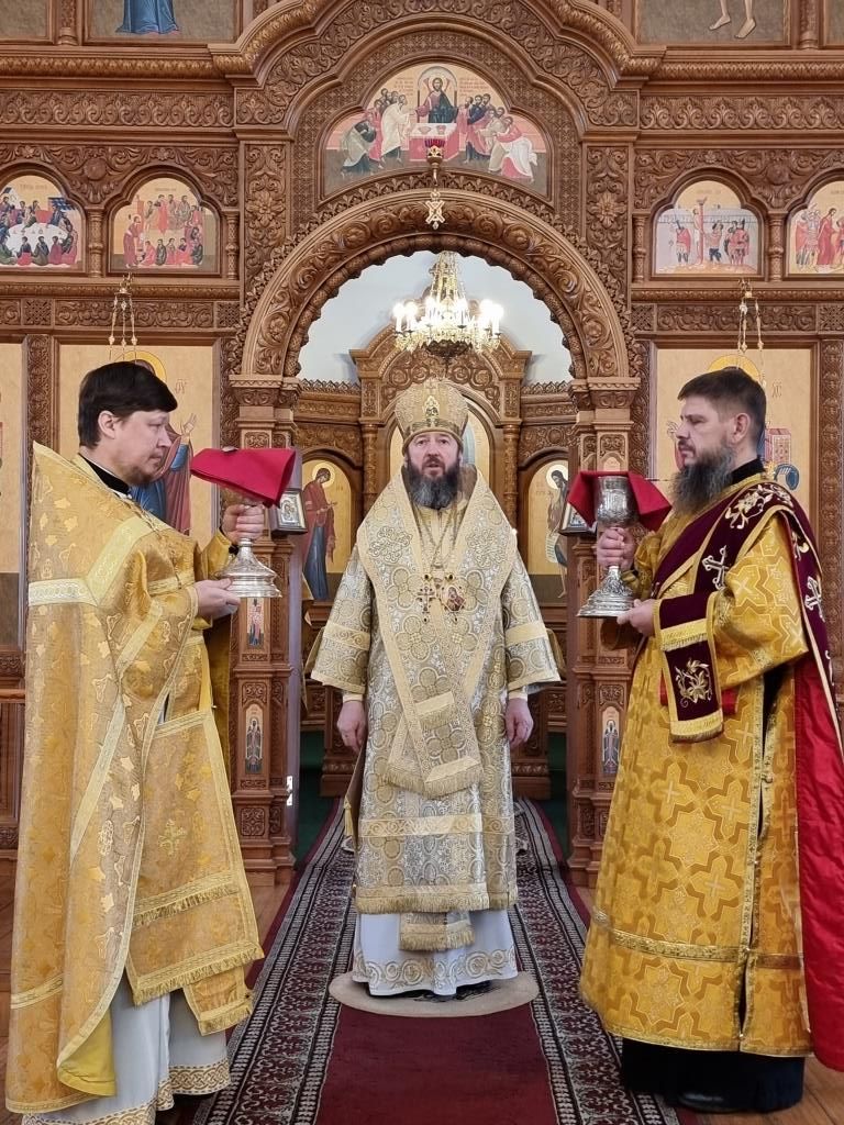 Высокопреосвященнейший архиепископ Усть-Каменогорский и Семипалатинский Амфилохий возглавил служение Божественной Литургии святителя Иоанна Златоуста в Андреевском кафедральном соборе города Усть-Каменогорска. Владыке архиепископу сослужили: ключарь Андреевского кафедрального собора иеромонах Никодим (Авдеев), клирики кафедрального собора иерей Роман Подрезов и иеромонах Мефодий (Шевчук), иеромонах Александр (Вальков), секретарь епархии диакон Илия Кван, протодиаконы Георгий Засыпкин и Андрей Дудник.