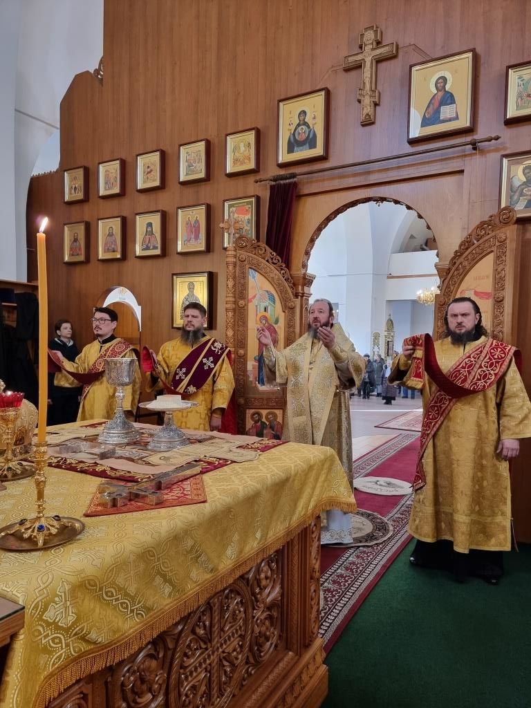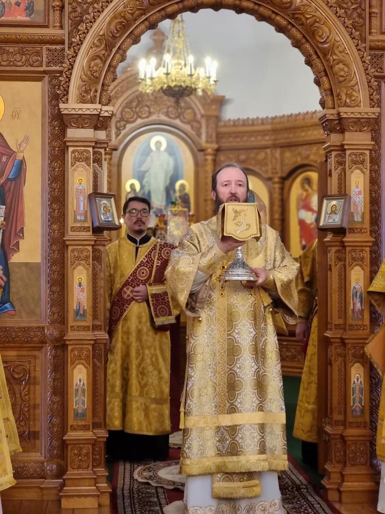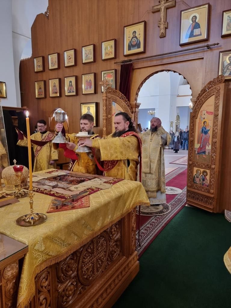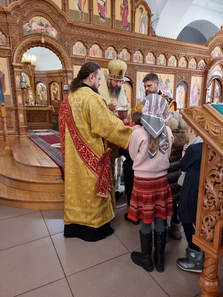 За богослужением пел хор Андреевского собора (регент – Н. Романцова). В храме молились и причащались Христовых Таин прихожане главного храма Восточного Казахстана, сотрудники епархиального управления, преподаватели и воспитанники Центральной воскресной школы и насельники Свято-Троицкого мужского монастыря города Усть-Каменогорска.