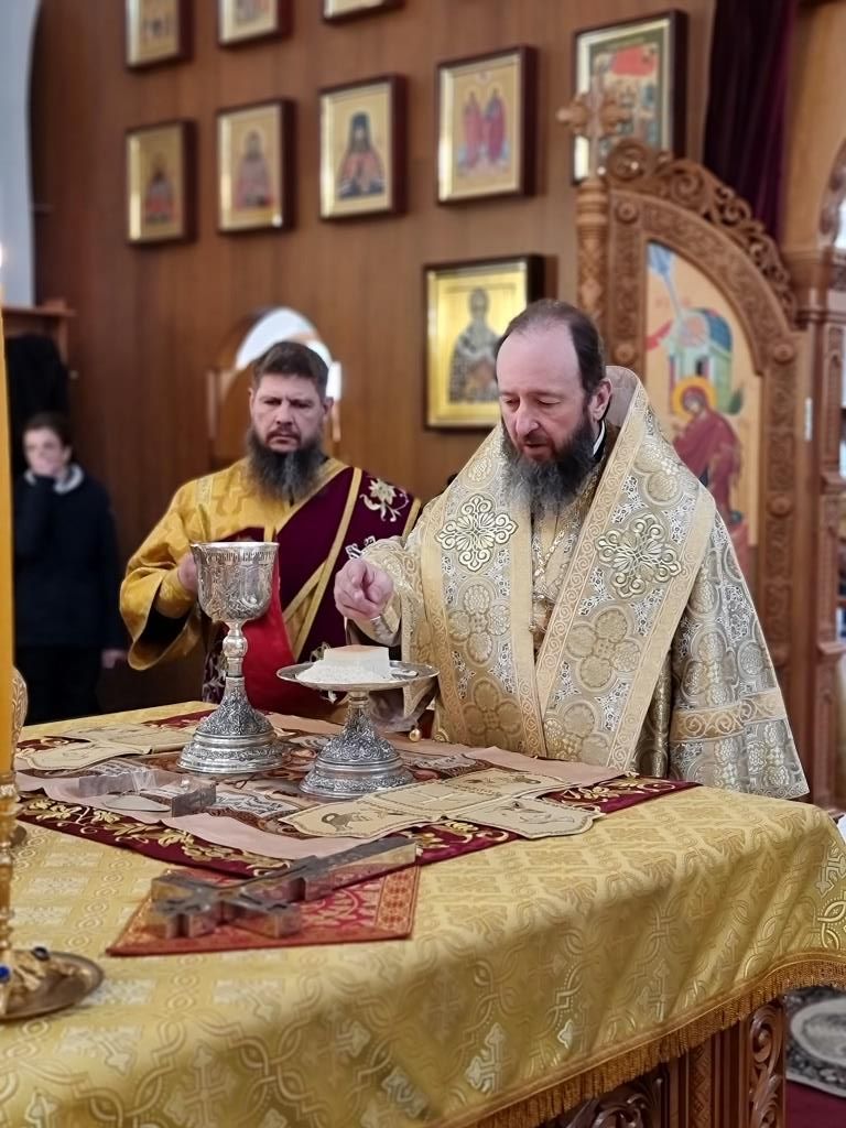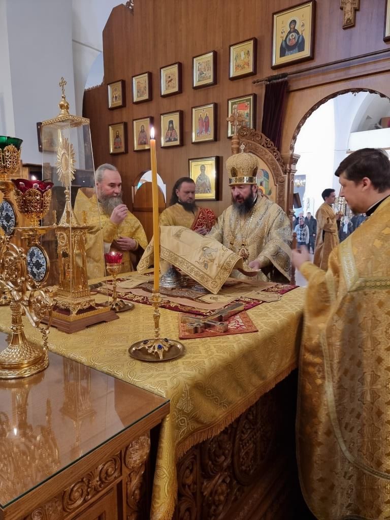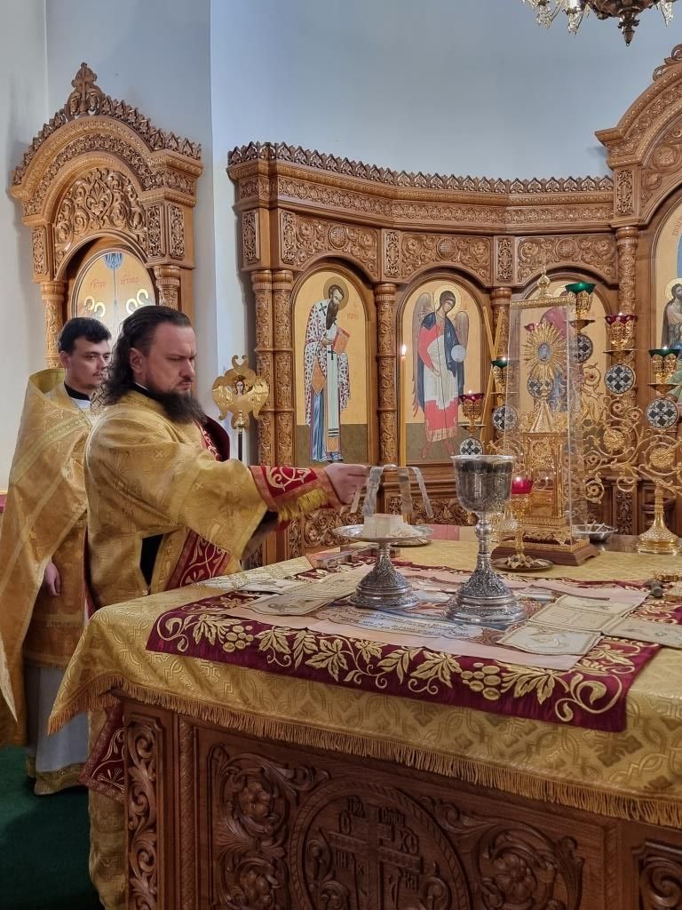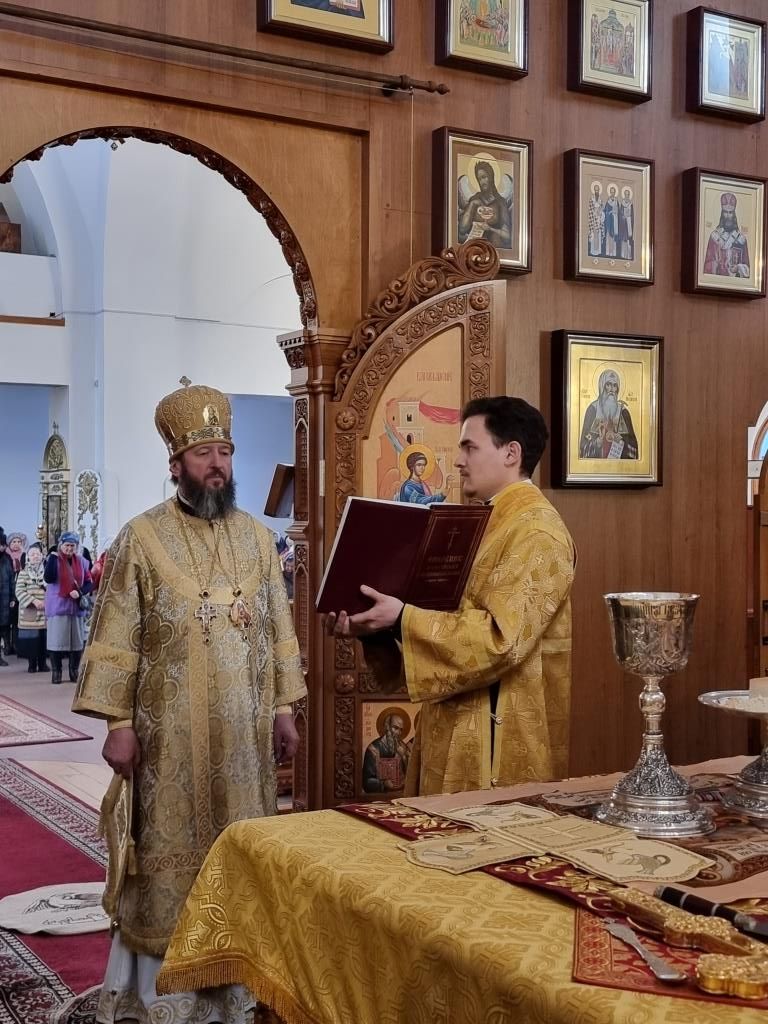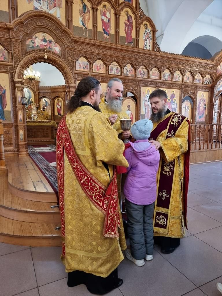 За богослужением пел хор Андреевского собора (регент – Н. Романцова). В храме молились и причащались Христовых Таин прихожане главного храма Восточного Казахстана, сотрудники епархиального управления, преподаватели и воспитанники Центральной воскресной школы и насельники Свято-Троицкого мужского монастыря города Усть-Каменогорска.