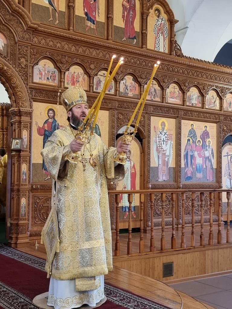 После окончания Литургии архиепископ Амфилохий поздравил духовенство и молящихся с праздником и обратился к прихожанам со словами наставления.