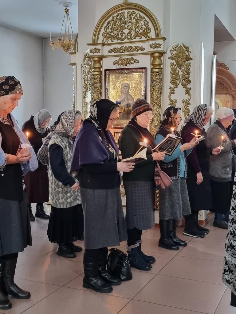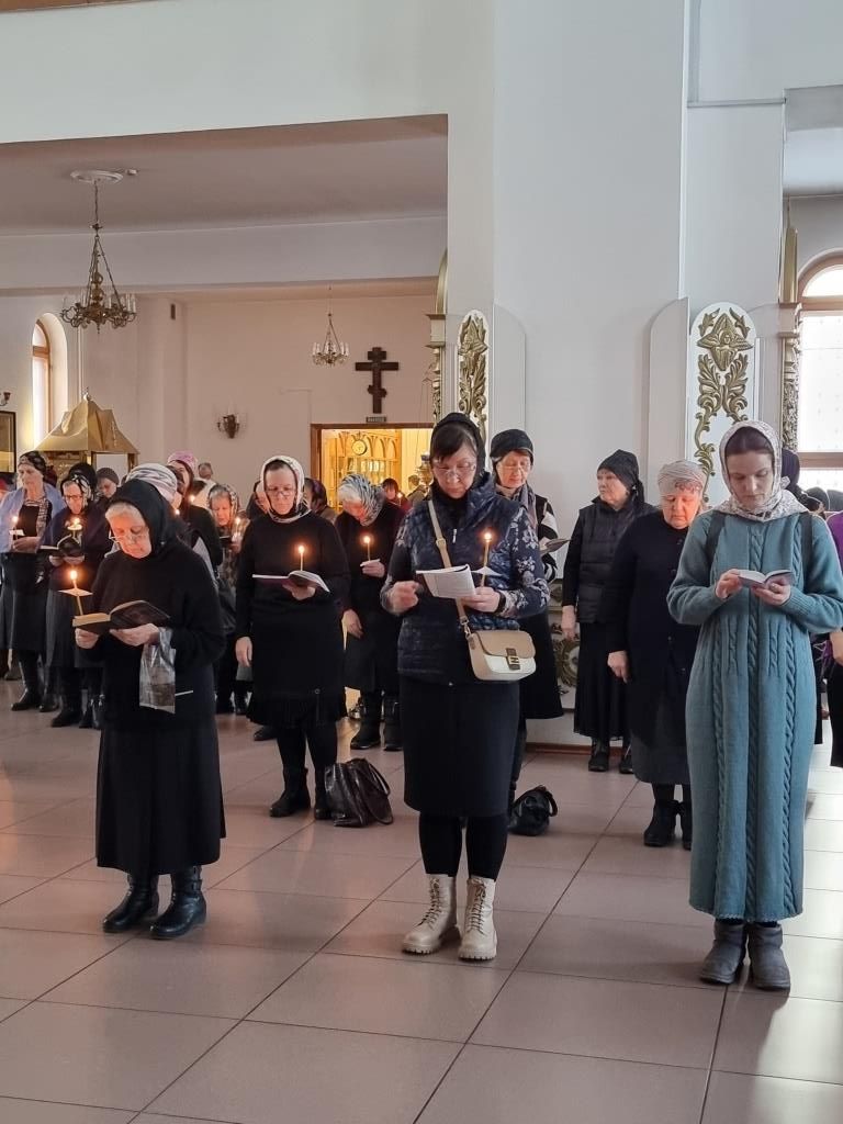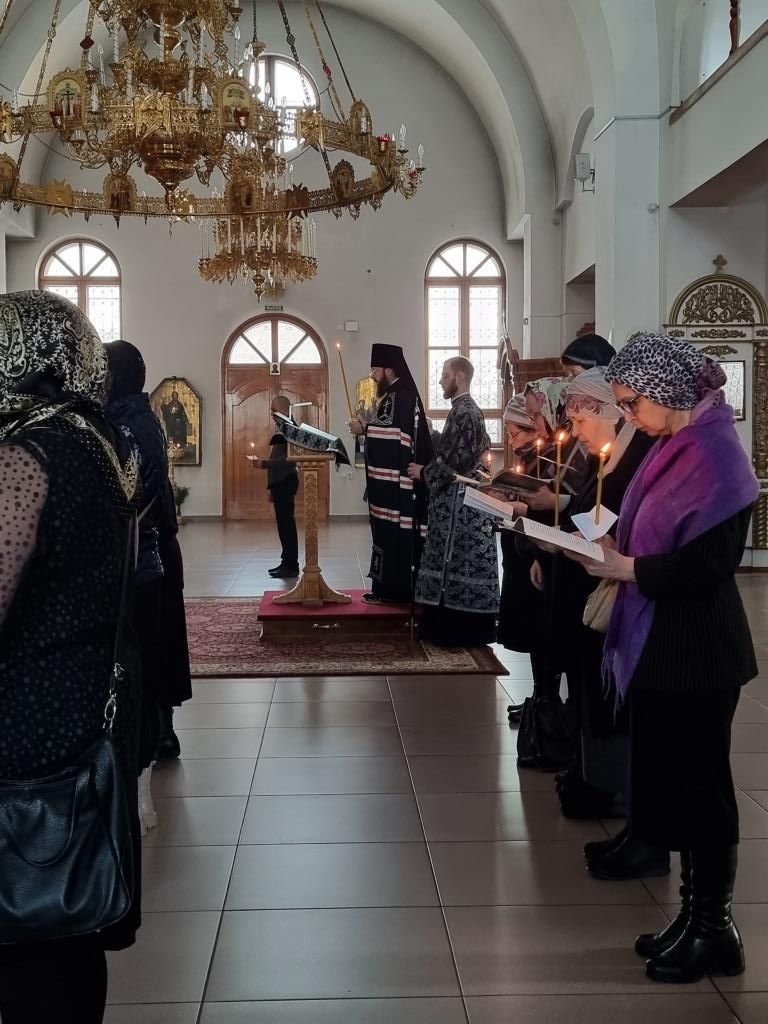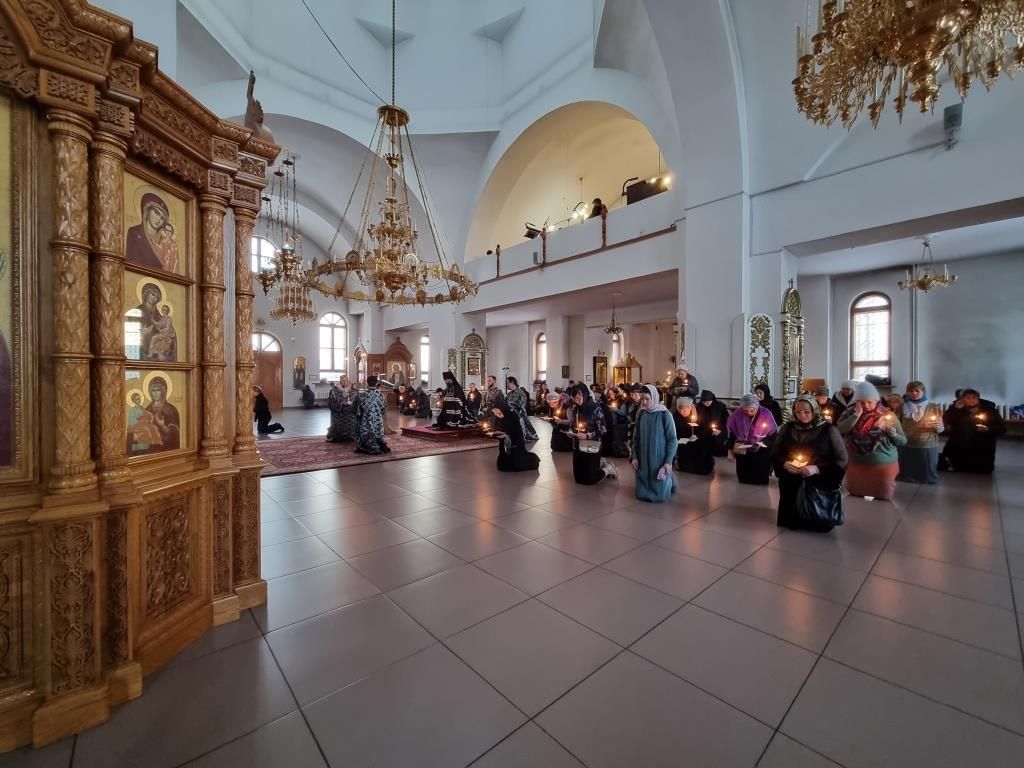 За богослужением молились клирики кафедрального собора, насельники Свято-Троицкого мужского монастыря города Усть-Каменогорска, сотрудники епархиального управления и прихожане Андреевского собора. Песнопения Великого повечерия и покаянного канона исполнял хор кафедрального собора под управлением регента Н. Романцовой.