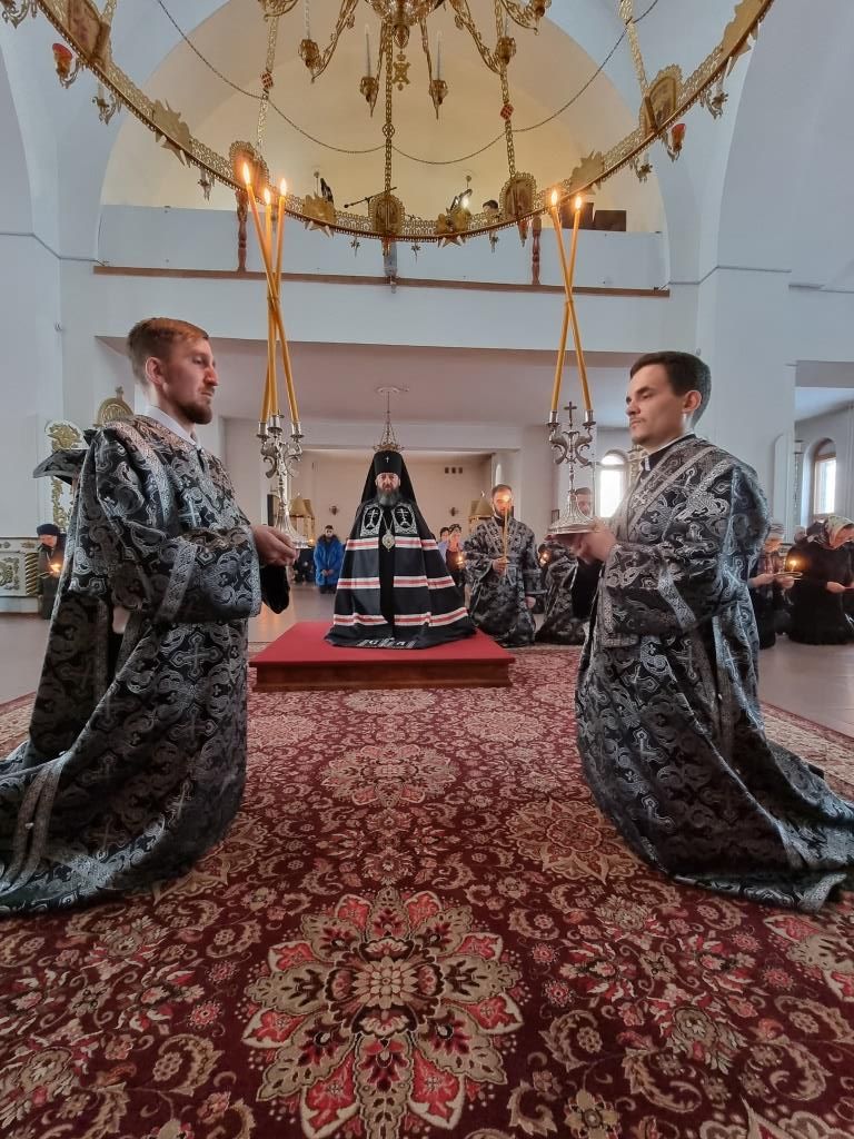 В первый день Святой Четыредесятницы в главном храме Восточного Казахстана архиепископ Усть-Каменогорский и Семипалатинский Амфилохий возглавил служение Великого повечерия с чтением первой части покаянного канона преподобного Андрея Критского.
