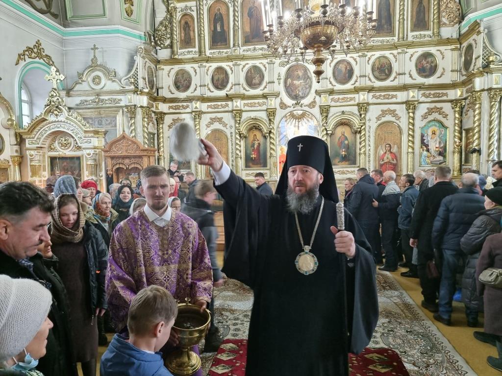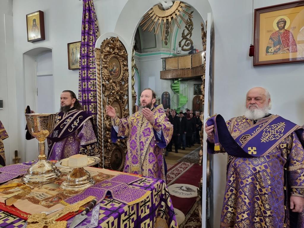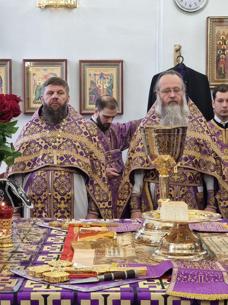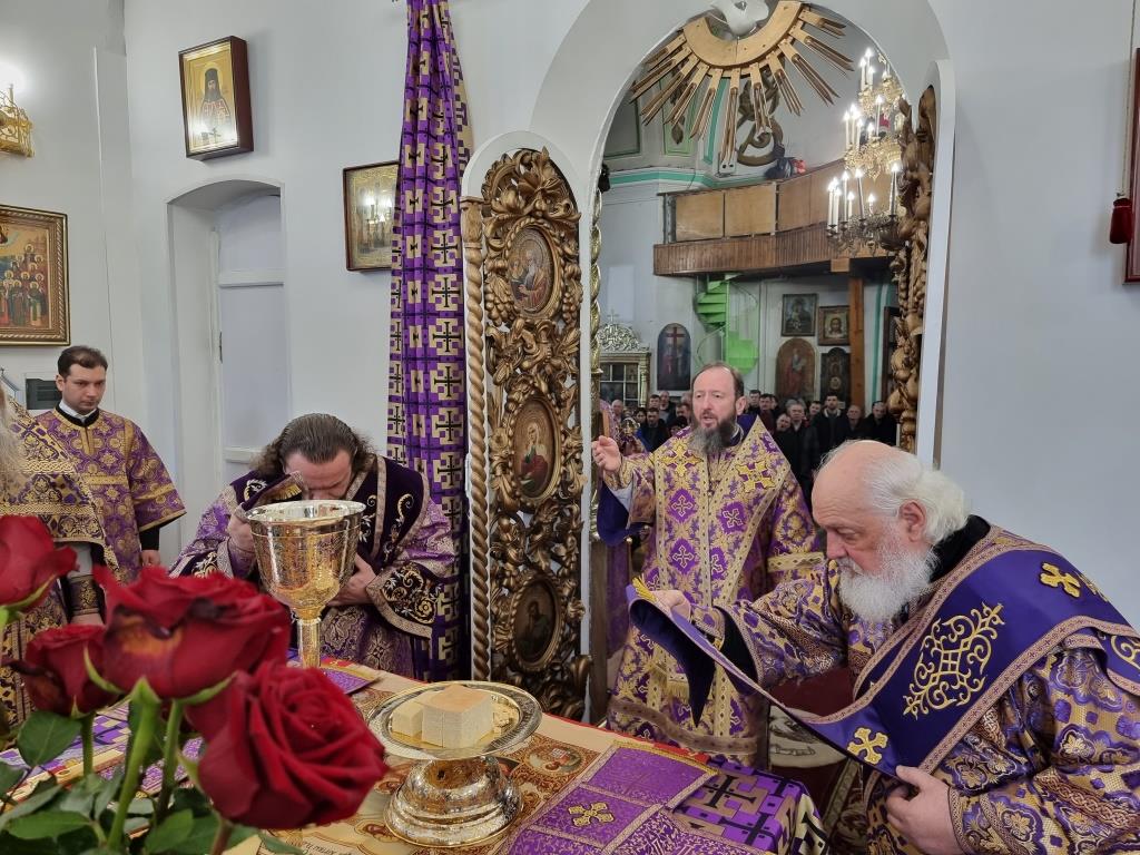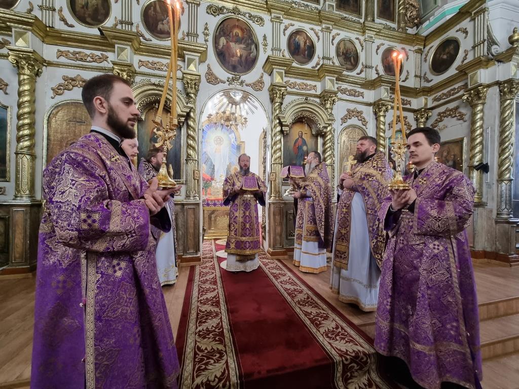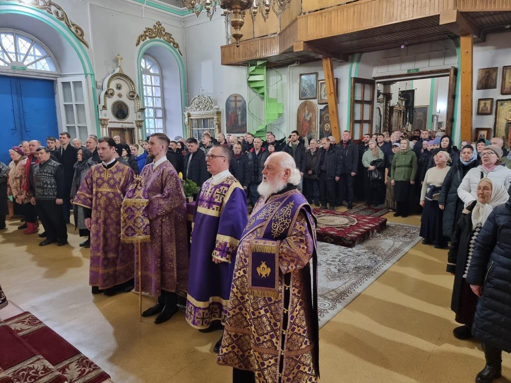 Архиепископу Амфилохию сослужили: благочинный Усть-Каменогорского церковного округа протоиерей Евгений Яганов и клирики Воскресенского собора. Диаконский чин возглавил протодиакон Андрей Дудник. Песнопения Божественной Литургии и Недели 2-ой Великого поста исполнял хор под управлением регента Ю. Хохряковой.