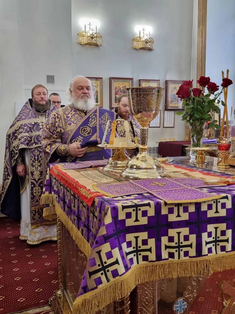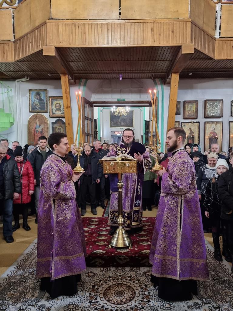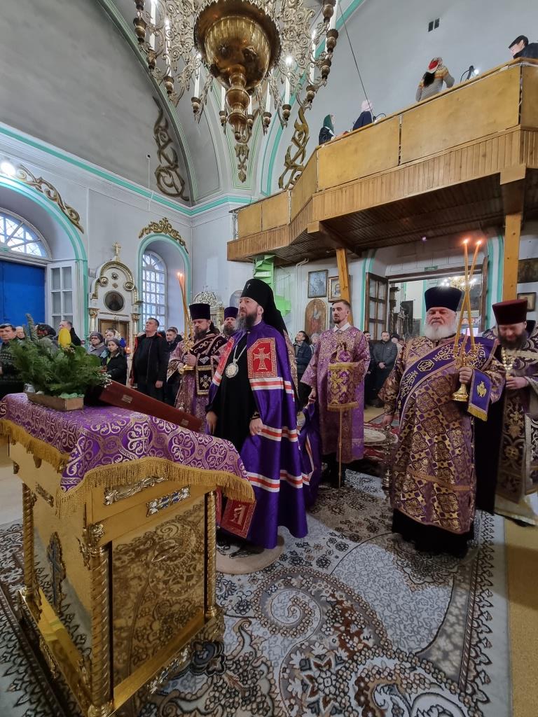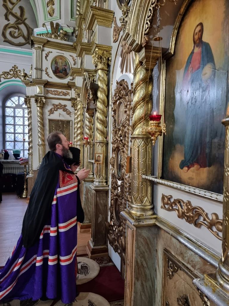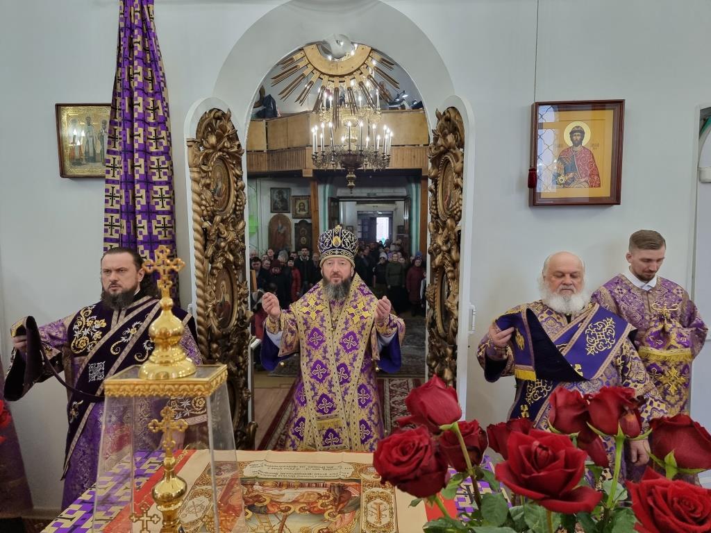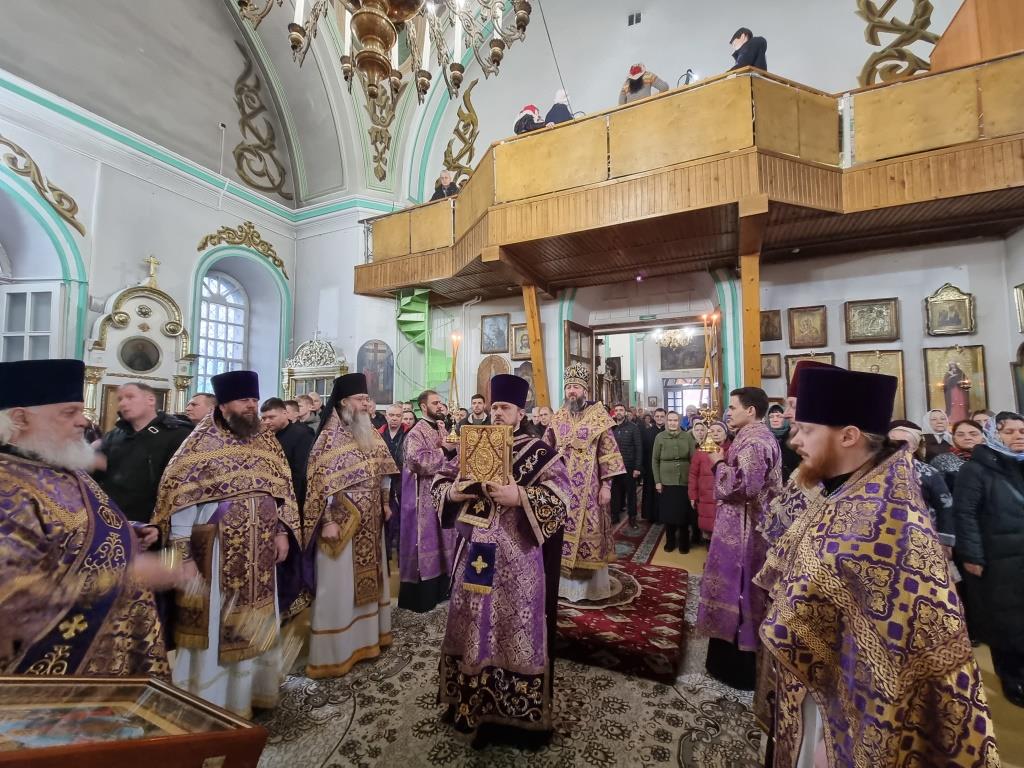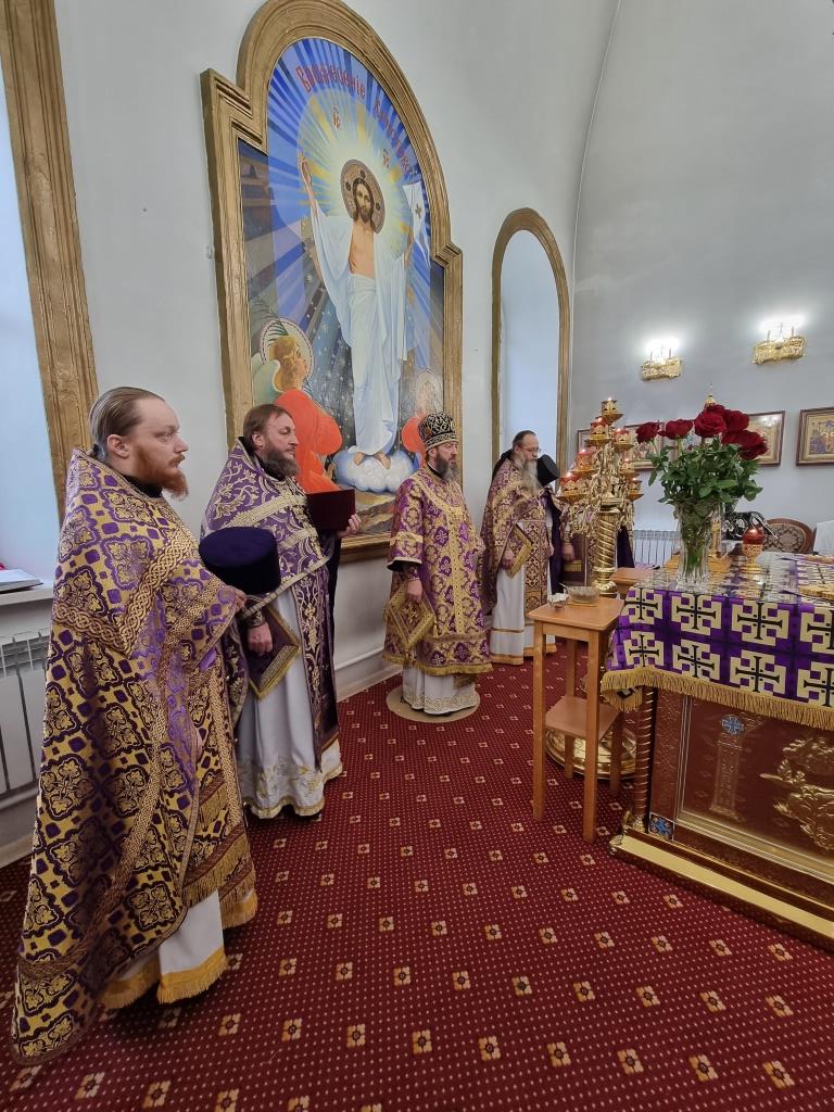 Архиепископу Амфилохию сослужили: благочинный Усть-Каменогорского церковного округа протоиерей Евгений Яганов и клирики Воскресенского собора. Диаконский чин возглавил протодиакон Андрей Дудник. Песнопения Божественной Литургии и Недели 2-ой Великого поста исполнял хор под управлением регента Ю. Хохряковой.