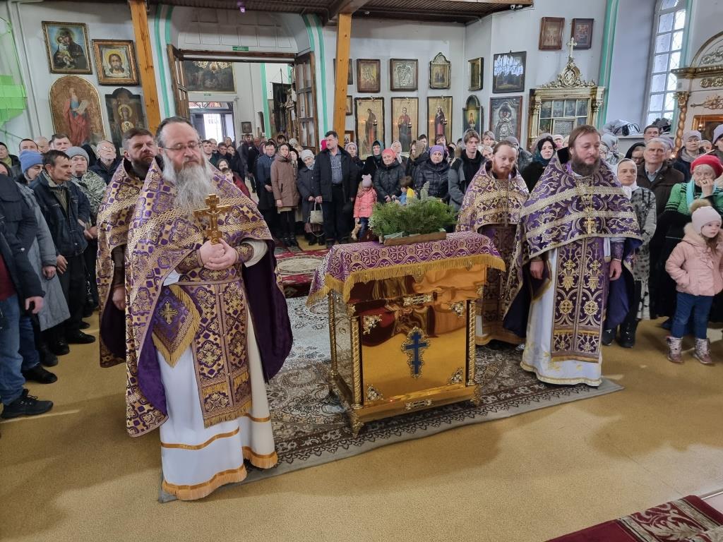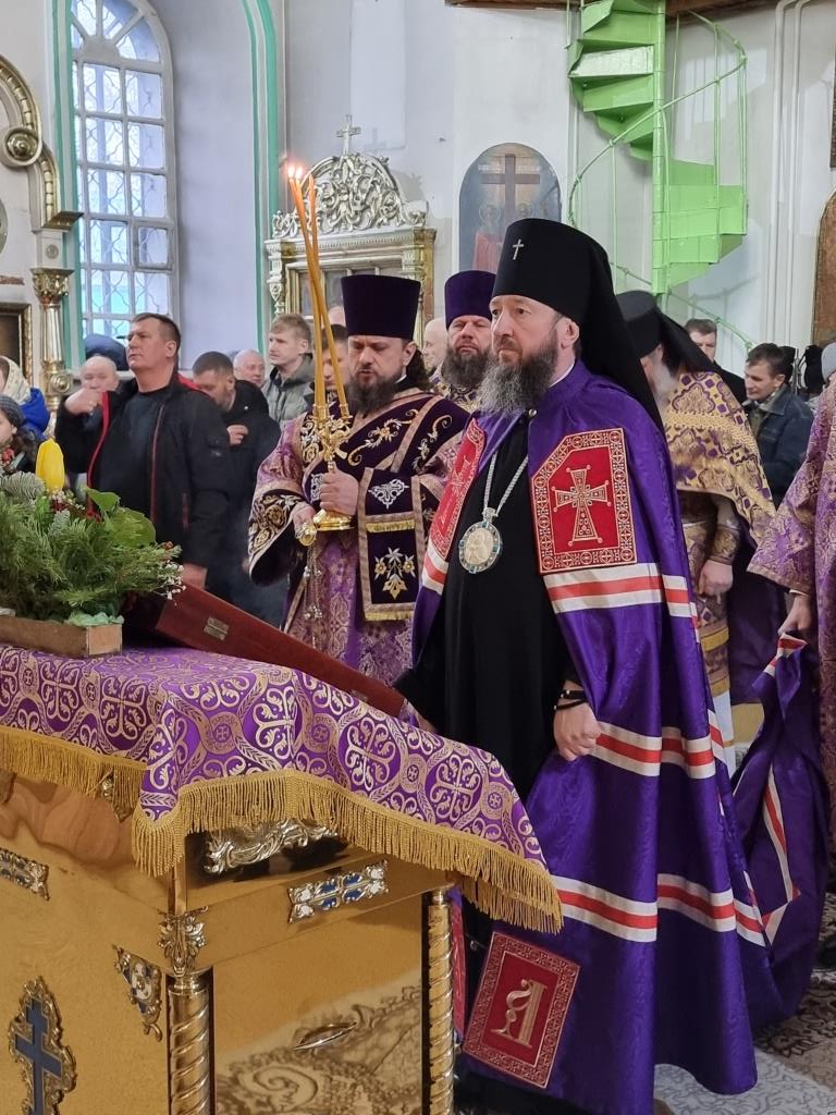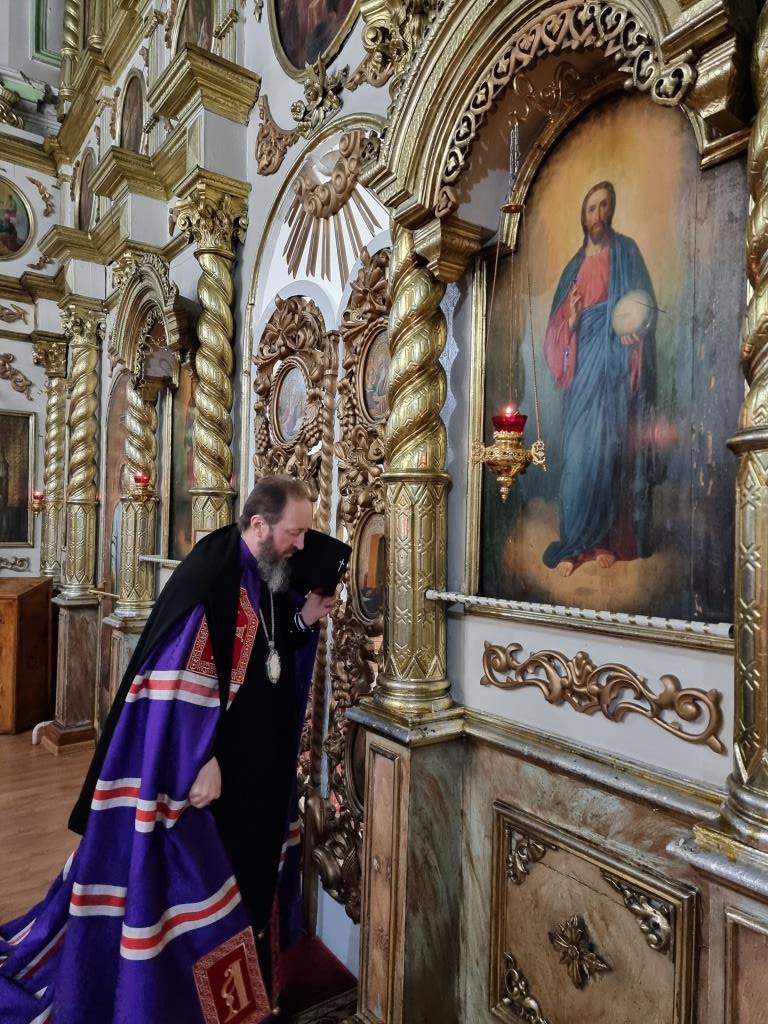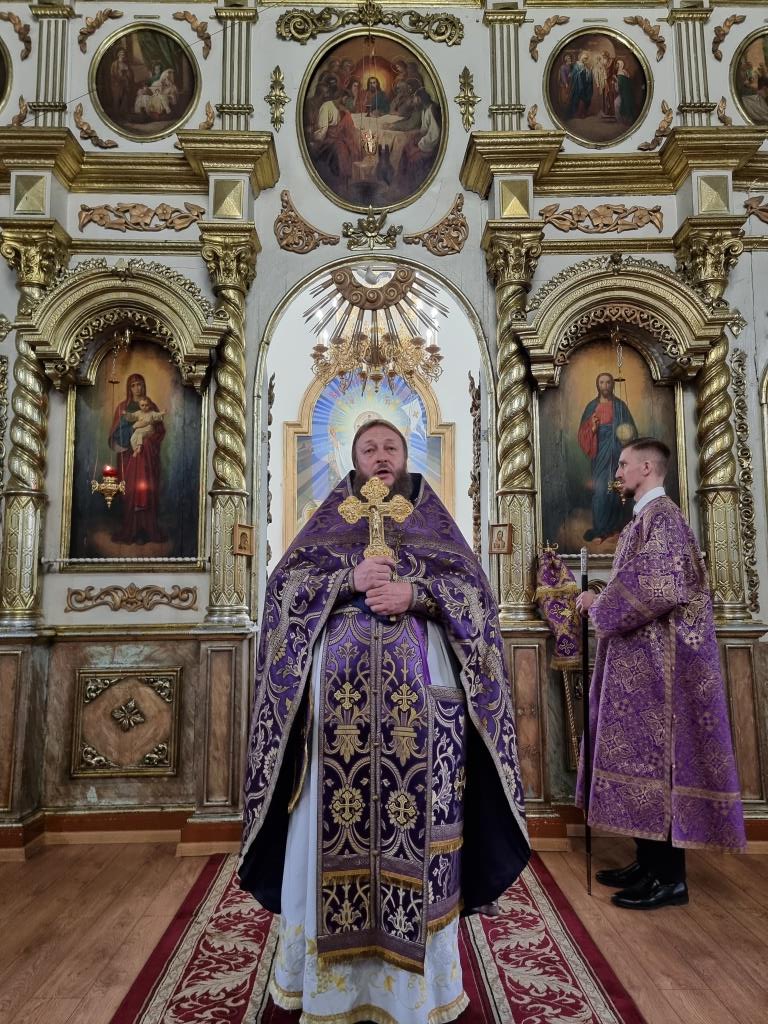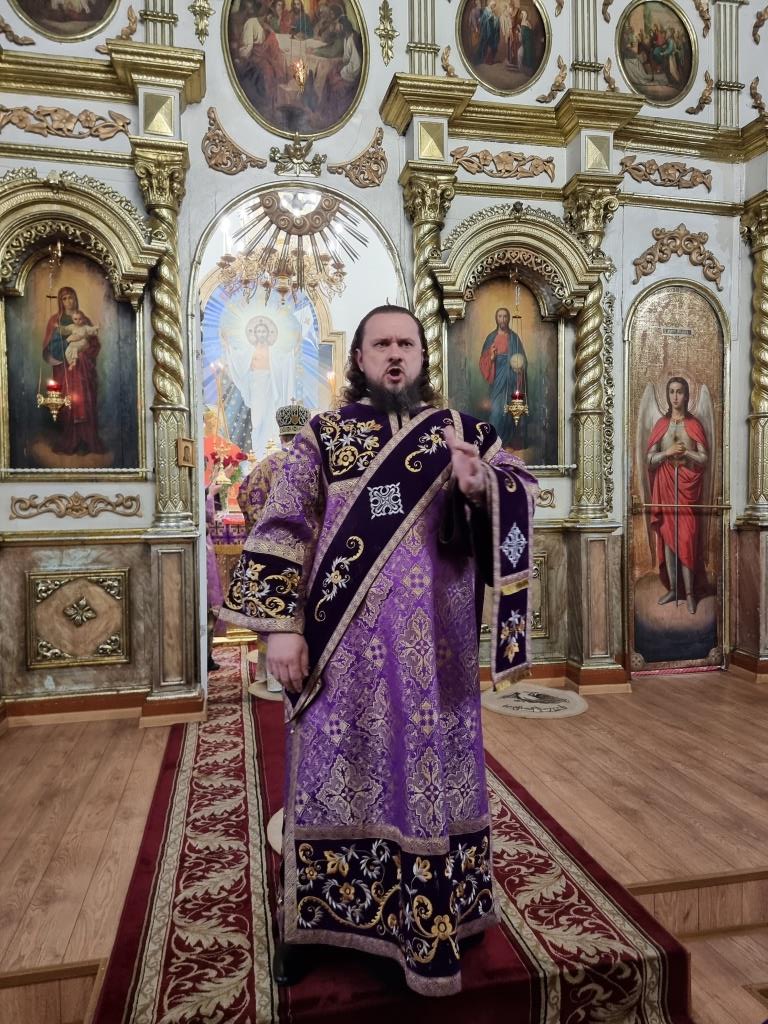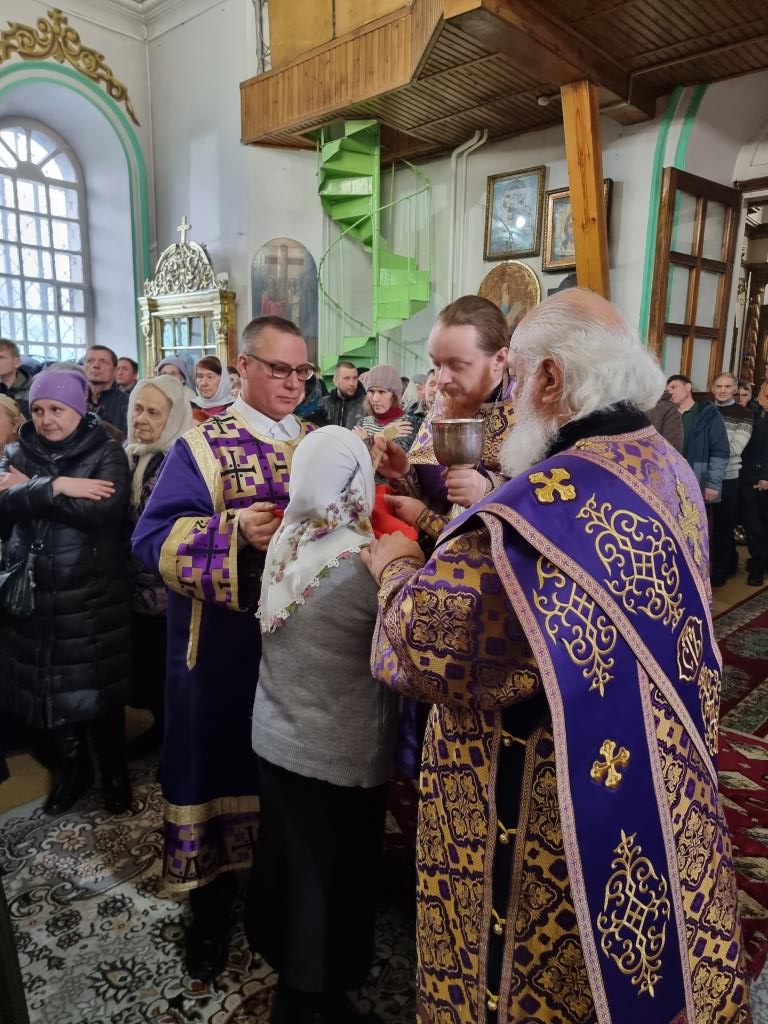 Архиепископу Амфилохию сослужили: благочинный Усть-Каменогорского церковного округа протоиерей Евгений Яганов и клирики Воскресенского собора. Диаконский чин возглавил протодиакон Андрей Дудник. Песнопения Божественной Литургии и Недели 2-ой Великого поста исполнял хор под управлением регента Ю. Хохряковой.