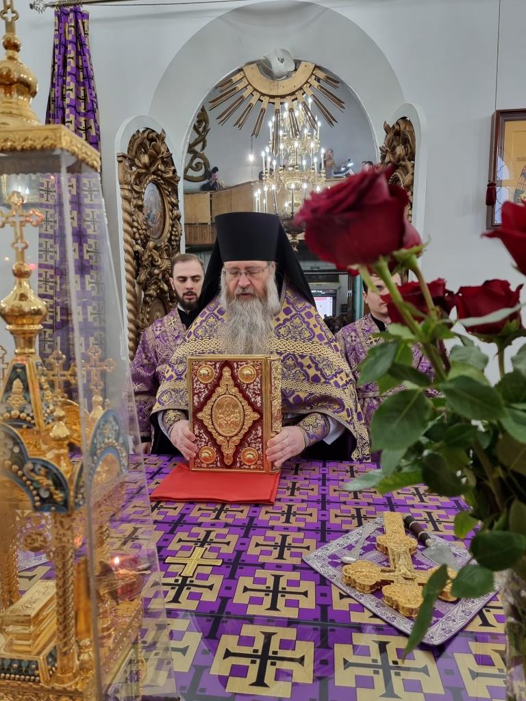 После окончания Божественной Литургии было совершено славление святителю Григорию Паламе, затем Владыка архиепископ поздравил клир и паству с праздником и обратился к православным христианам со словами проповеди.