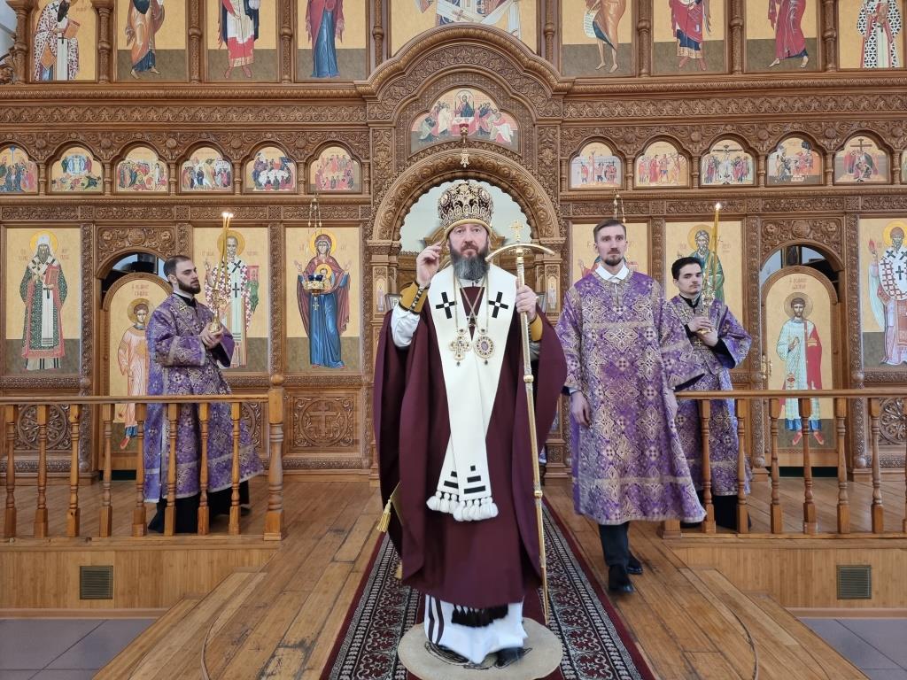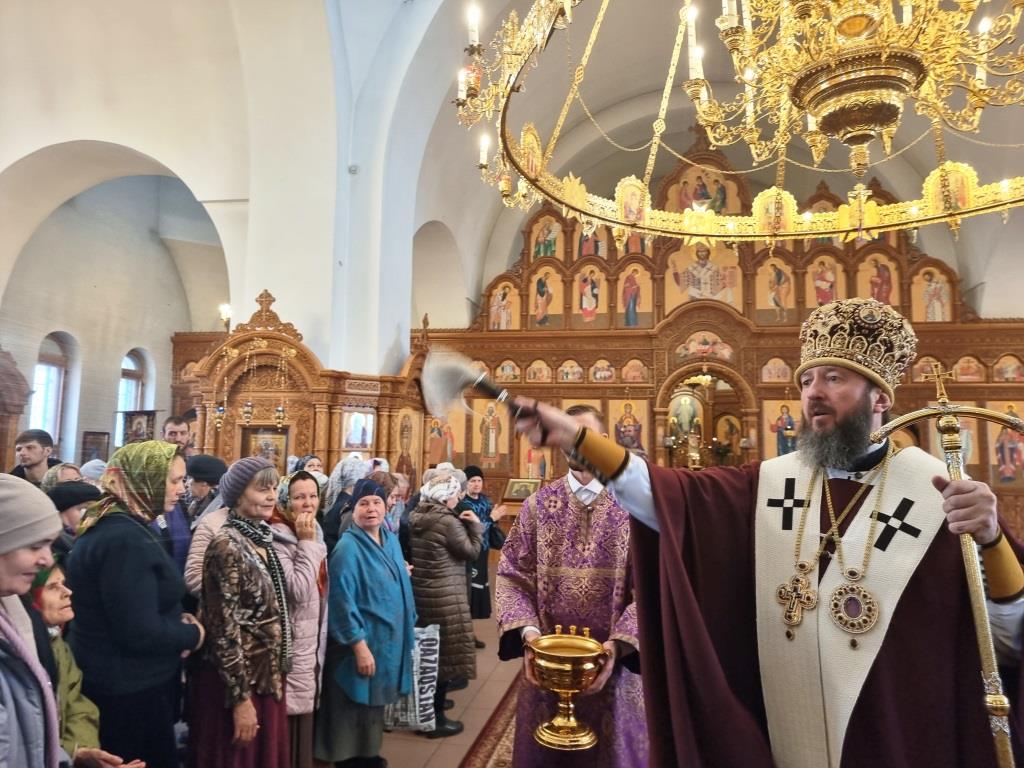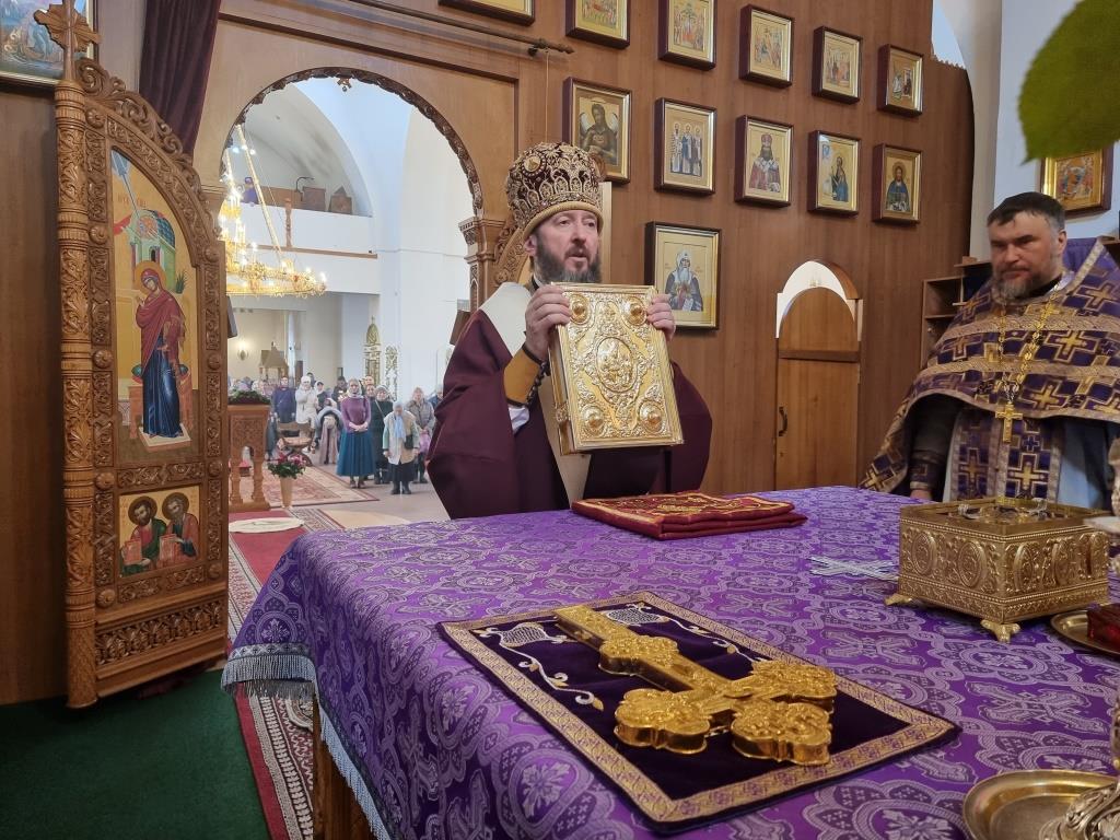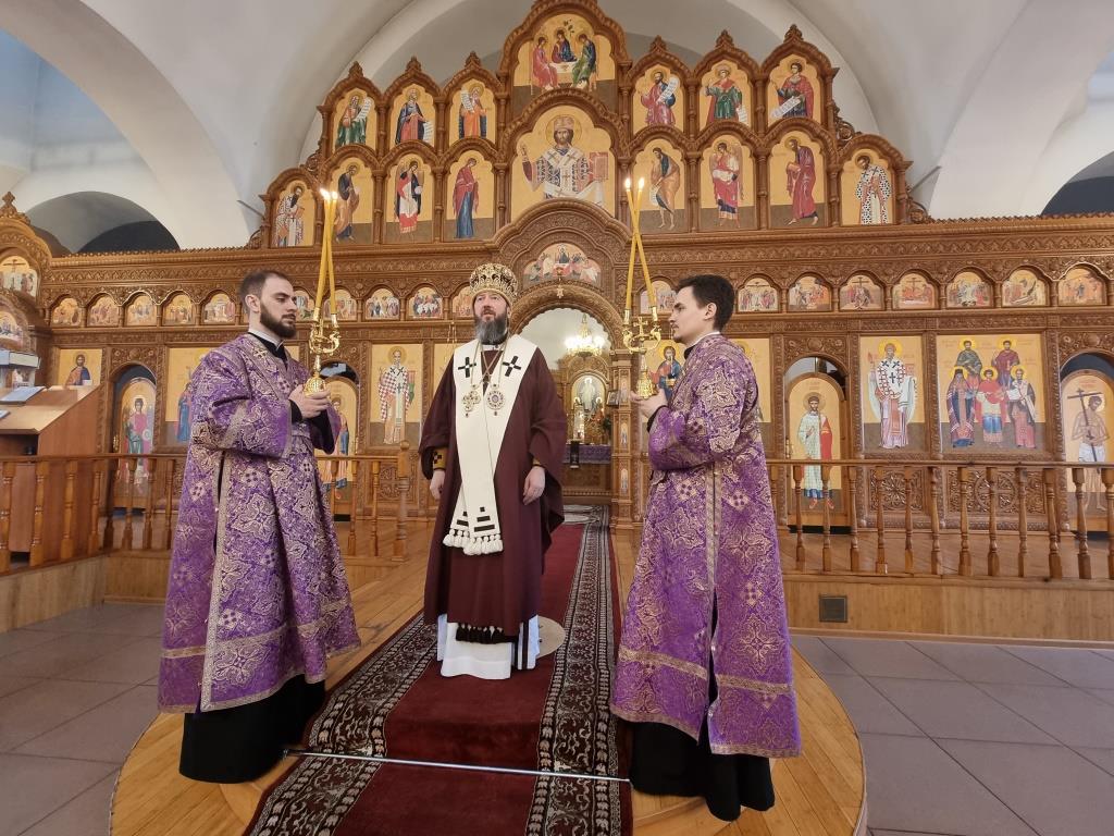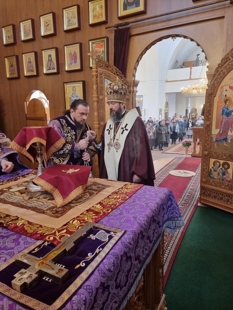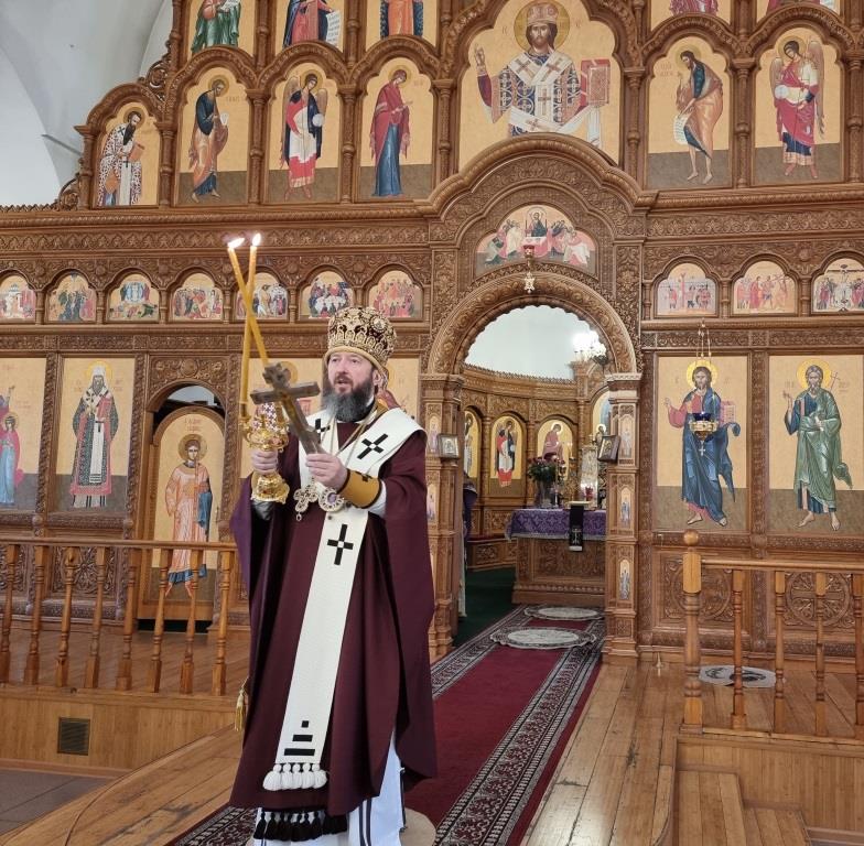 В третье воскресение Святой Четыредесятницы Управляющий Усть-Каменогорской и Семипалатинской епархией Высокопреосвященнейший архиепископ Амфилохий возглавил служение Божественной Литургии святителя Василия Великого в Андреевском кафедральном соборе города Усть-Каменогорска.