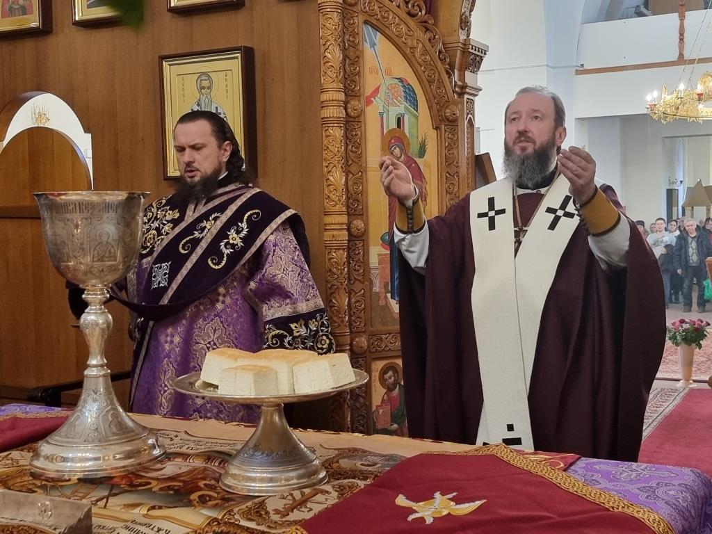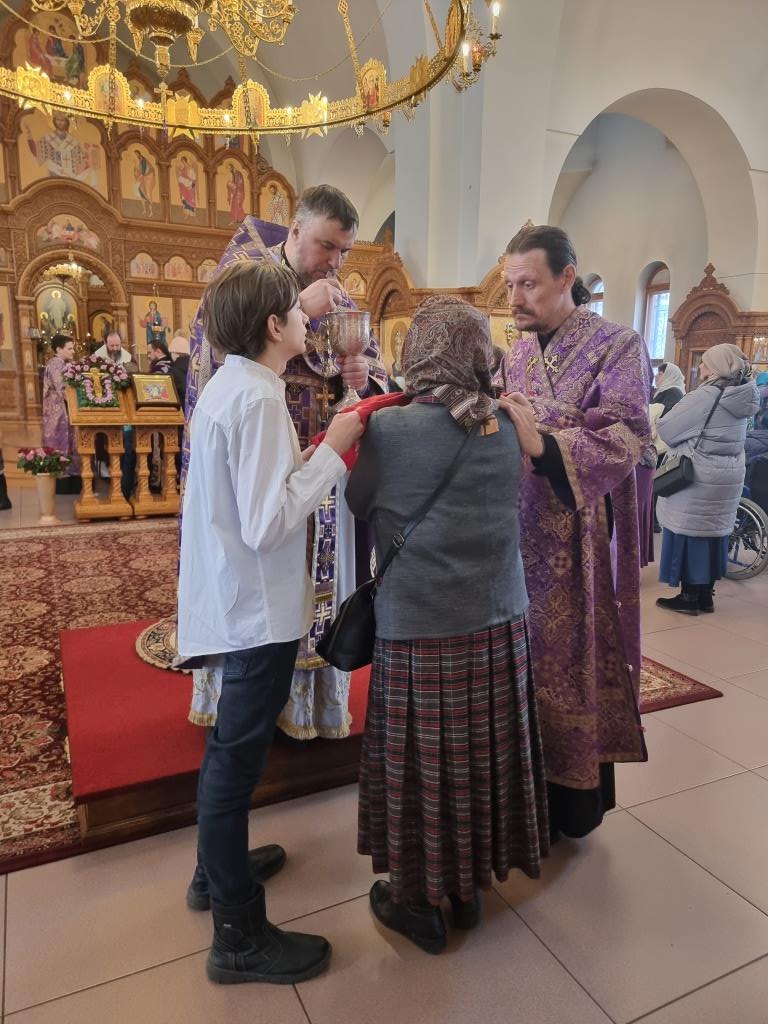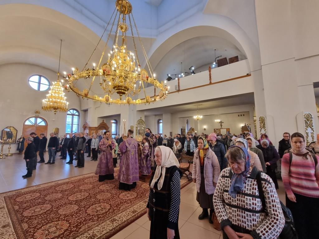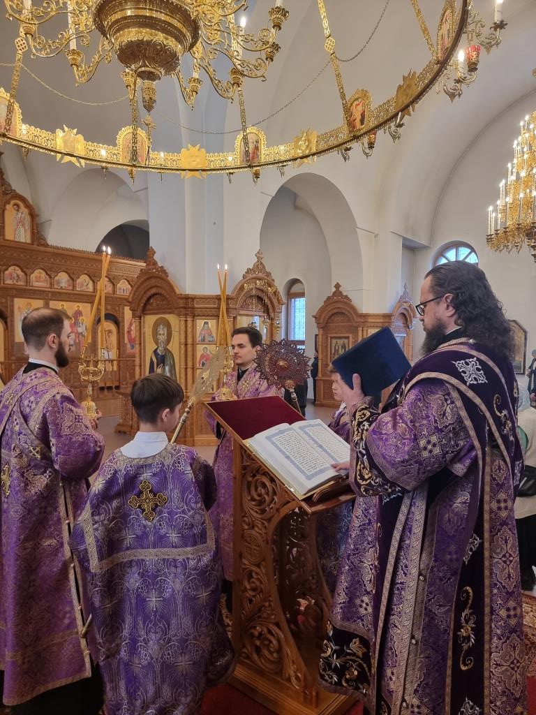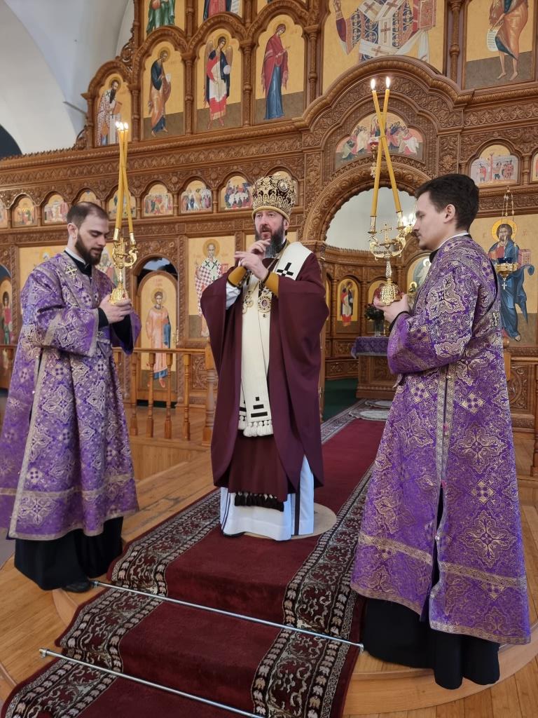 В третье воскресение Святой Четыредесятницы Управляющий Усть-Каменогорской и Семипалатинской епархией Высокопреосвященнейший архиепископ Амфилохий возглавил служение Божественной Литургии святителя Василия Великого в Андреевском кафедральном соборе города Усть-Каменогорска.