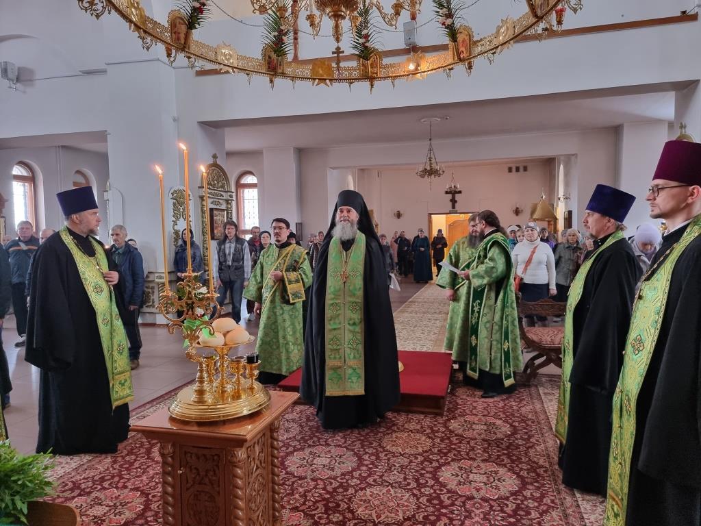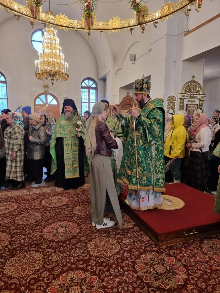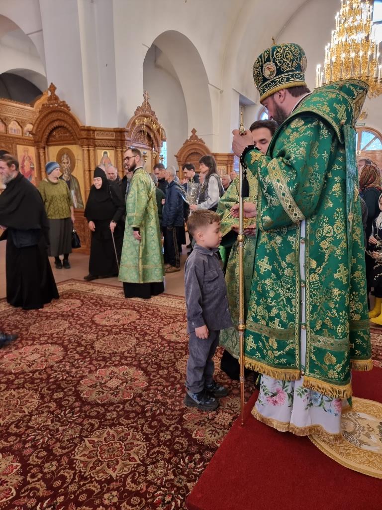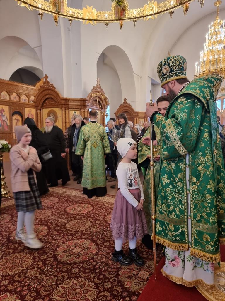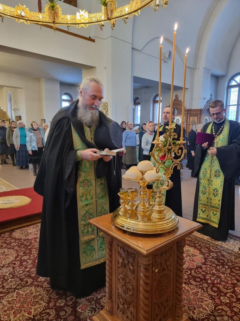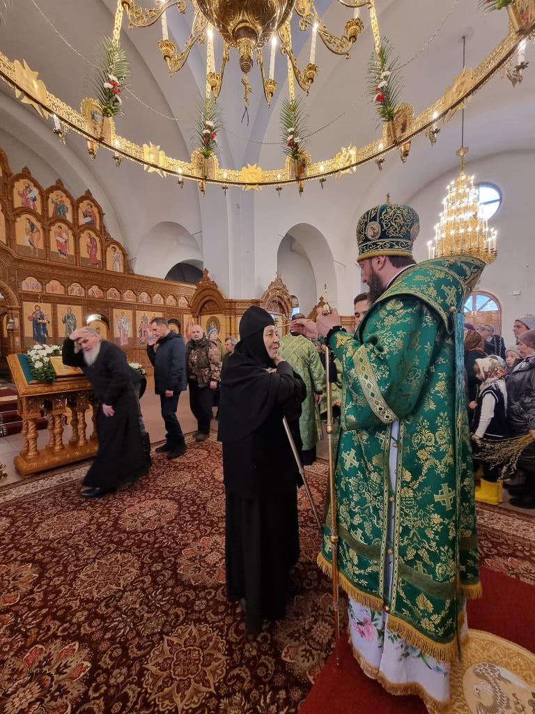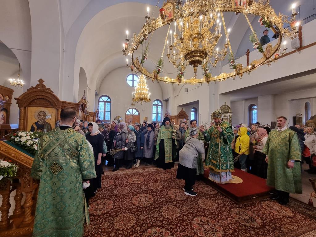 За богослужением пел хор кафедрального собора, регент Н. Романцова. На утрене, после чтения Евангельского зачала Владыка архиепископ совершил чин освящения ветвей верб и ваий. Затем Архипастырь помазал духовенство и прихожан освященным елеем.