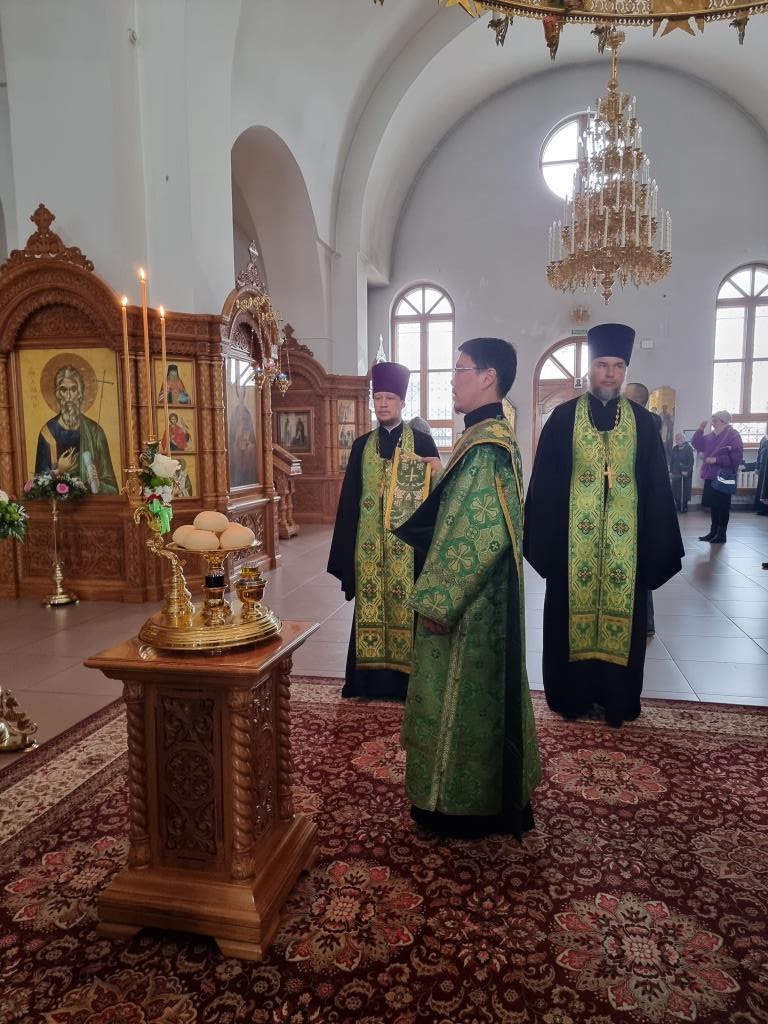 Накануне двунадесятого праздника Входа Господня в Иерусалим Высокопреосвященнейший архиепископ Усть-Каменогорский и Семипалатинский Амфилохий совершил вечернее богослужение в главном храме Рудного Алтая – кафедральном соборе во имя святого апостола Андрея Первозванного города Усть-Каменогорска. Владыке Амфилохию сослужили ключарь кафедрального собора иеромонах Никодим (Авдеев), клирики собора иерей Виталий Адаменков, иерей Алексий Клепиков, иерей Роман Подрезов, иерей Константин Дьяков, секретарь епархии диакон Илия Кван, протодиакон Георгий Засыпкин, протодиакон Андрей Дудник.