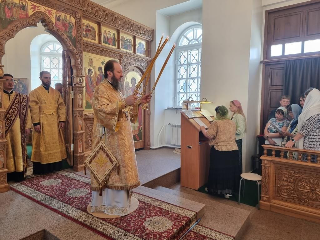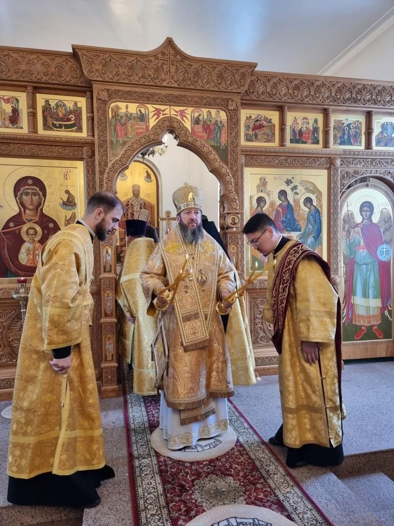 Его Высокопреосвященство, Высокопреосвященнейший Амфилохий, архиепископ Усть-Каменогорский и Семипалатинский возглавил Божественную литургию в Троицком храме города Усть-Каменогорска.