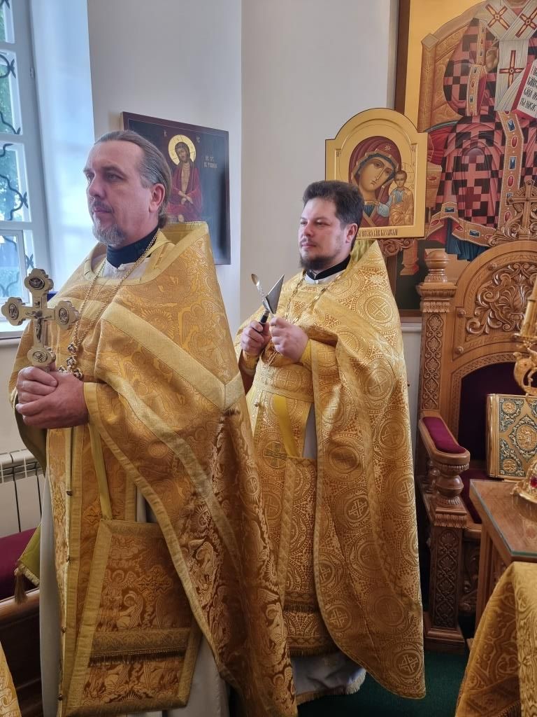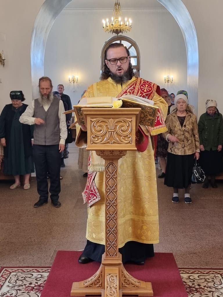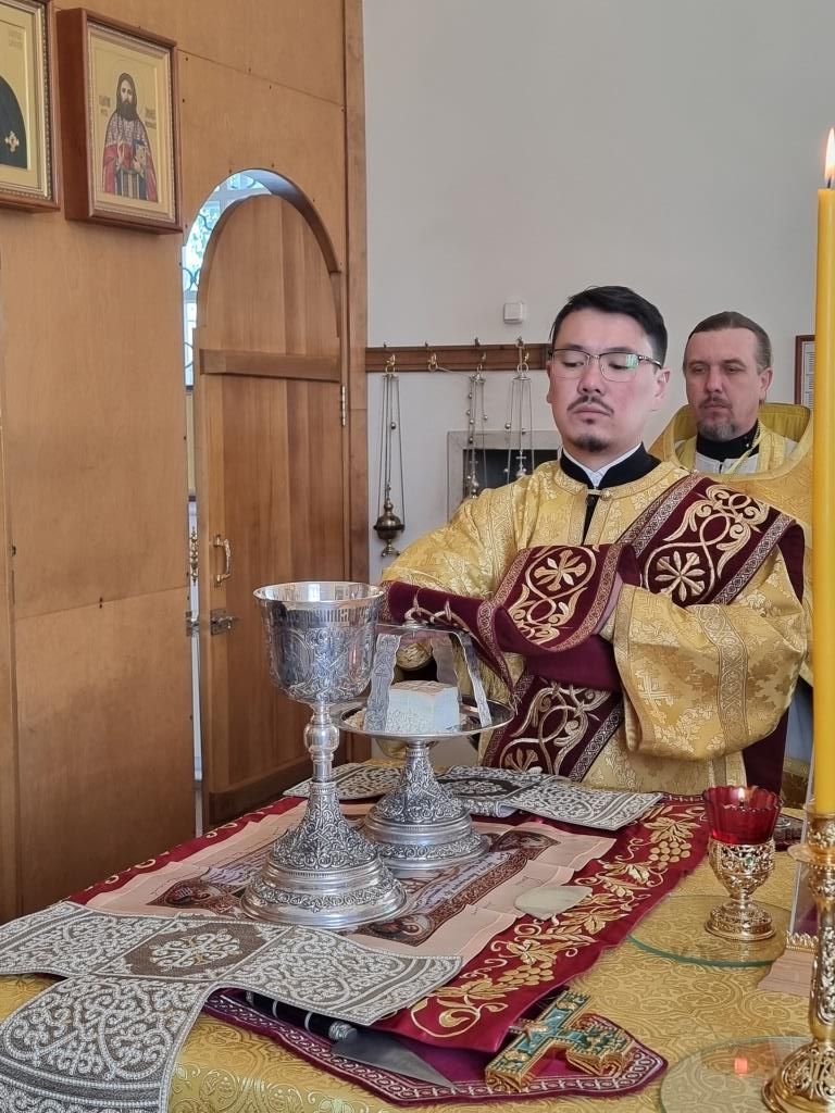 Его Высокопреосвящентсву сослужили: духовник Свято-Троицкого мужского монастыря города Усть-Каменогорска иеромонах Никодим (Авдеев); благочинный Усть-Каменогорского церковного округа иеромонах Силуан (Магилев), клирик Андреевского кафедрального собора иерей Алексий Клепиков, секретарь Усть-Каменогорской епархии диакон Илья Кван, протодиакон Андрей Дудник.