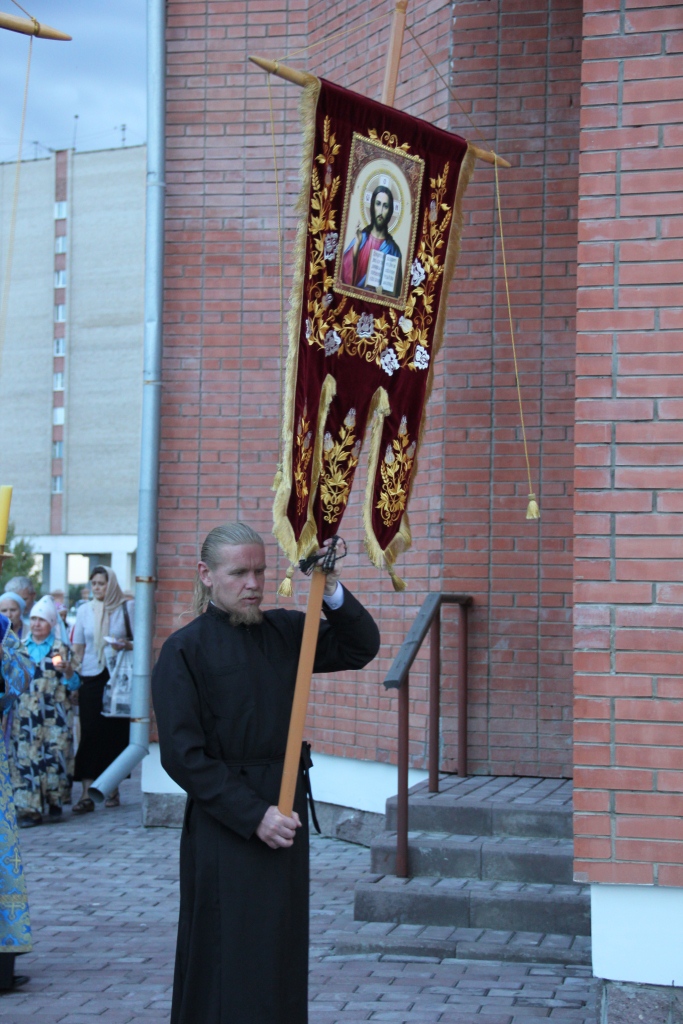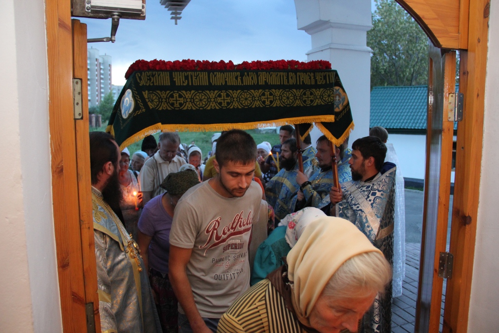 На Великом славословии, во время пения Трисвятаго, Архипастырь, духовенство, и все прихожане прошли крестным ходом со Святой Плащаницей вокруг кафедрального собора. По окончании торжественного шествия все молящиеся, вернувшись в храм, под пение особых стихир были помазаны освященным елеем.