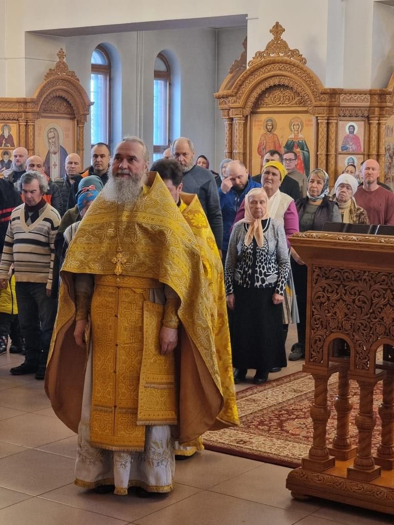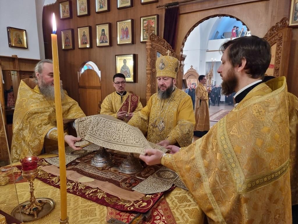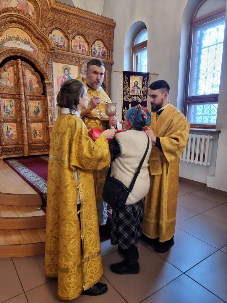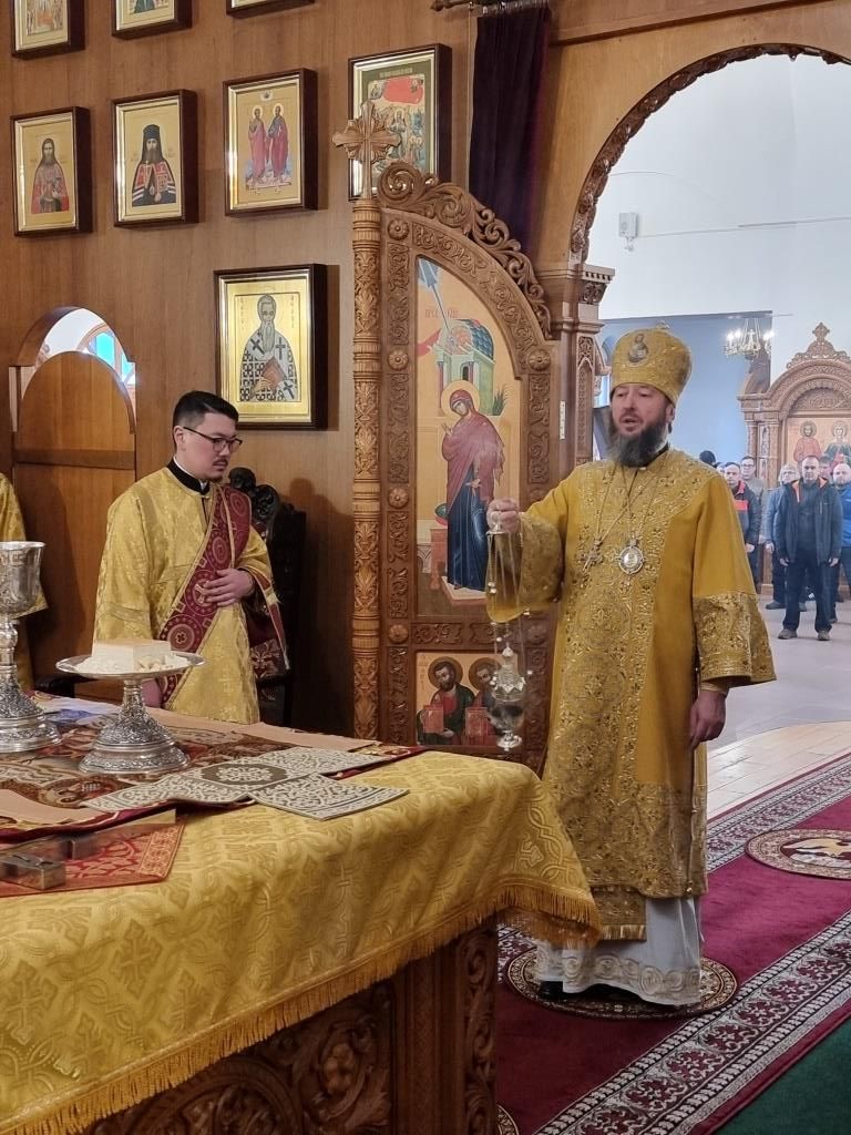 В храме молились и причащались Святых Христовых Таин сотрудники епархиального управления, преподаватели и воспитанники Центральной воскресной школы, насельники Свято-Троицкого мужского монастыря города Усть-Каменогорска, прихожане кафедрального собора. Хор под управлением регента Н. Романцовой исполнял песнопения Божественной Литургии. Перед причастием мирян проповедовал иеромонах Силуан (Магилев).