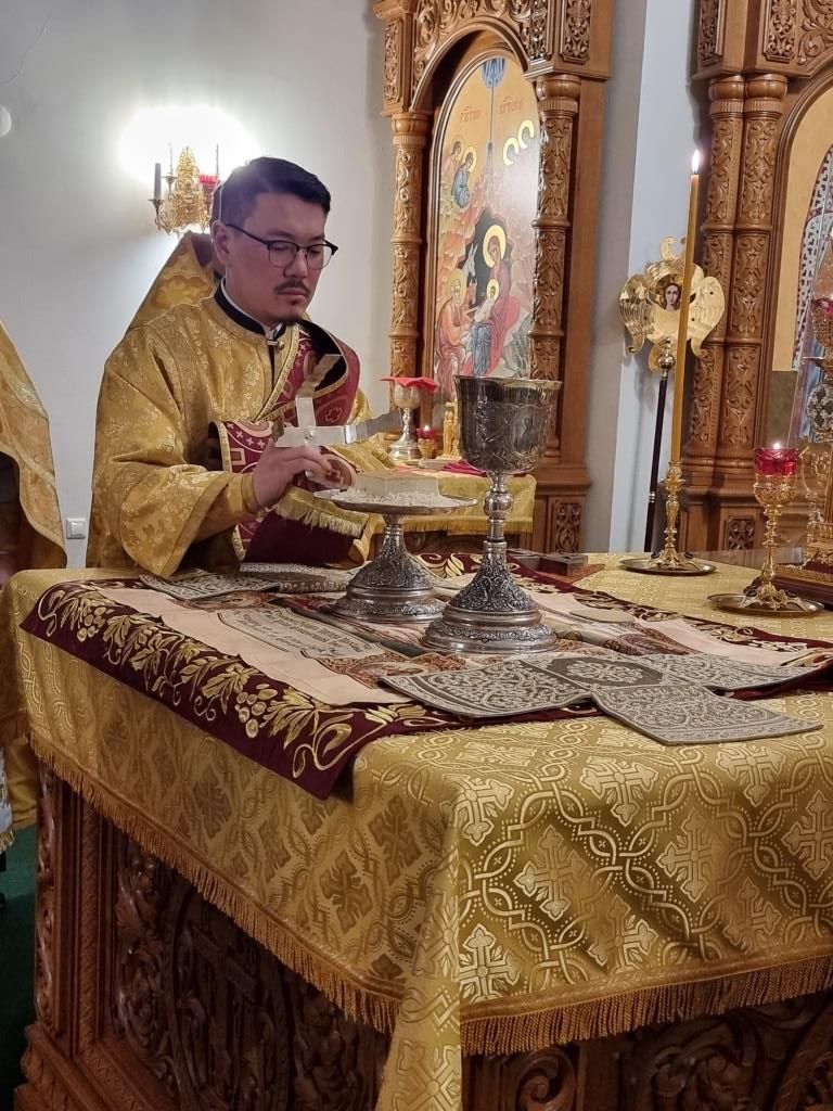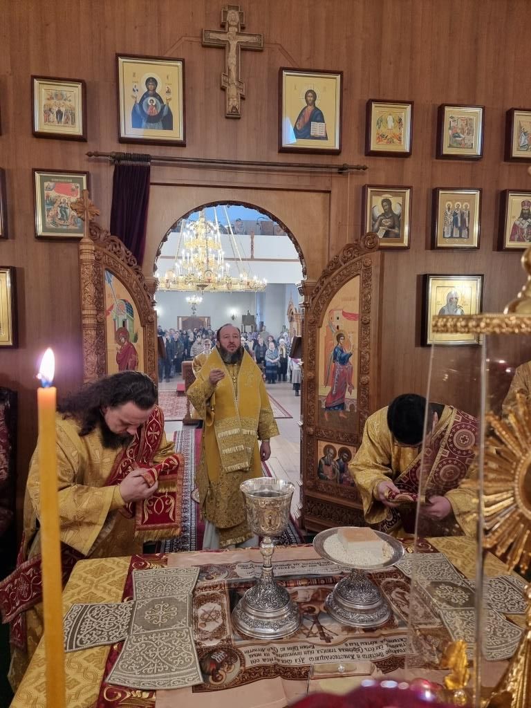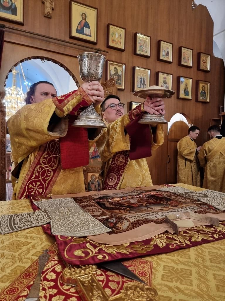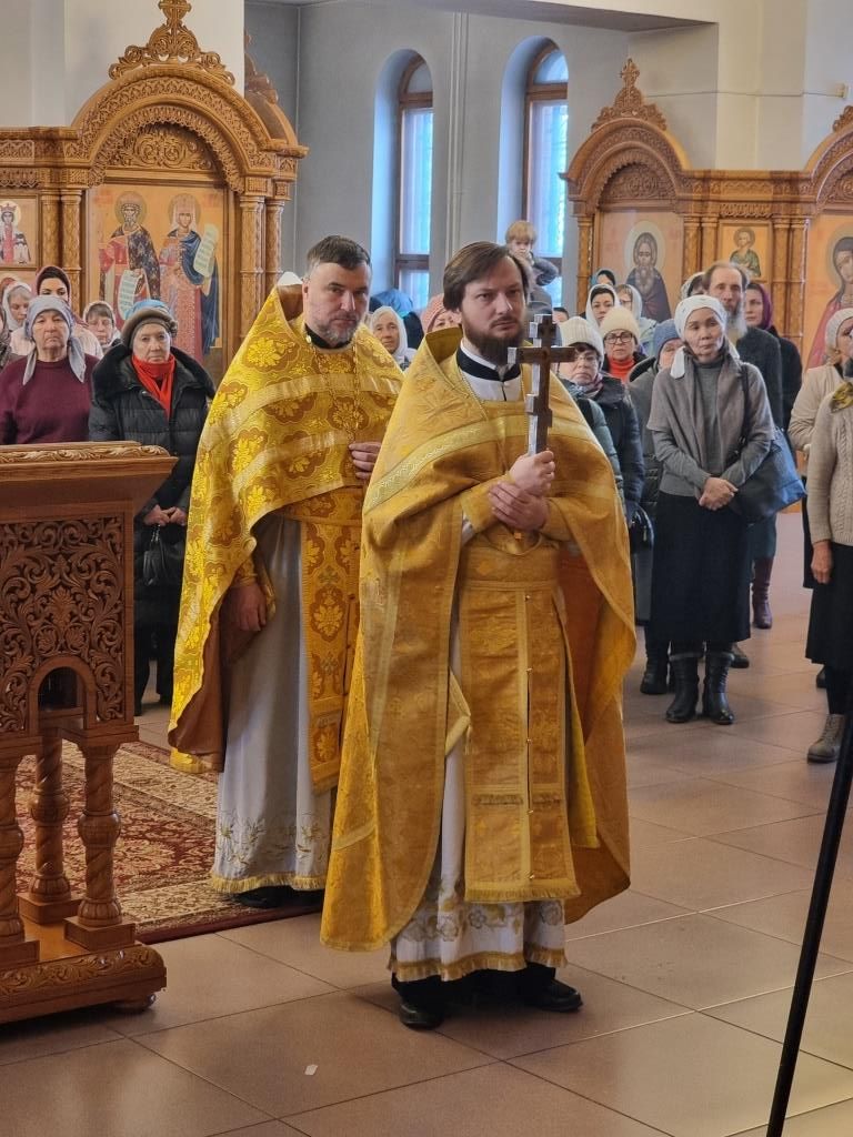 В храме молились и причащались Святых Христовых Таин сотрудники епархиального управления, преподаватели и воспитанники Центральной воскресной школы, насельники Свято-Троицкого мужского монастыря города Усть-Каменогорска, прихожане кафедрального собора. Хор под управлением регента Н. Романцовой исполнял песнопения Божественной Литургии. Перед причастием мирян проповедовал иеромонах Силуан (Магилев).