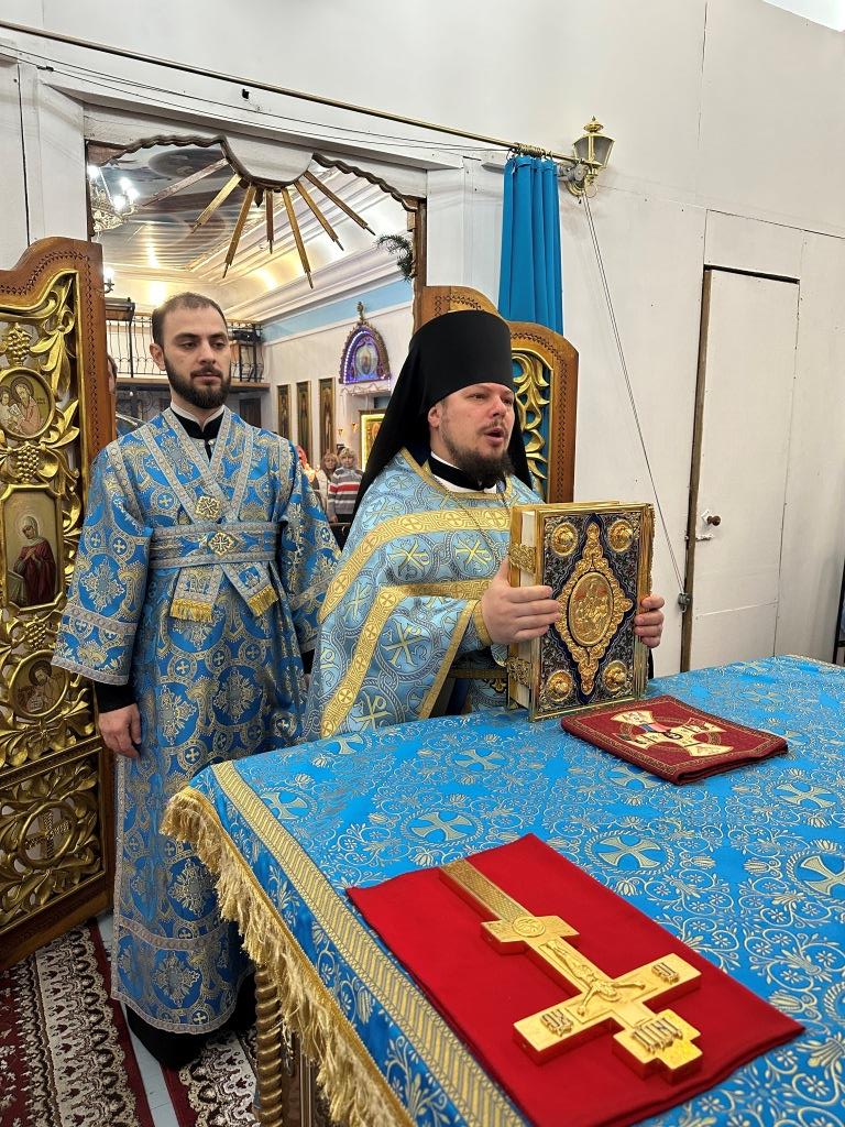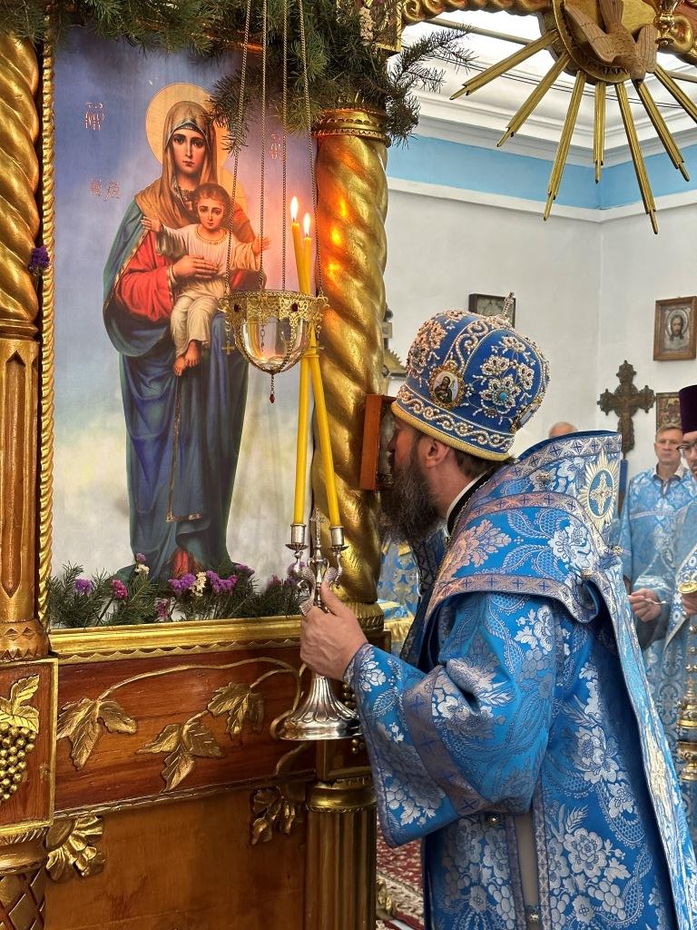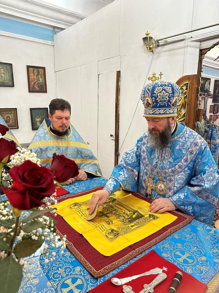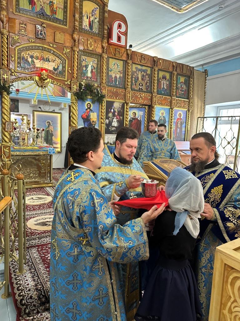 Песнопения праздника Рождества Пресвятой Богородицы и Божественной Литургии исполнял приходской хор. За архипастырским богослужением молились прихожане и паломники Богородице- Рождественского храма. После заамвонной молитвы архиепископ Амфилохий с духовенством и молящимися совершил славление Пресвятой Богородице перед праздничной иконой.