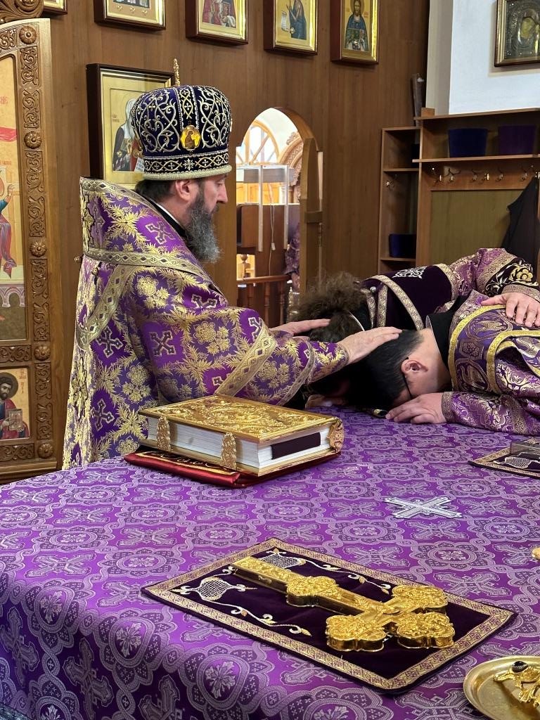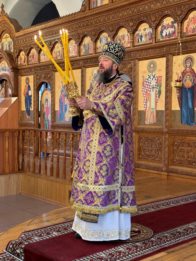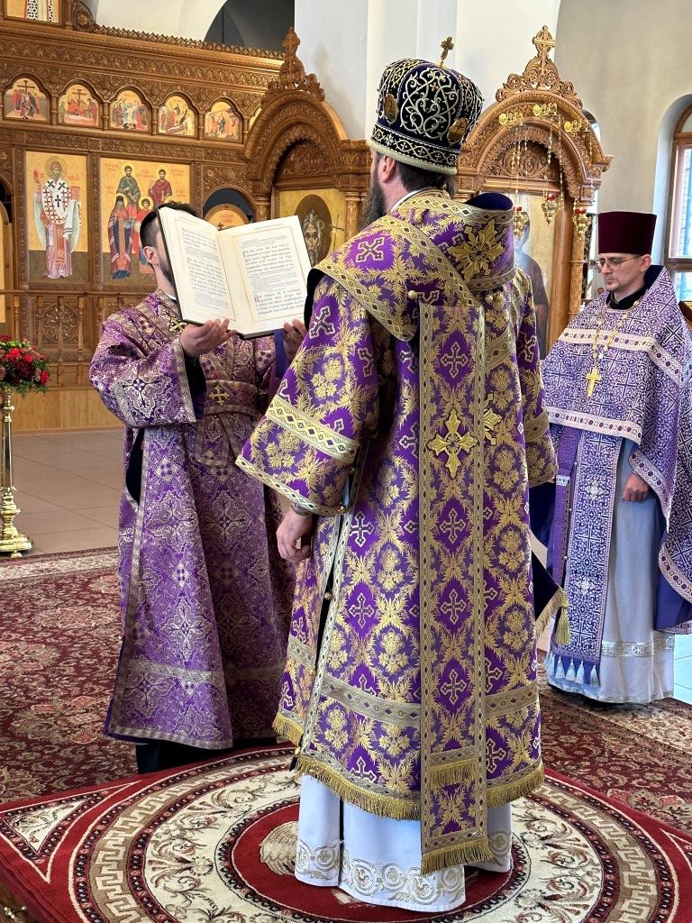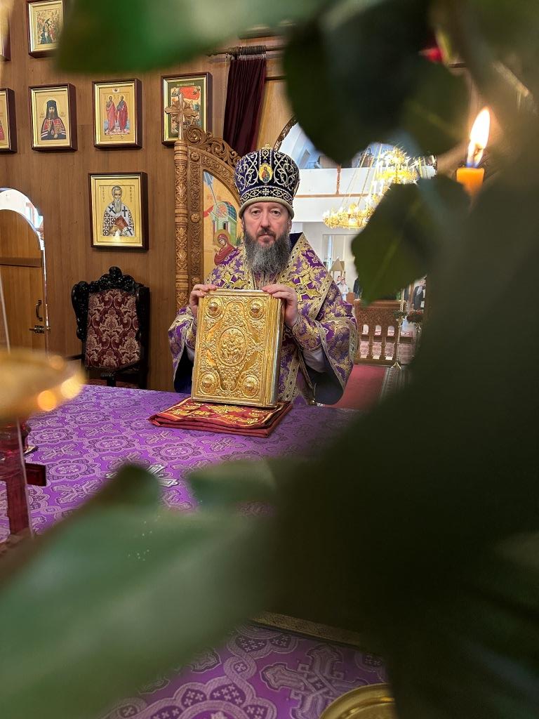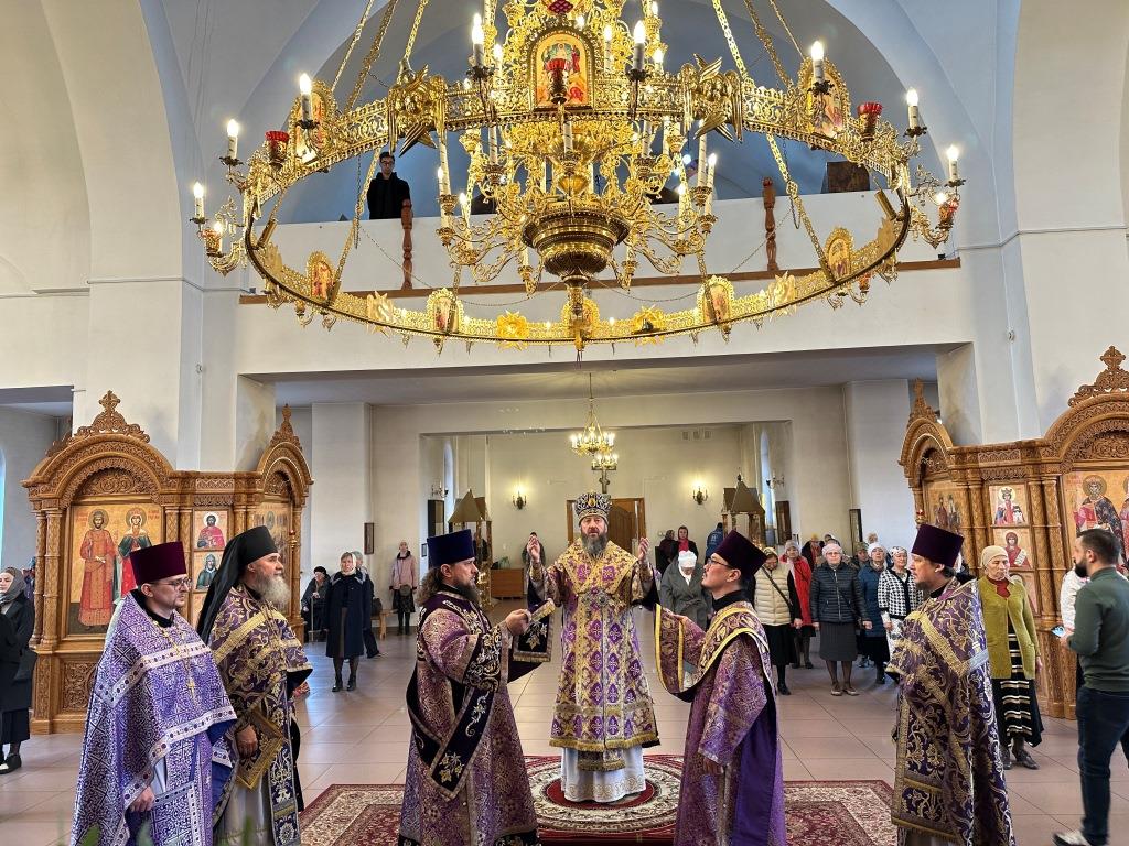 Его Высокопреосвященству сослужили: ключарь кафедрального собора иеромонах Никодим (Авдеев), клирики собора иерей Роман Подрезов и иерей Константин Дьяков, протодиакон Андрей Дудник, секретарь епархии диакон Илия Кван.