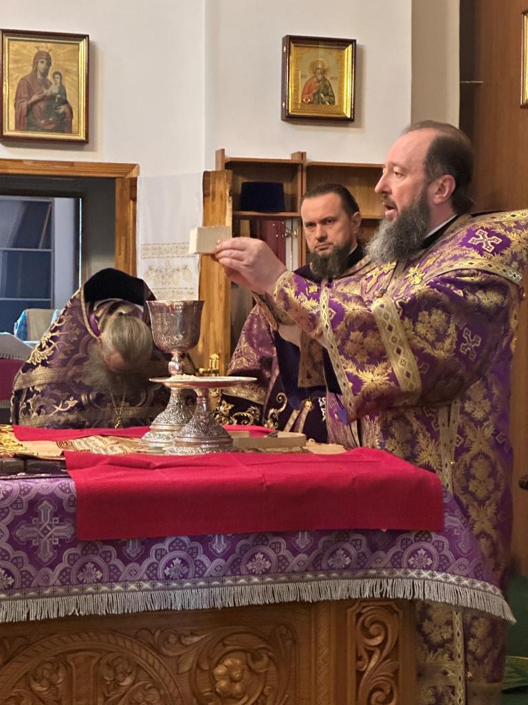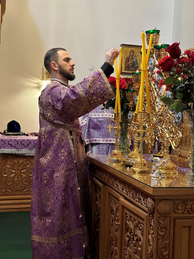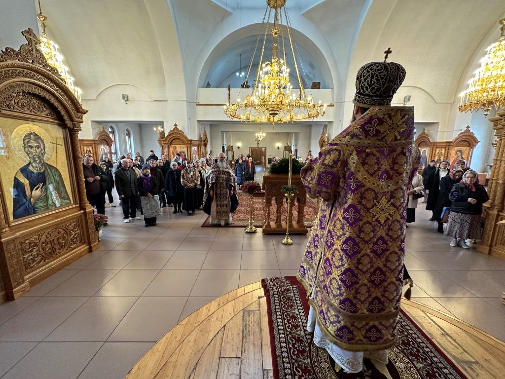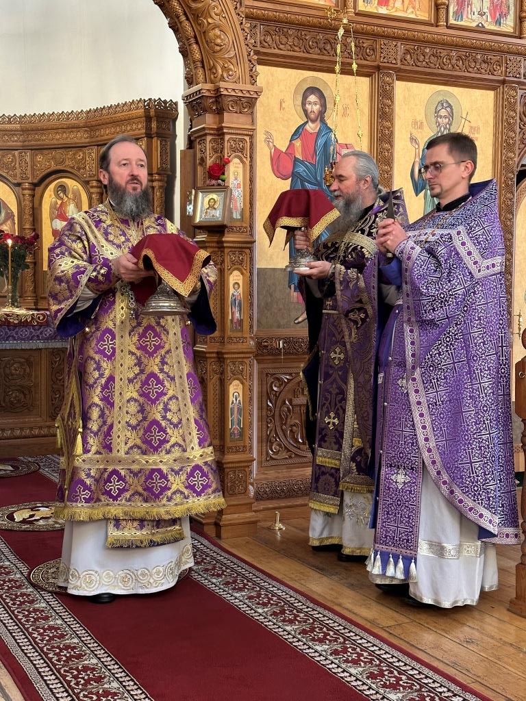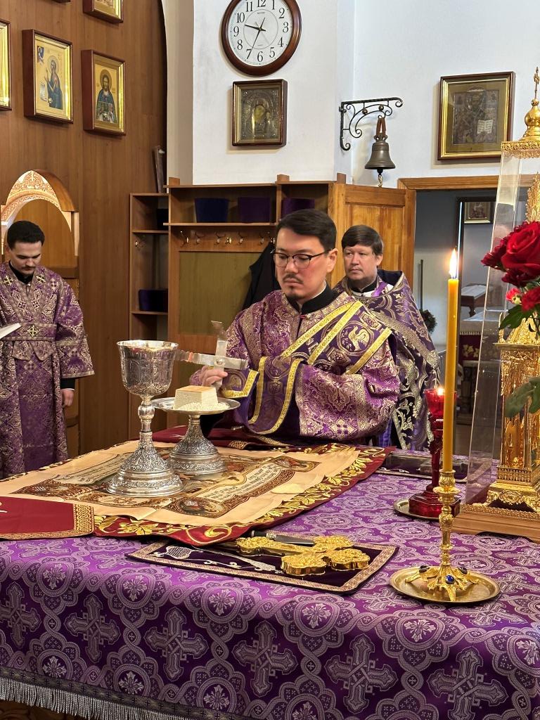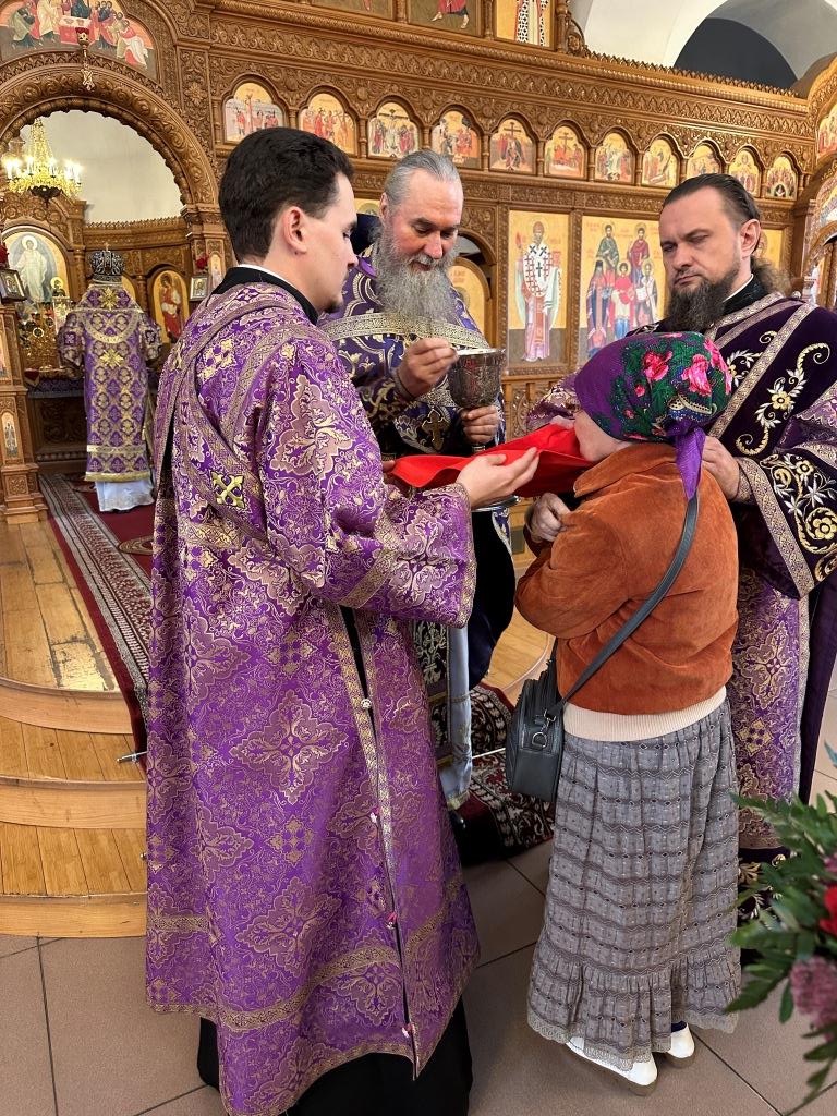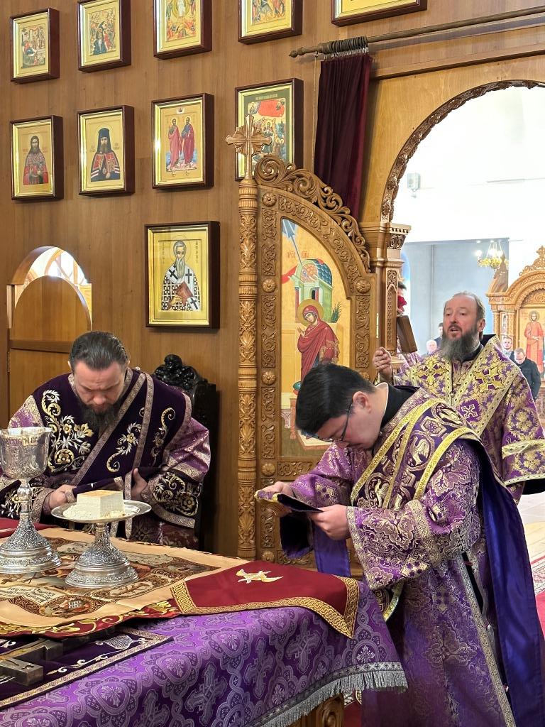За богослужением пел хор Андреевского собора под управлением регента Н. Романцовой. В храме молились и причащались Христовых Таин прихожане и паломники Андреевского кафедрального собора, насельники Свято-Троицкого мужского монастыря города Усть-Каменогорска и сотрудники епархиального управления. Перед причастием мирян проповедовал священник Роман Подрезов.