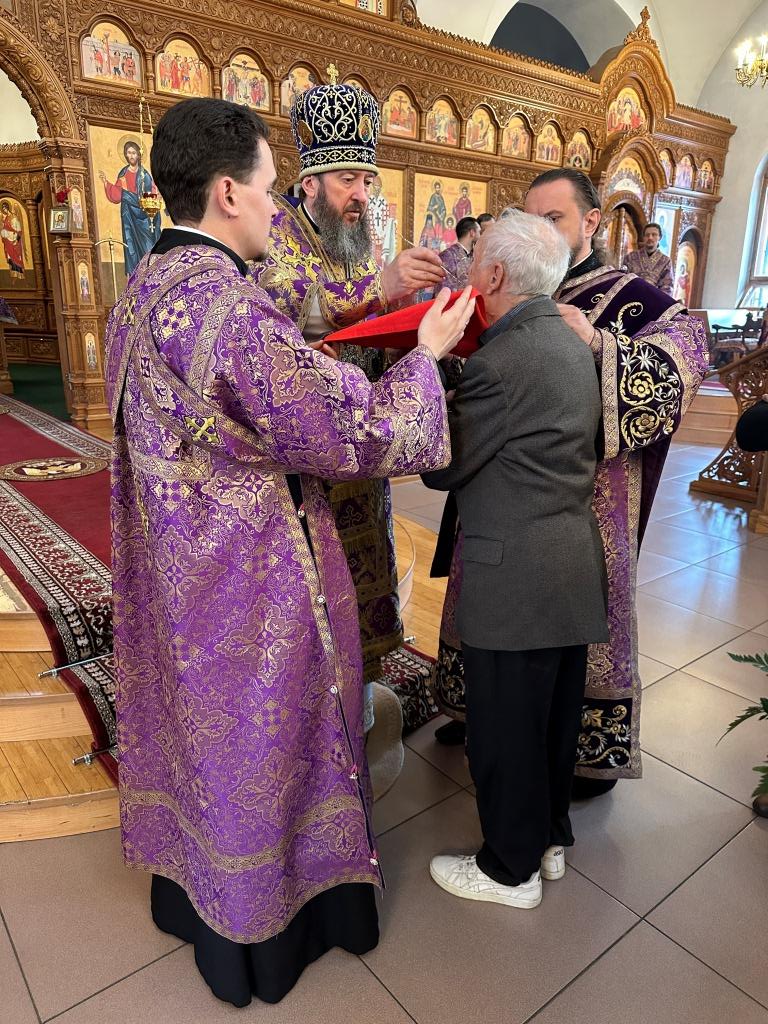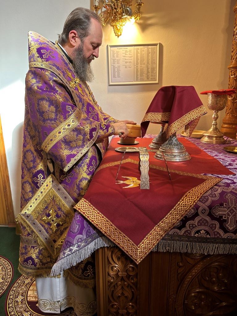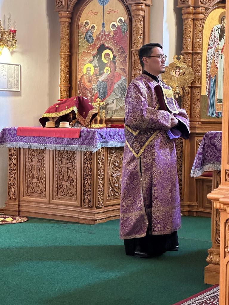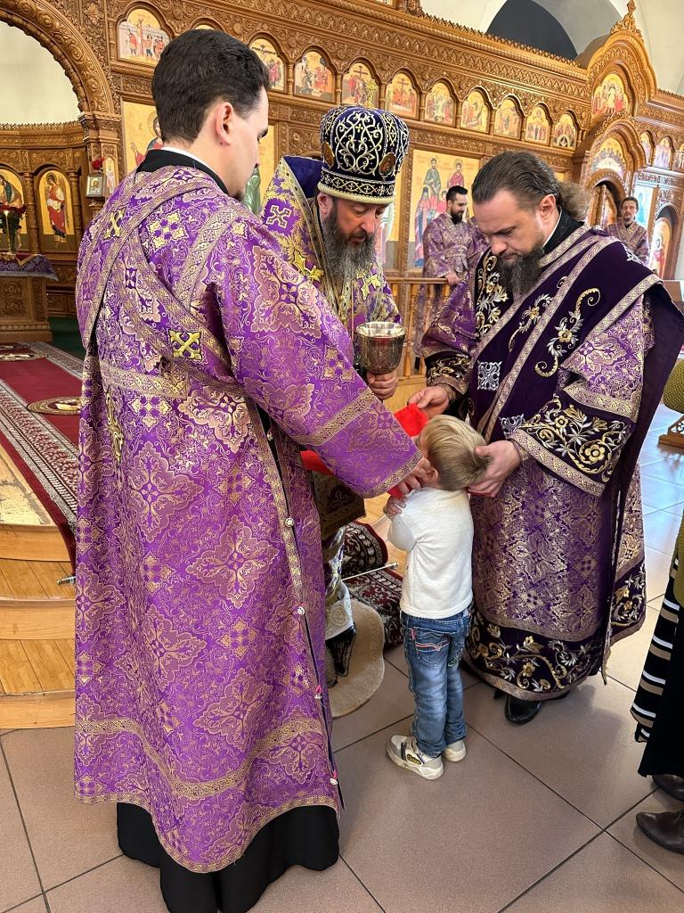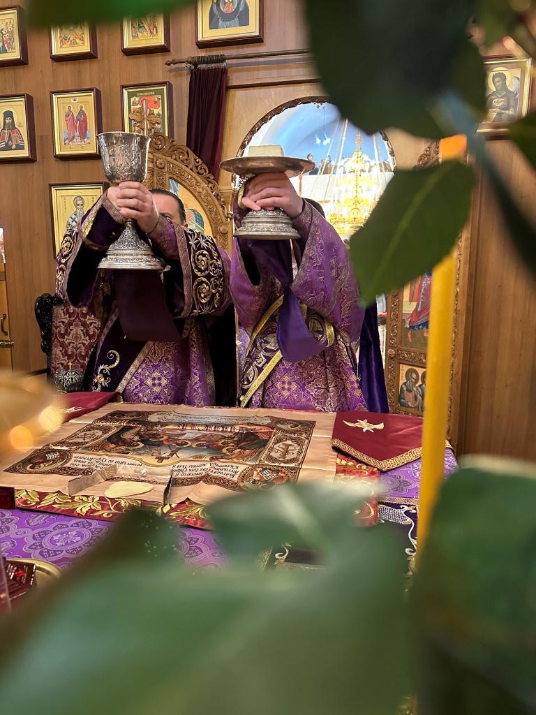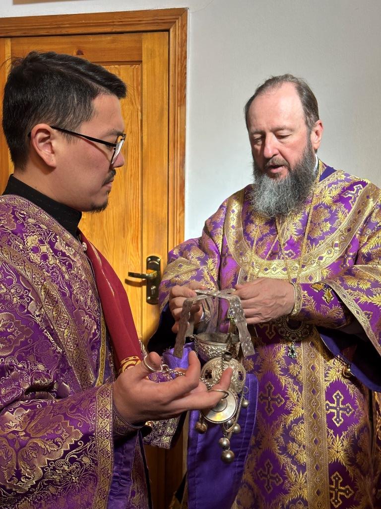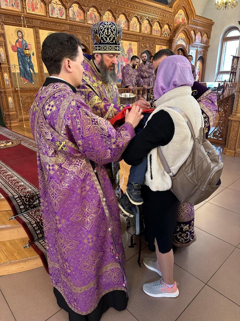 За богослужением пел хор Андреевского собора под управлением регента Н. Романцовой. В храме молились и причащались Христовых Таин прихожане и паломники Андреевского кафедрального собора, насельники Свято-Троицкого мужского монастыря города Усть-Каменогорска и сотрудники епархиального управления. Перед причастием мирян проповедовал священник Роман Подрезов.