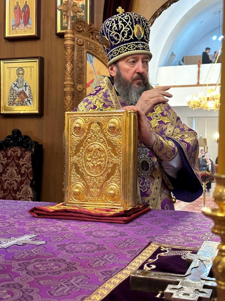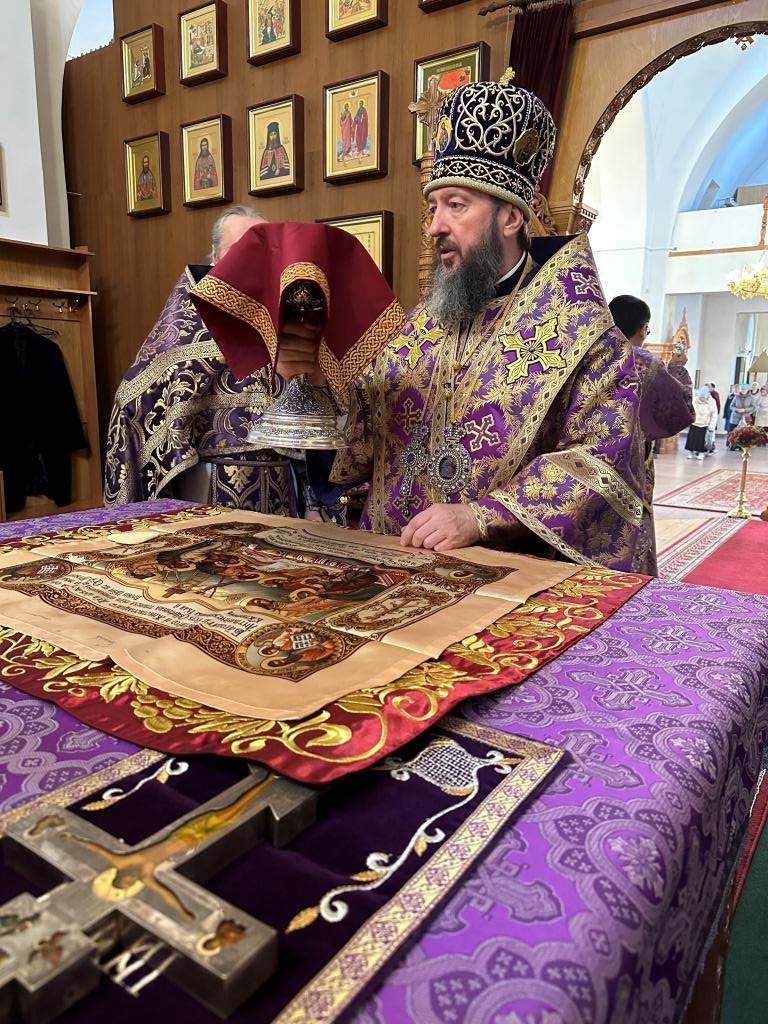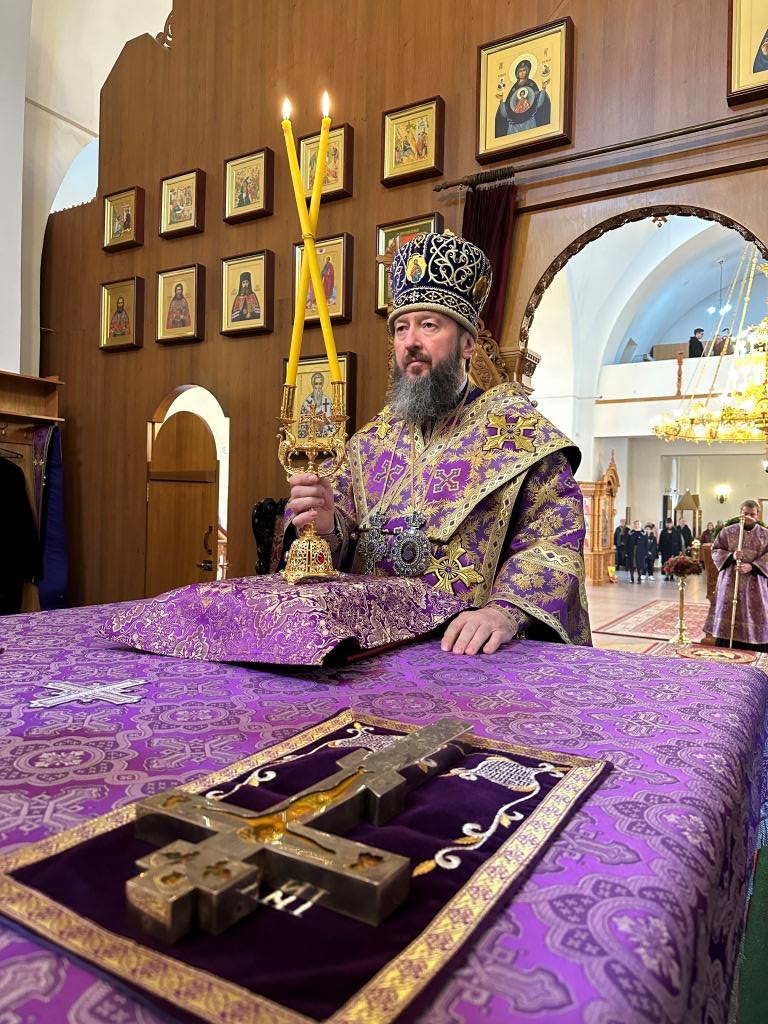 После заамвонной молитвы был совершен чин поклонения Кресту Господню. В завершение Архипастырского богослужения владыка Амфилохий поздравил духовенство и молящихся с праздником и обратился к прихожанам со словами святительского наставления.