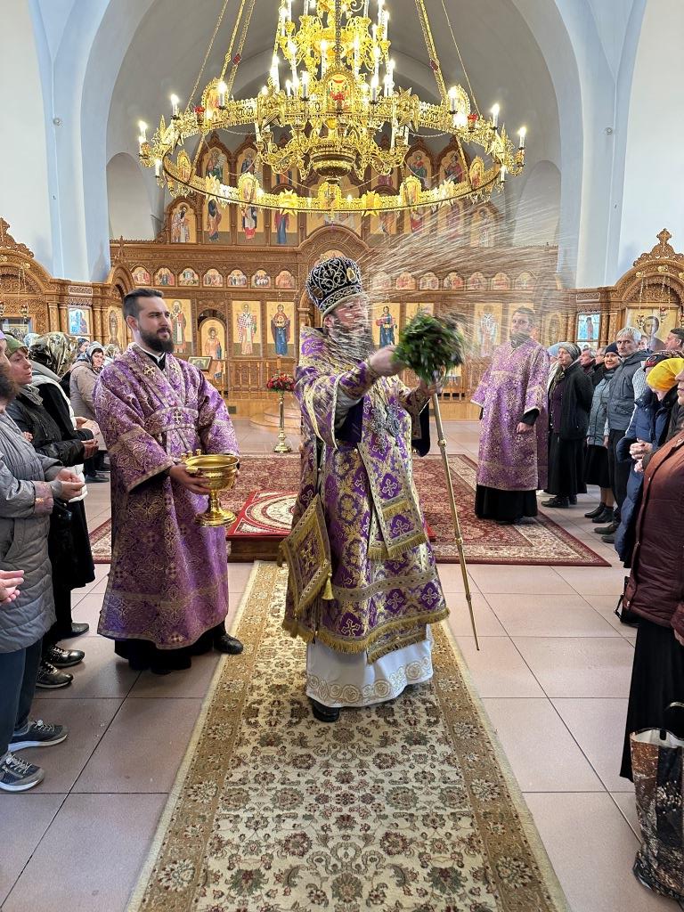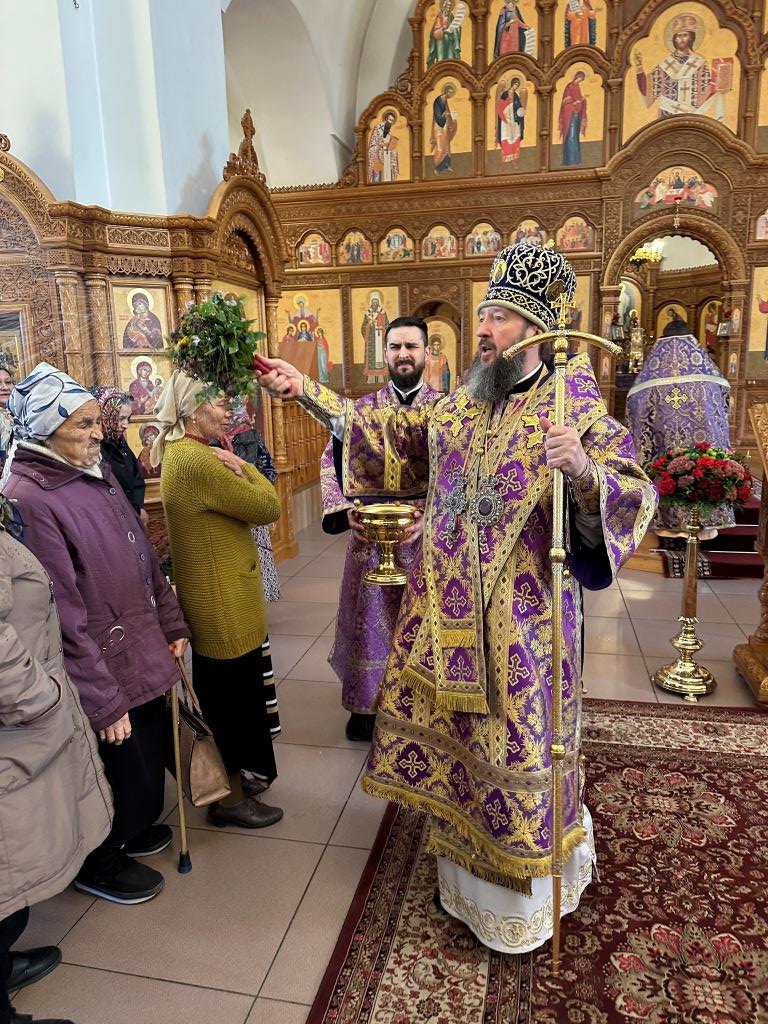 После проповеди архиепископ Амфилохий призвал на молящихся Божие благословение и окропил народ Божий святой водой.