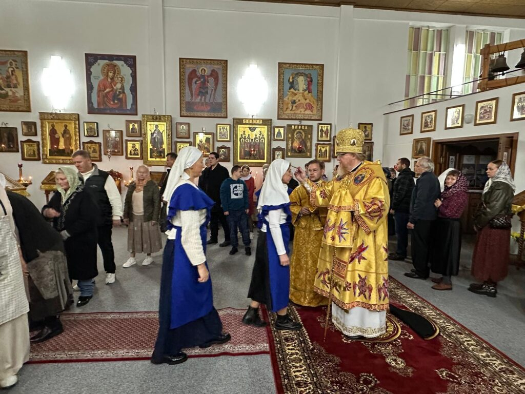 На заупокойной ектении были вознесены молитвы об упокоении основателя прихода архимандрита Митрофана (Хаузера), почивших благотворителей, строителей и прихожан. По запричастном стихе иерей Максим Сорокин произнес проповедь.