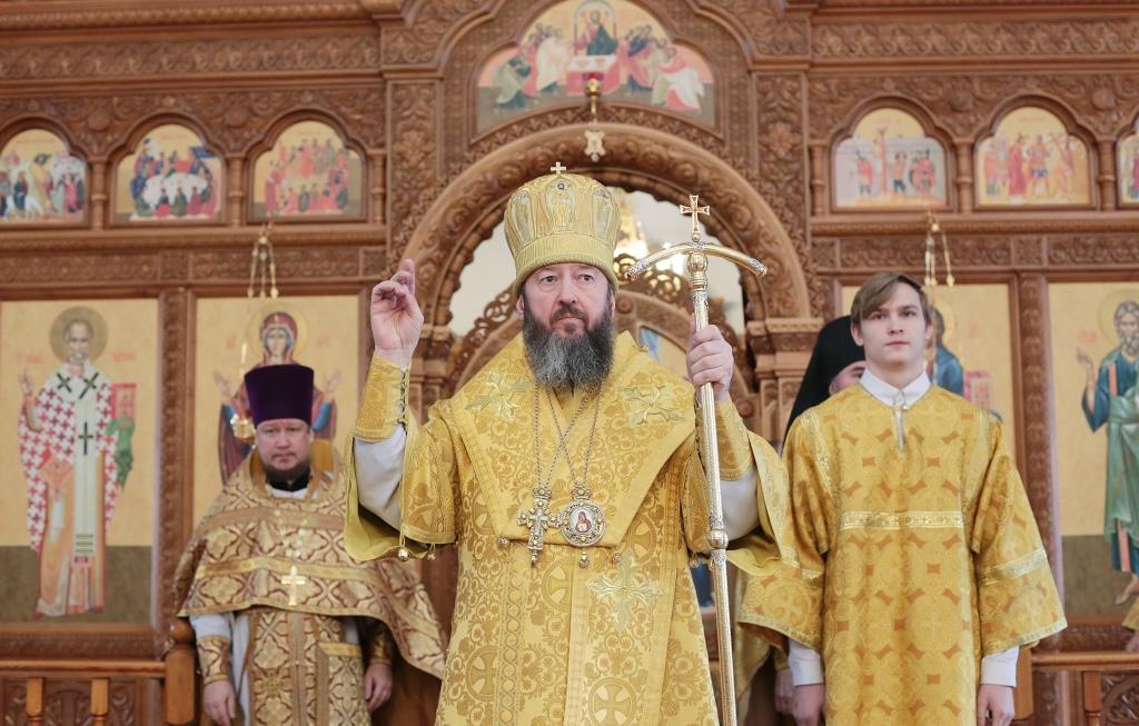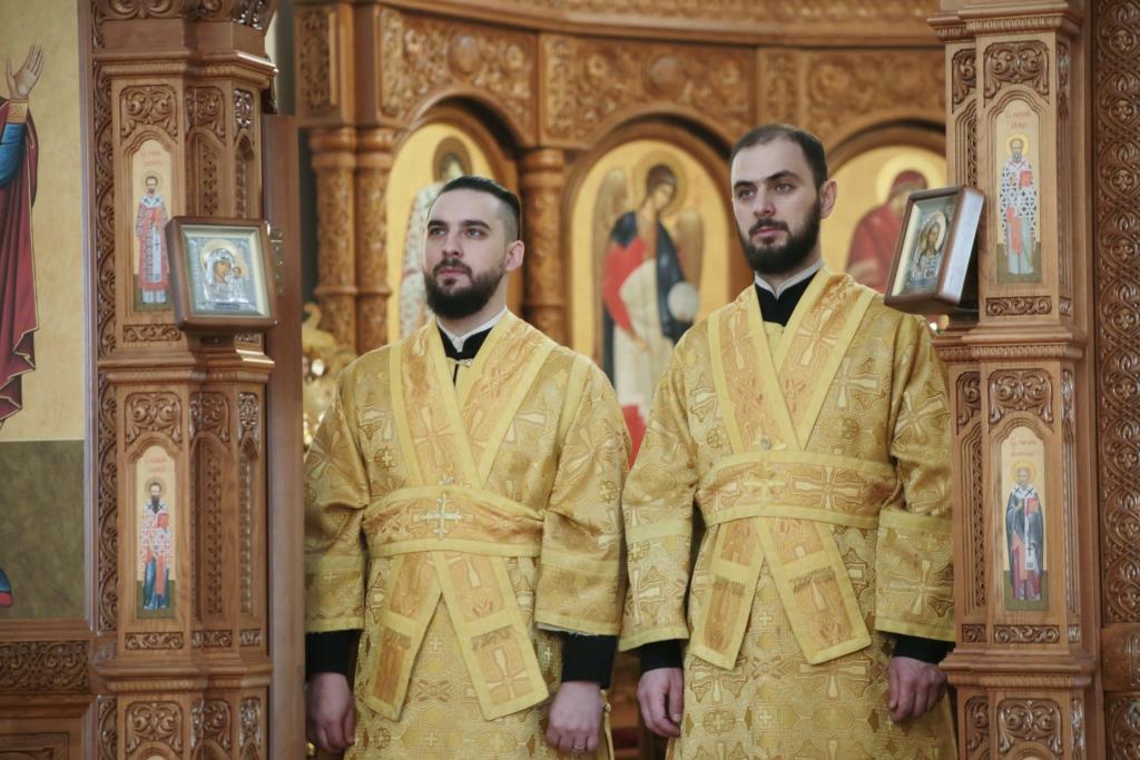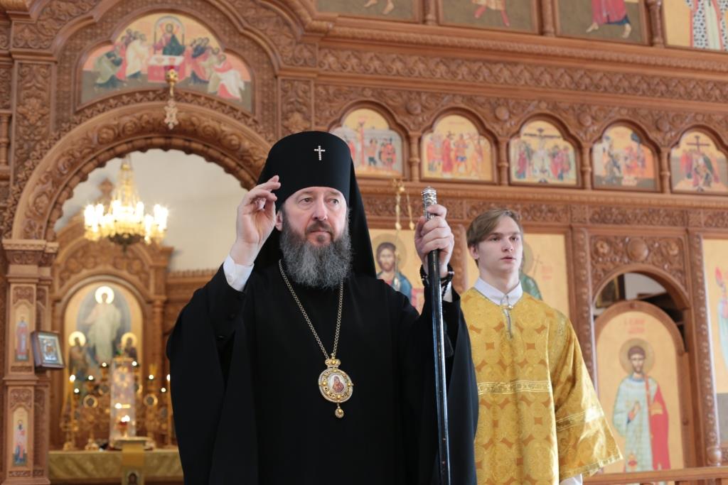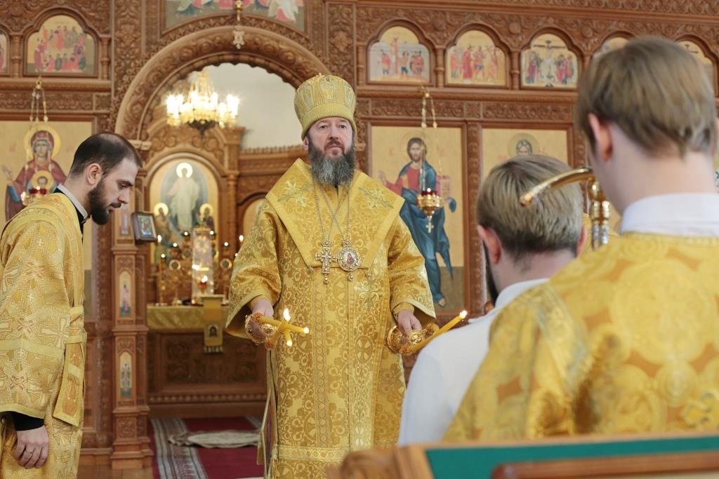 Его Высокопреосвященству сослужили: ключарь кафедрального собора иеромонах Никодим (Авдеев), клирики кафедрального собора иерей Роман Подрезов и иерей Константин Дьяков, протодиакон Андрей Дудник.