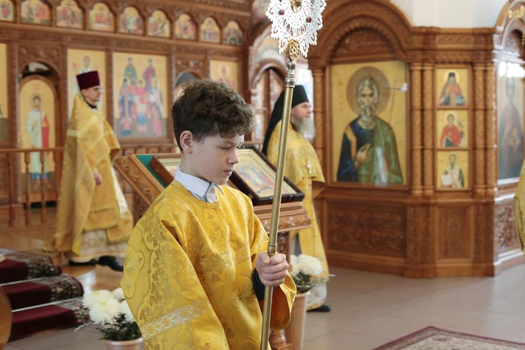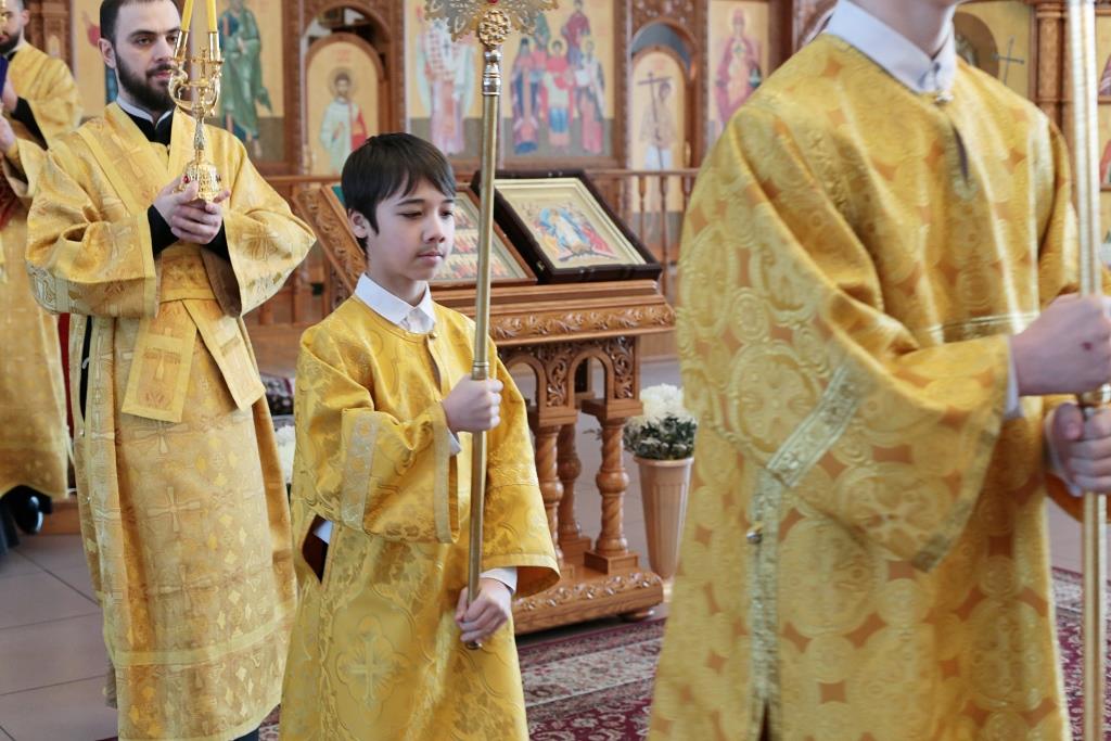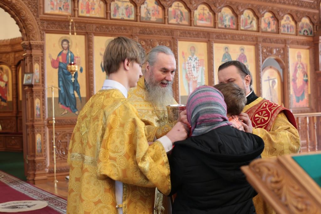 За богослужением пел хор Андреевского собор под управлением регента Н. Романцовой. Перед причастием мирян проповедовал иерей Роман Подрезов. За воскресным богослужением молились и причащались Святых Христовых Таин прихожане кафедрального собора, насельники Свято- Троицкого мужского монастыря города Усть-Каменогорска, сотрудники епархиального управления и воспитанники Центральной воскресной школы. В завершение воскресного богослужения Владыка Амфилохий обратился к пастве со словами поучения.