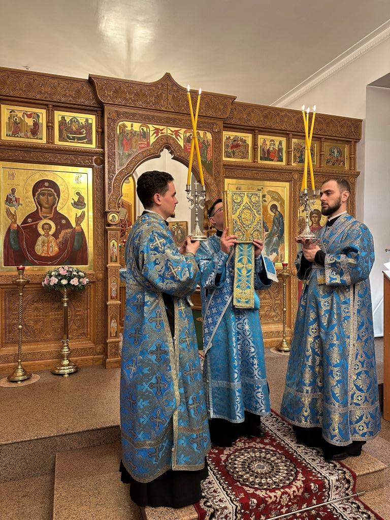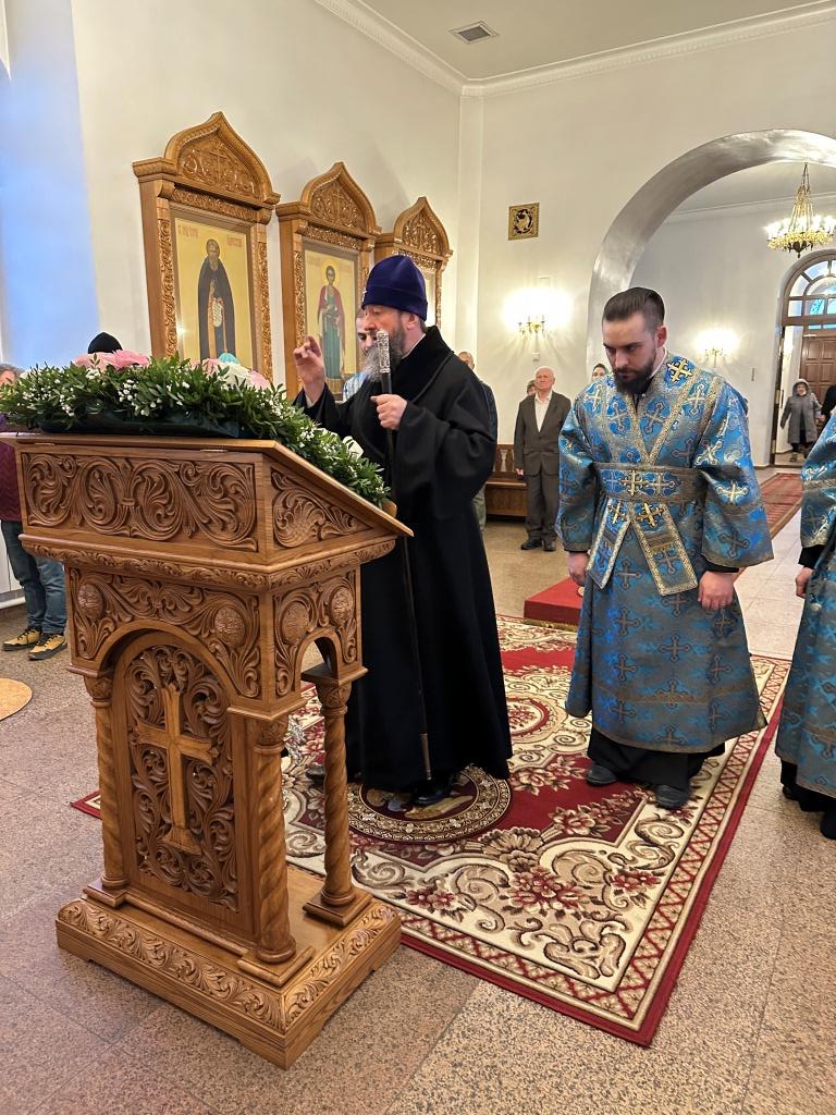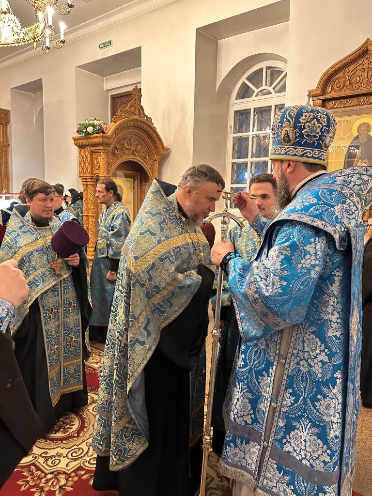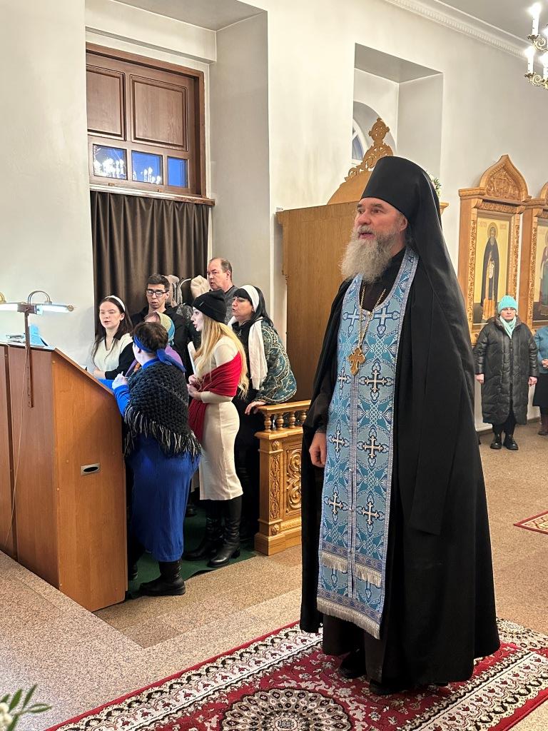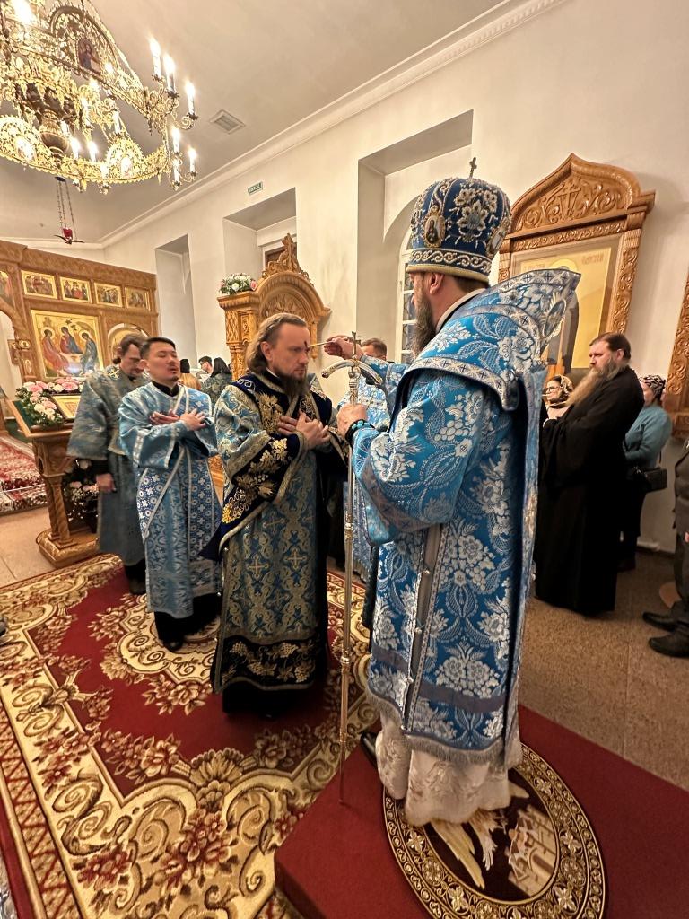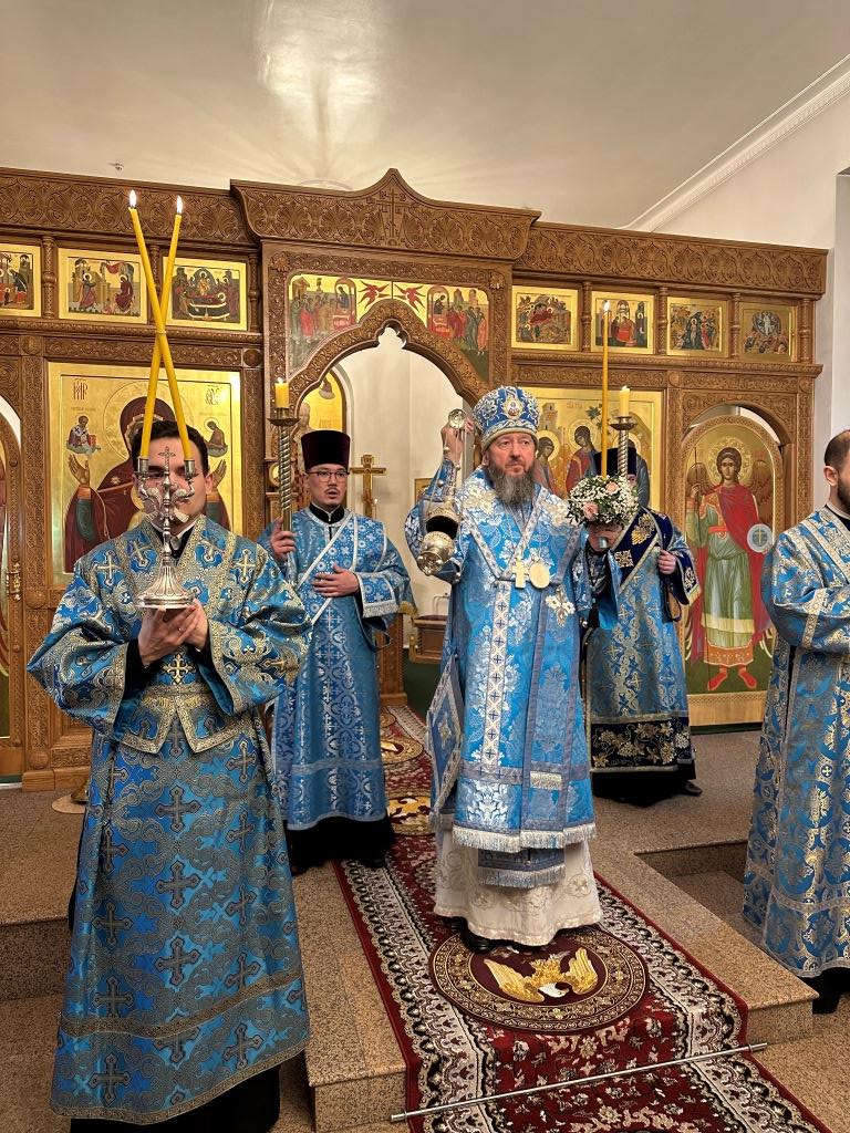 Владыке архиепископу сослужили ключарь Андреевского кафедрального собора иеромонах Никодим (Авдеев), клирики собора иерей Виталий Адаменков, иерей Роман Подрезов, иерей Константин Дьяков, протодиакон Андрей Дудник, секретарь епархии диакон Илия Кван.