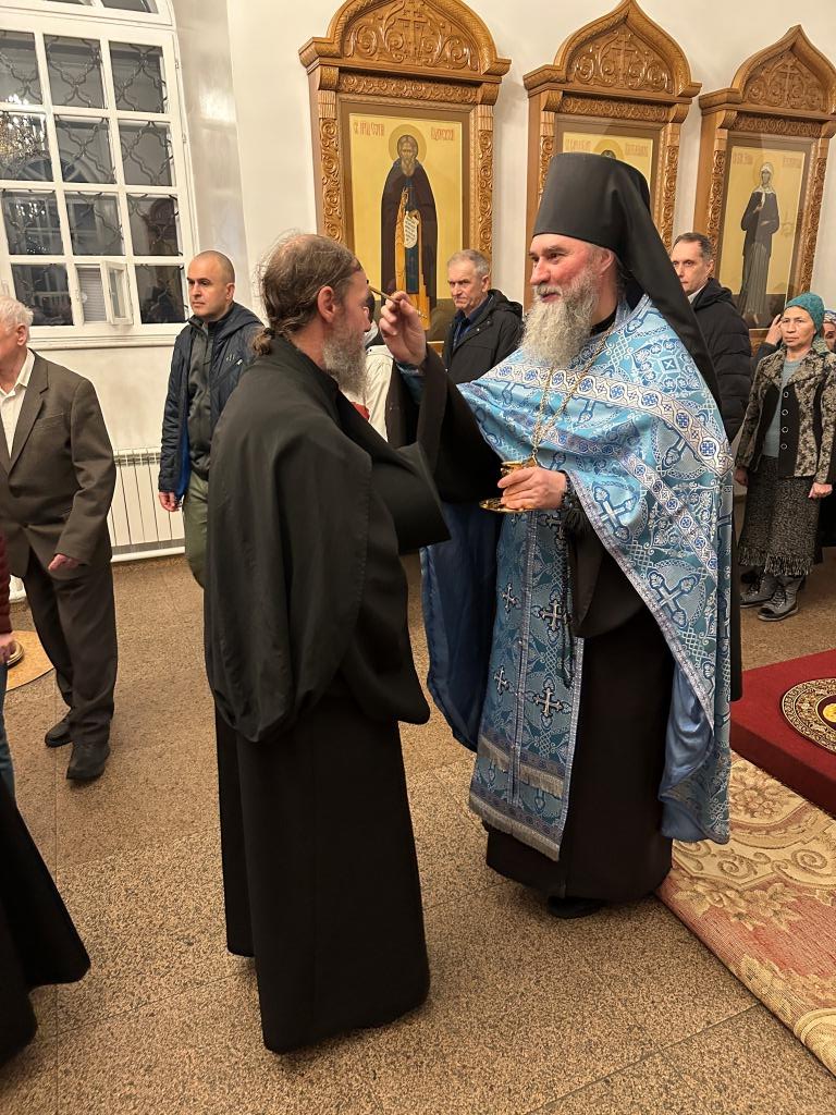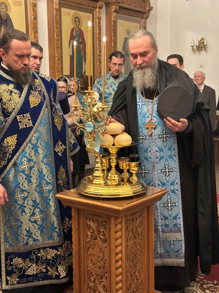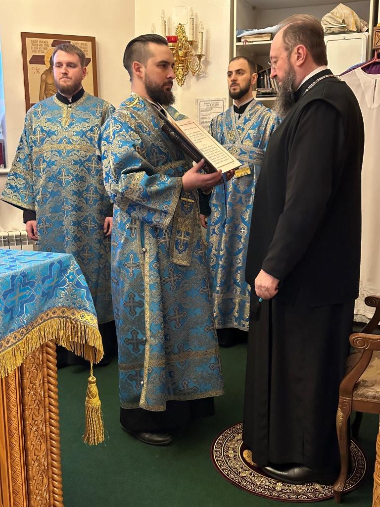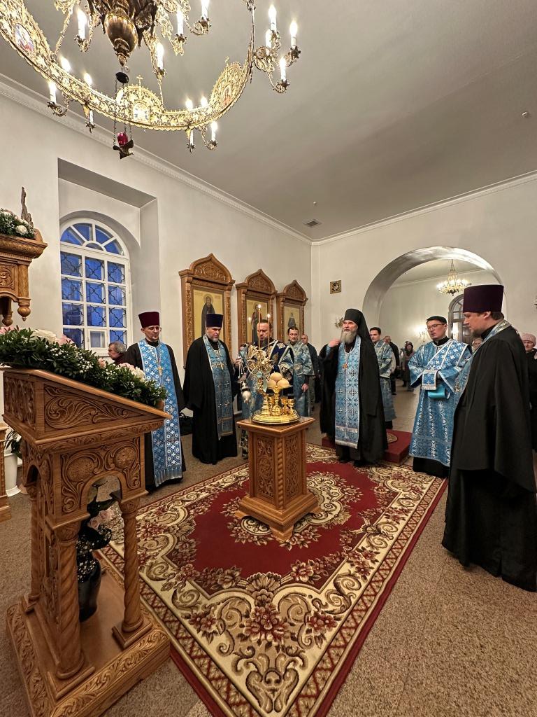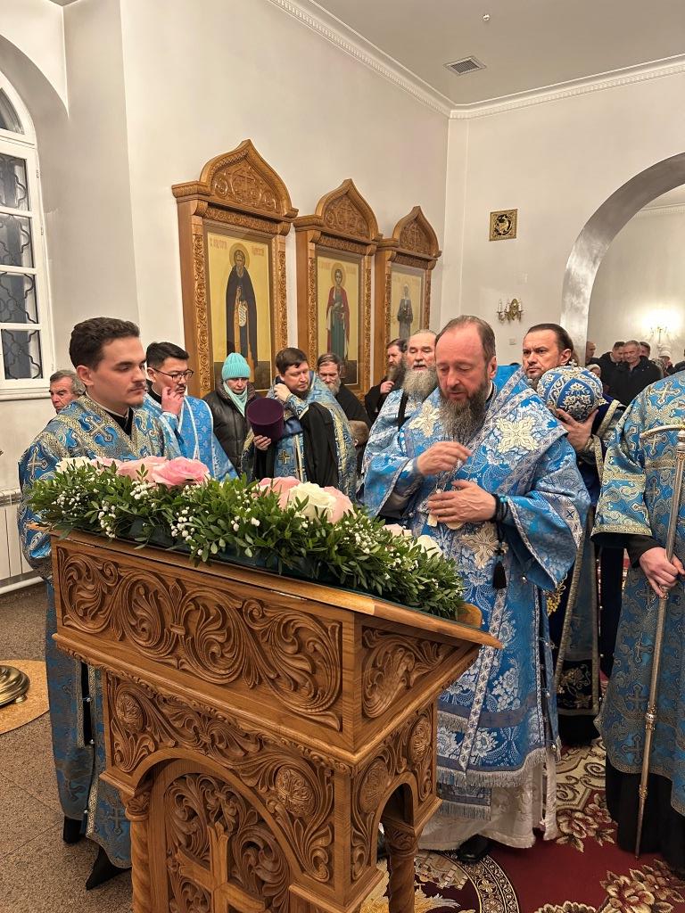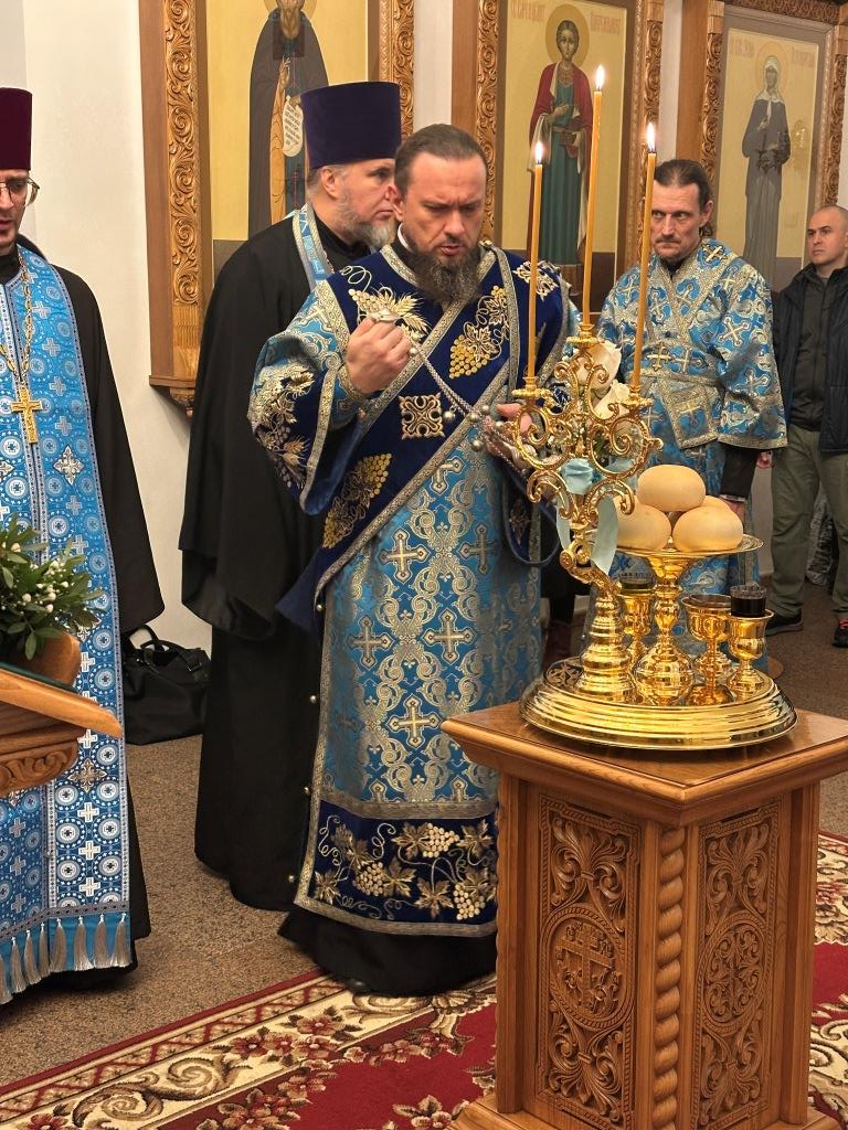 Владыке архиепископу сослужили ключарь Андреевского кафедрального собора иеромонах Никодим (Авдеев), клирики собора иерей Виталий Адаменков, иерей Роман Подрезов, иерей Константин Дьяков, протодиакон Андрей Дудник, секретарь епархии диакон Илия Кван.
