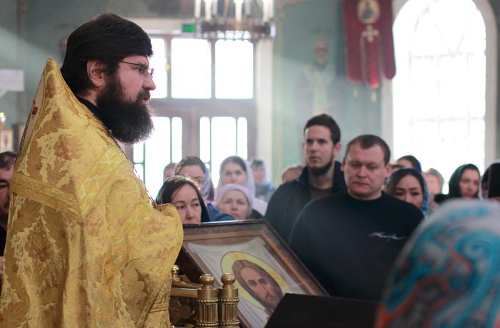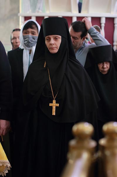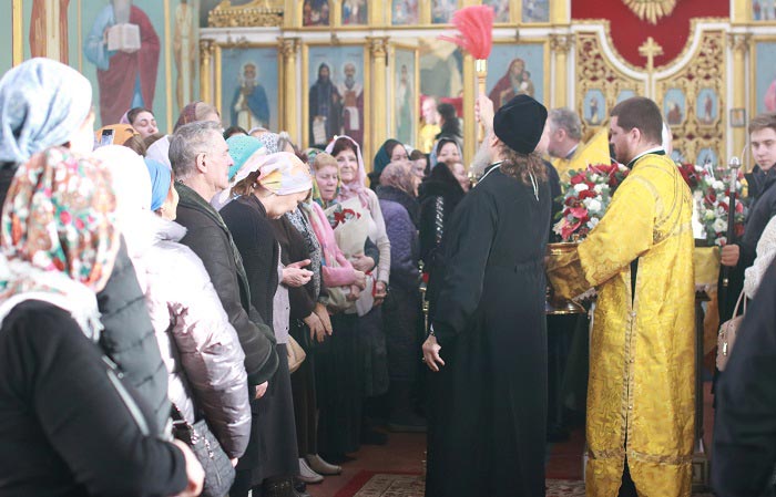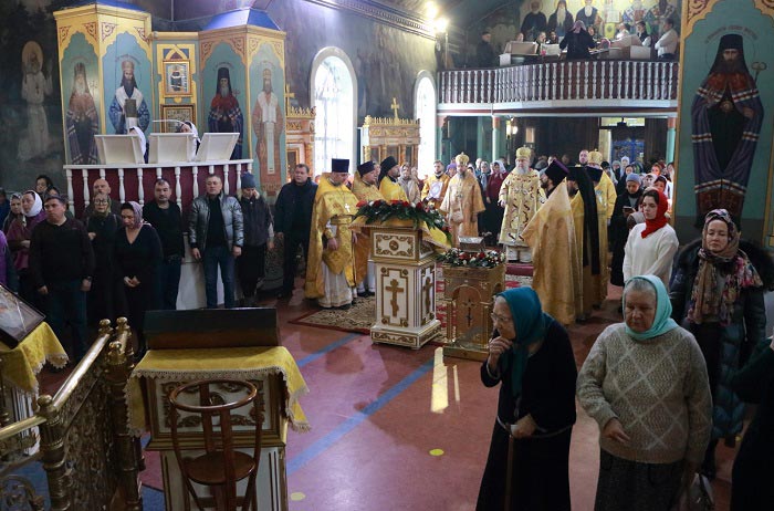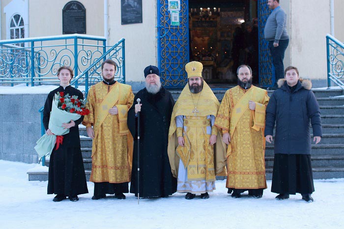 За Литургией молились: настоятельница монастыря в честь иконы Божией Матери «Взыскание погибших» города Астаны игумения Севастиана (Плотникова) с насельницами обители; сотрудники епархиального управления, паломники и прихожане храма.