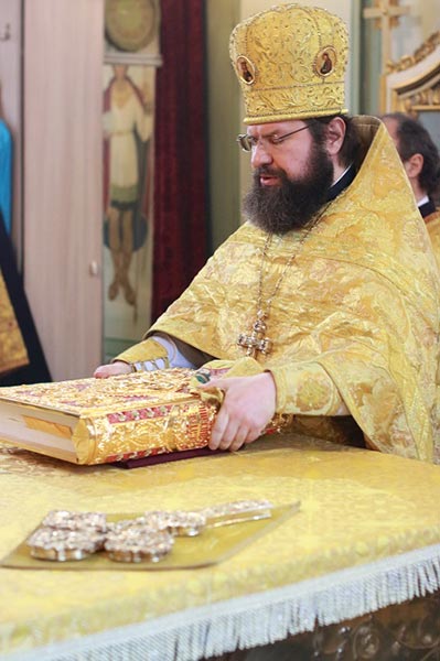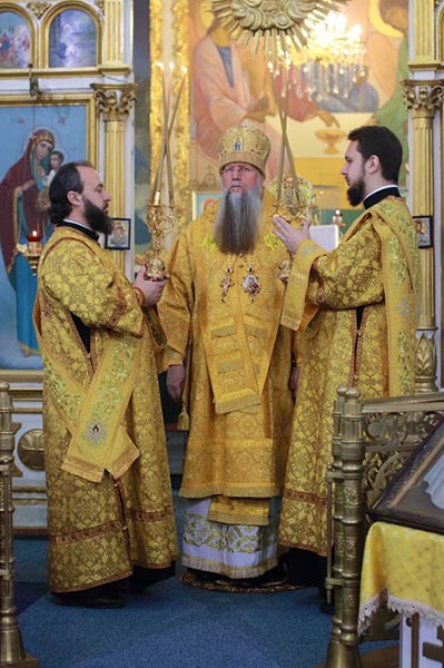 Предстоятелю Православной Церкви Казахстана сослужили: архиепископ Усть-Каменогорский и Семипалатинский Амфилохий, викарий Астанайской епархии епископ Талдыкорганский Клавдиан; благочинный приходов столицы архимандрит Сергий (Карамышев), духовник астанайского женского монастыря в честь иконы Божией Матери «Взыскание погибших» иеромонах Модест (Дроздов), ключарь Константино-Еленинского собора протоиерей Сергий Калиев, иерей Максим Маджитов, клирик храма преподобного Серафима Саровского города Астаны иеромонах Силуан (Синегубов), руководитель личного секретариата митрополита иеромонах Прохор (Ендовицкий), иерей Сергий Лубневский, ключарь Казанского собора Алма-Аты иерей Георгий Рублинский, протодиакон Николай Гринкевич, протодиакон Владимир Сыровацкий, секретарь Усть-Каменогорской епархии диакон Илия Кван, диакон Илия Давыдов, диакон Иоанн Чуркин, диакон Иоанн Янчук.