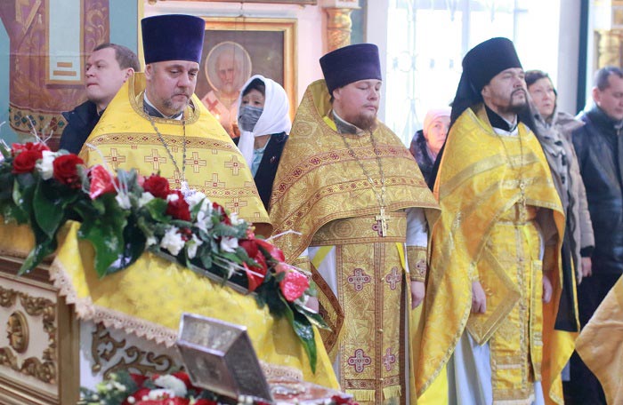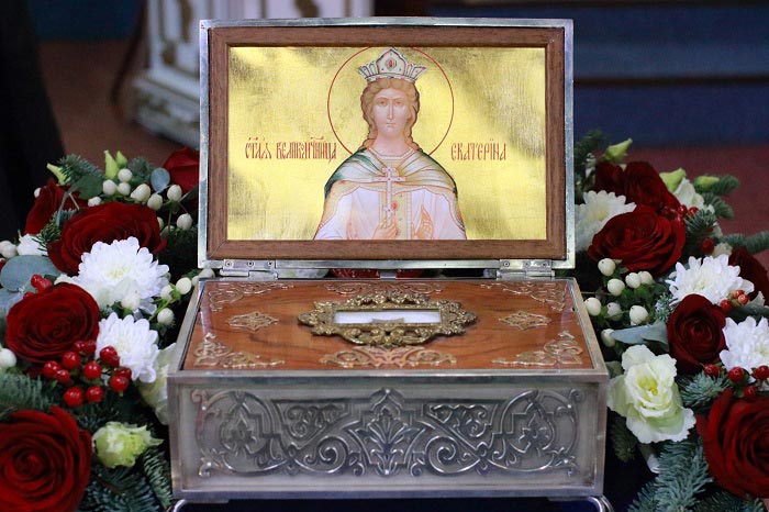 На богослужение в старейший храм столицы был доставлен ковчег с частицей святых мощей великомученицы Екатерины Александрийской.