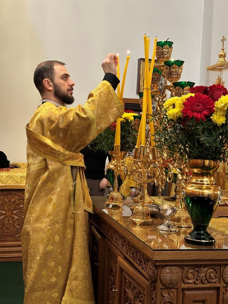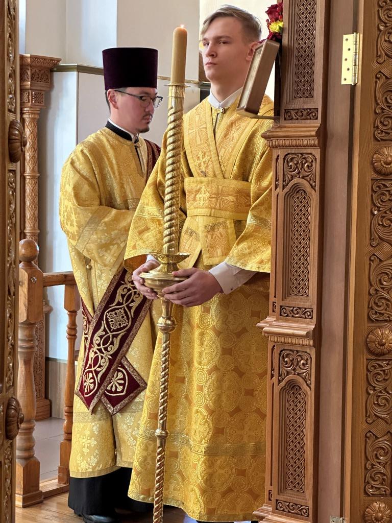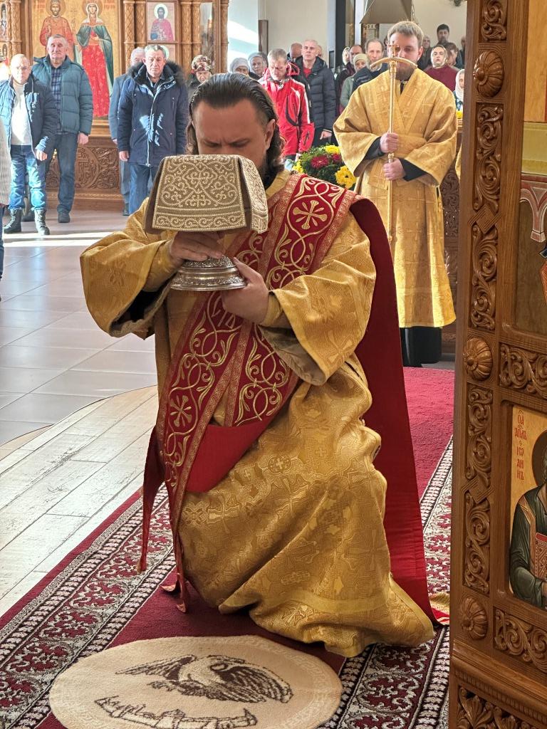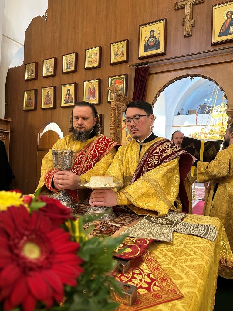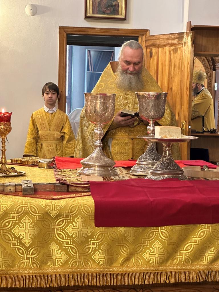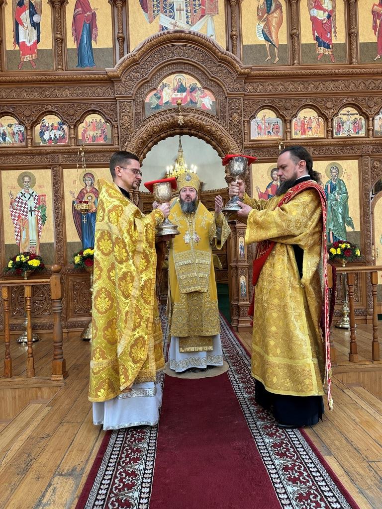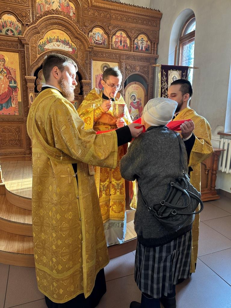 Песнопения Божественной Литургии исполнял хор Андреевского собор под управлением регента Н. Романцовой. Перед причастием мирян проповедовал священник Константин Дьяков.